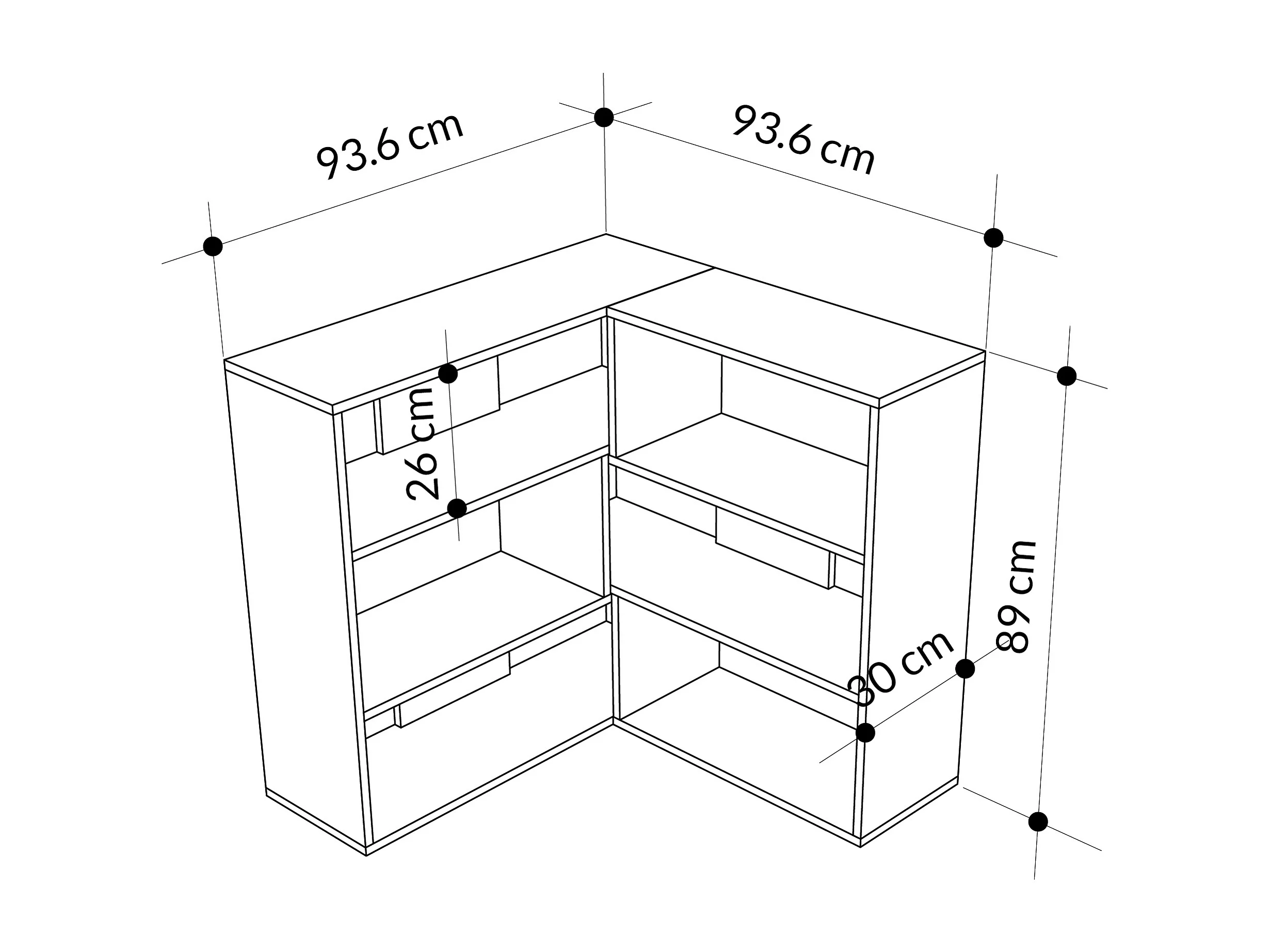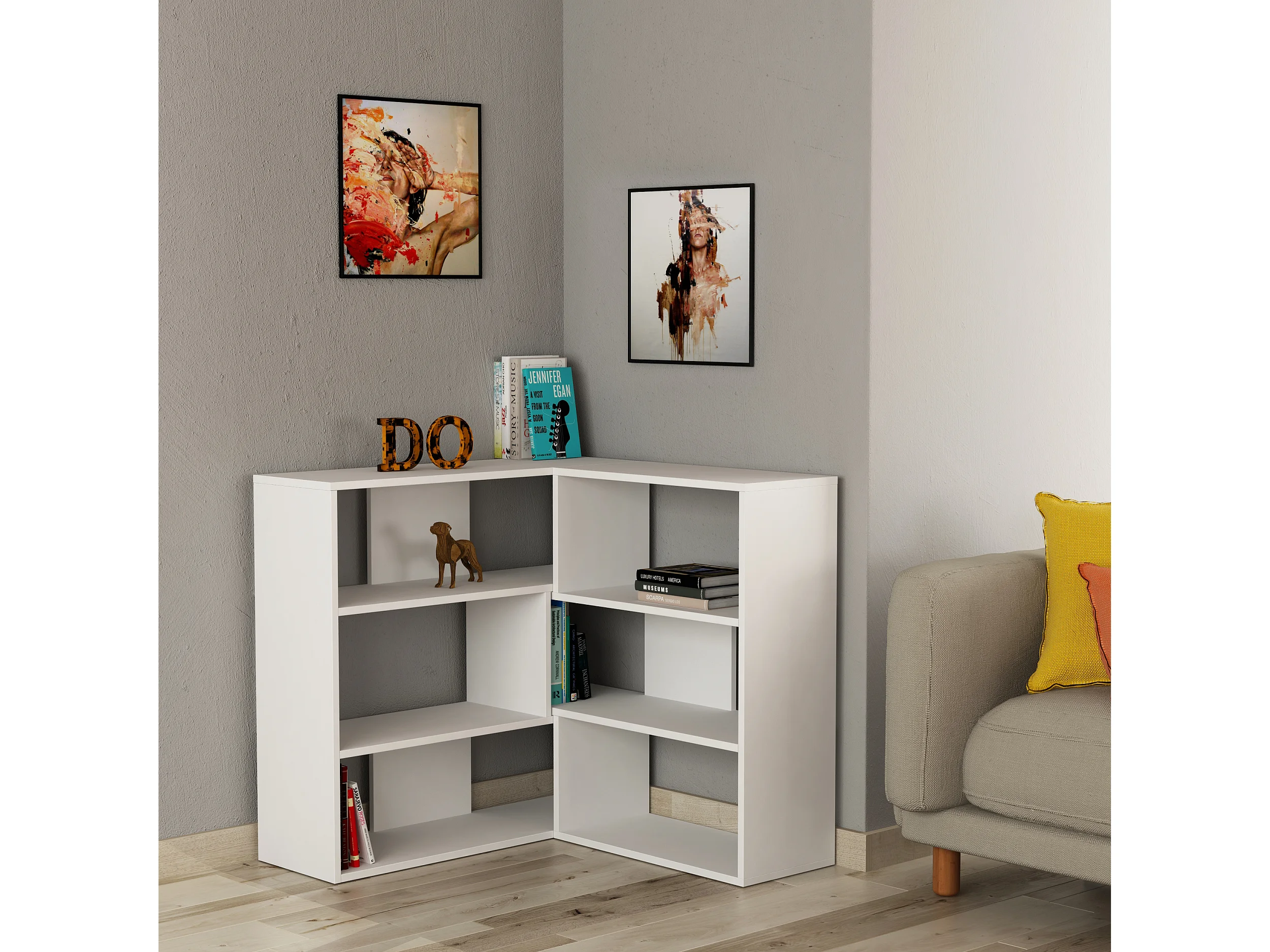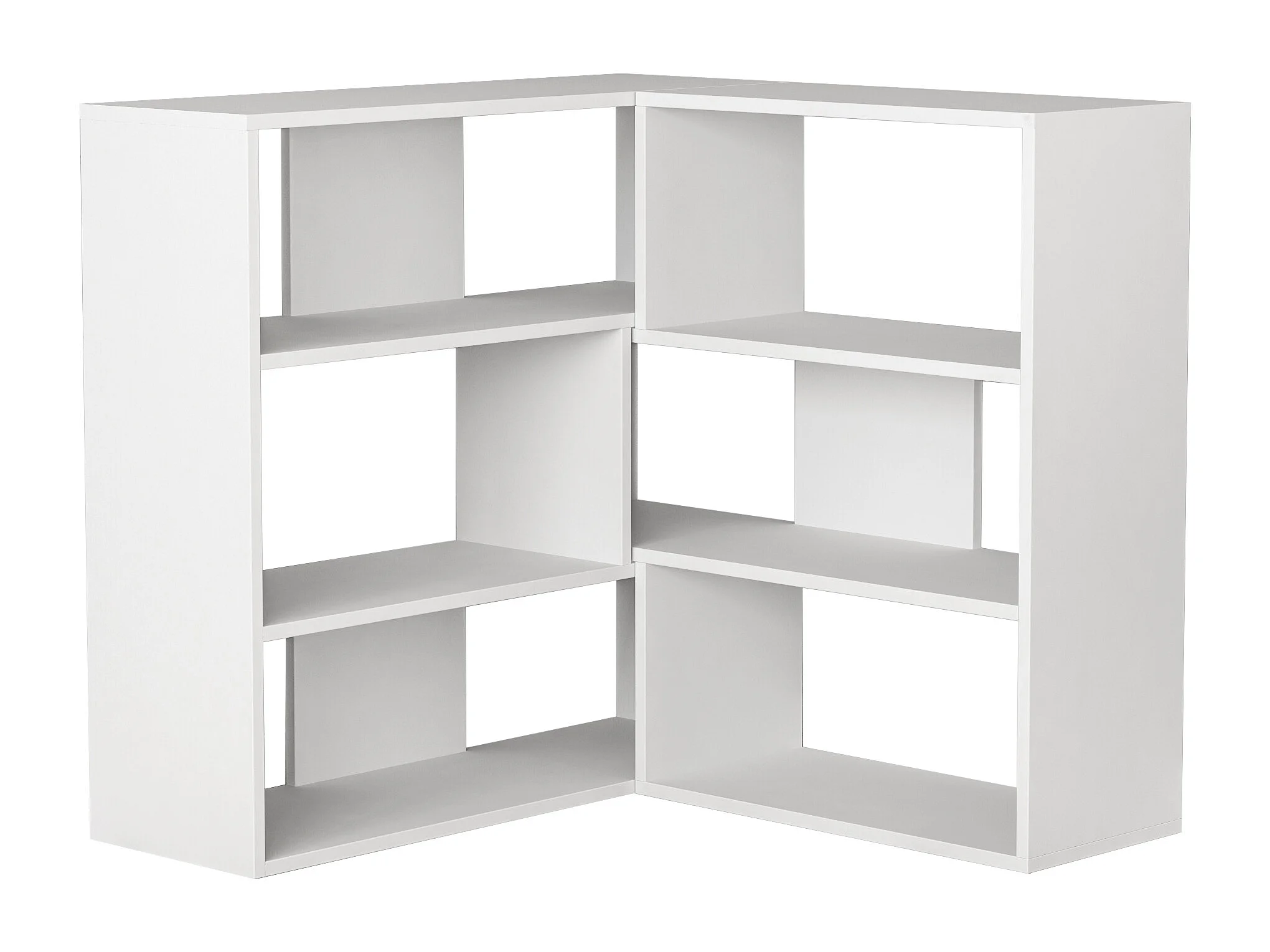 Decortie Molly Bibliothèque d'angle moderne 3 étages Séparateur de pièce Meuble de rangement autoportant Finition mélamine Blanc 89cm