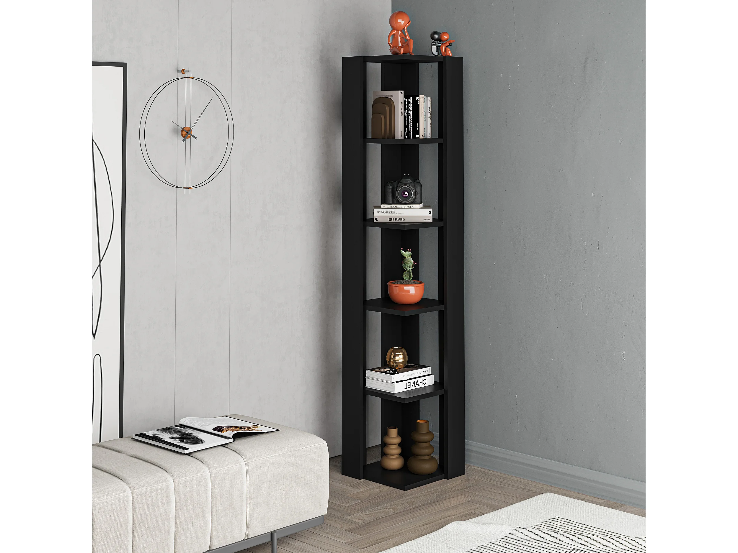 Decortie Nati Tall Corner Bookcase Modern Shelving Unit Space-Saving Storage Black Bute 161cm