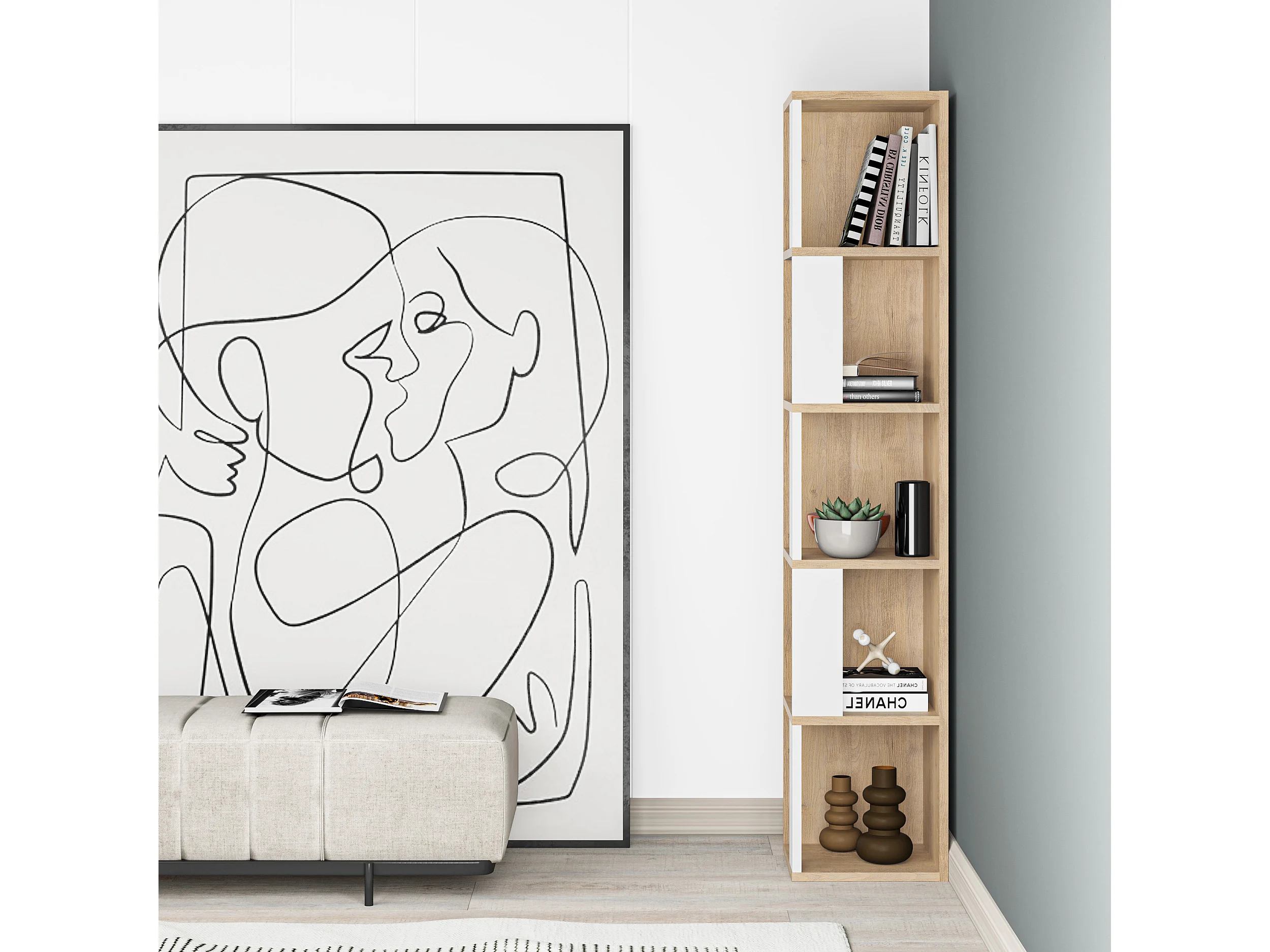 Decortie Piano Modern Corner Bookcase Display Unit Oak, White Tall 158.9cm