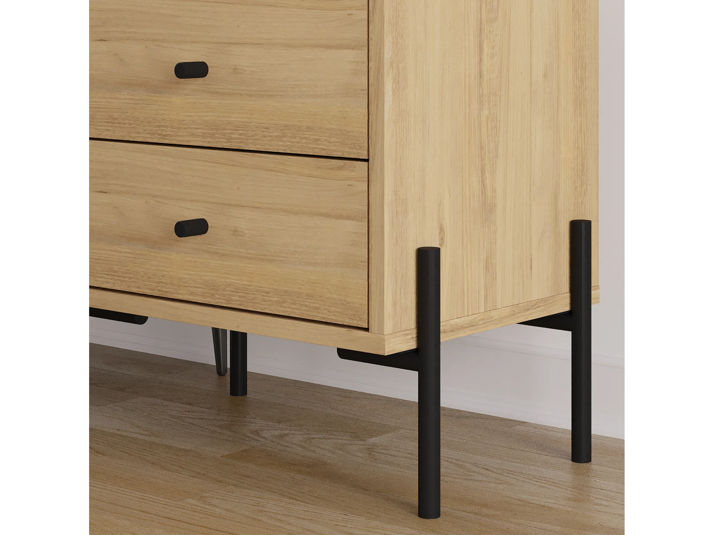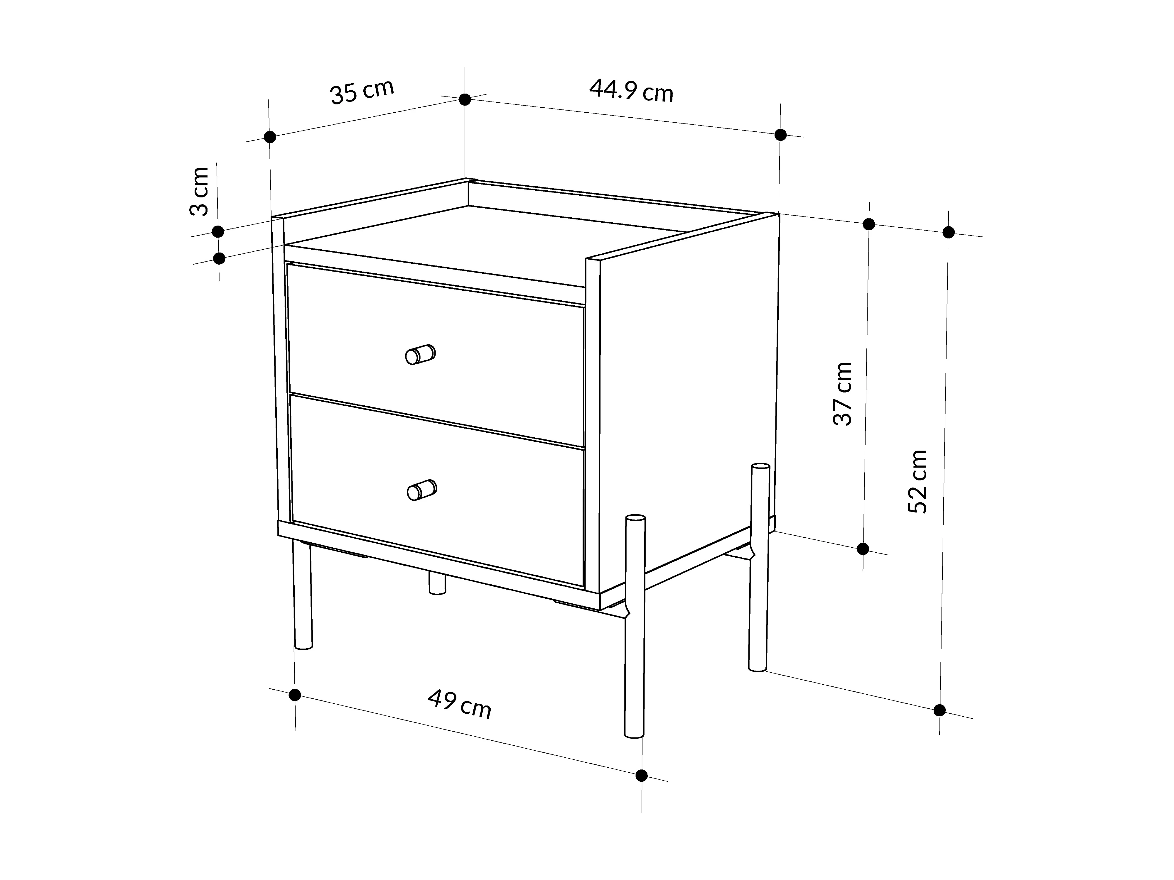 Decortie Table de nuit Malte chêne Decortie avec 2 tiroirs, pieds en métal – Meuble moderne et fonctionnel pour la chambre