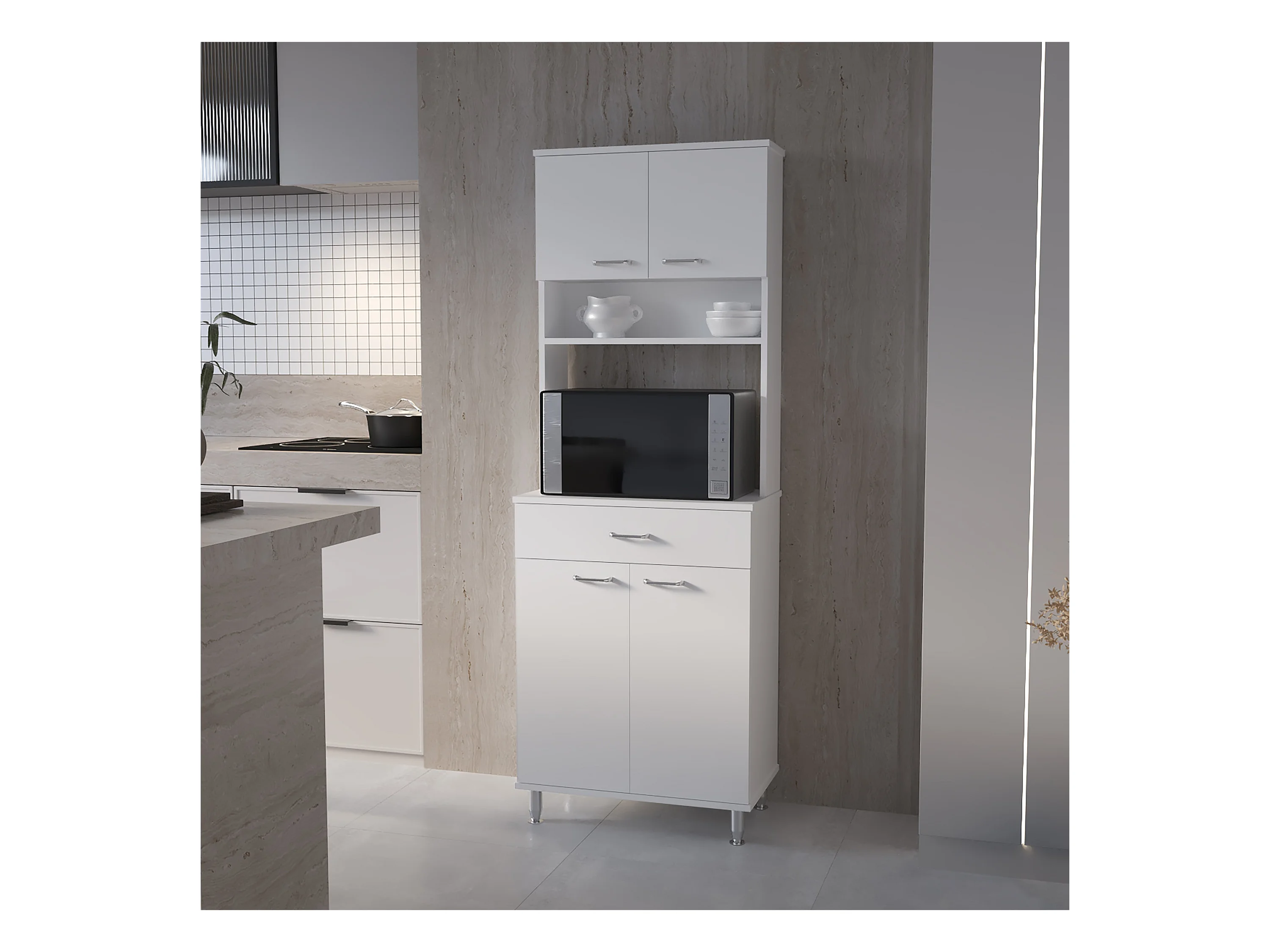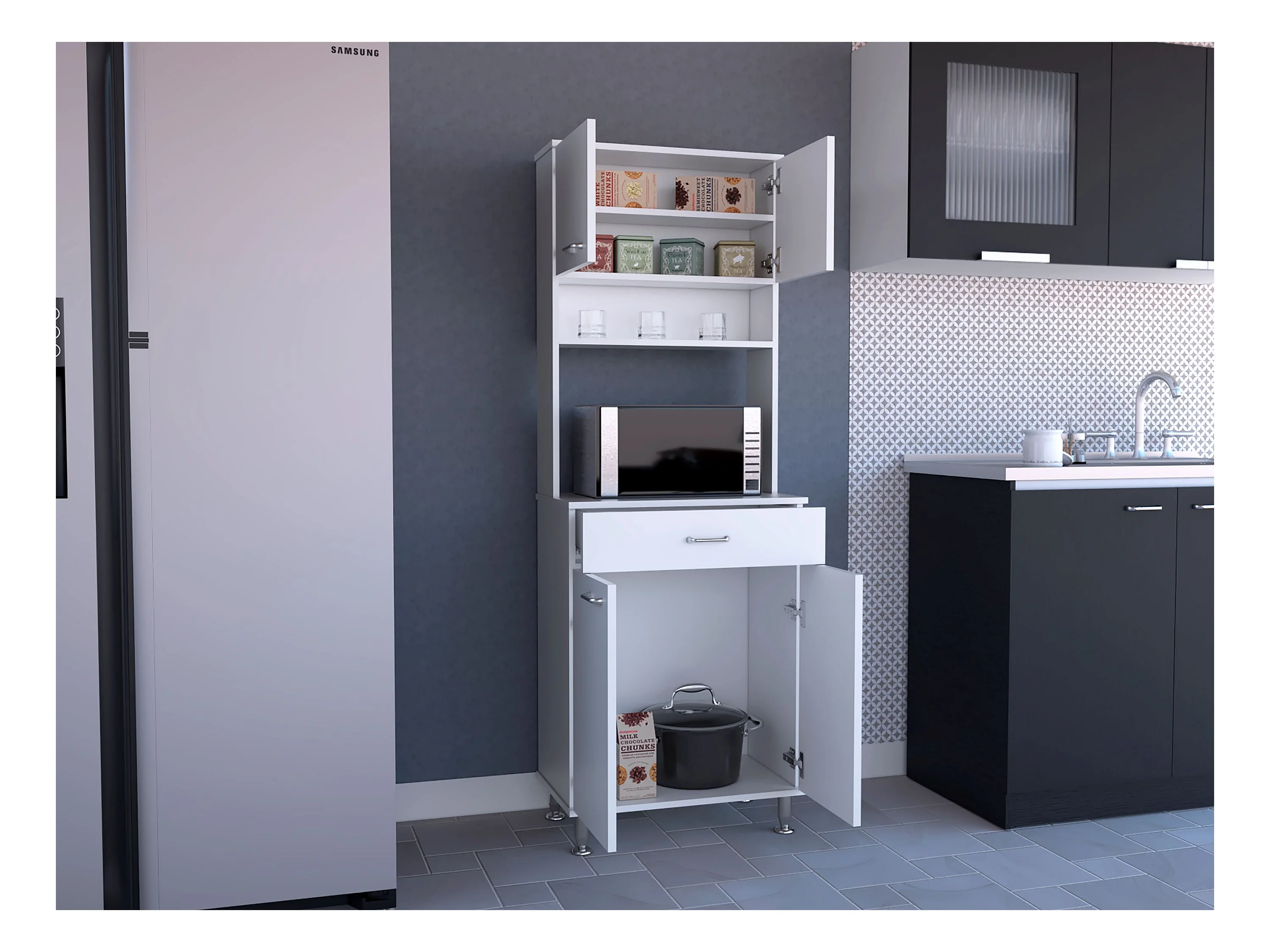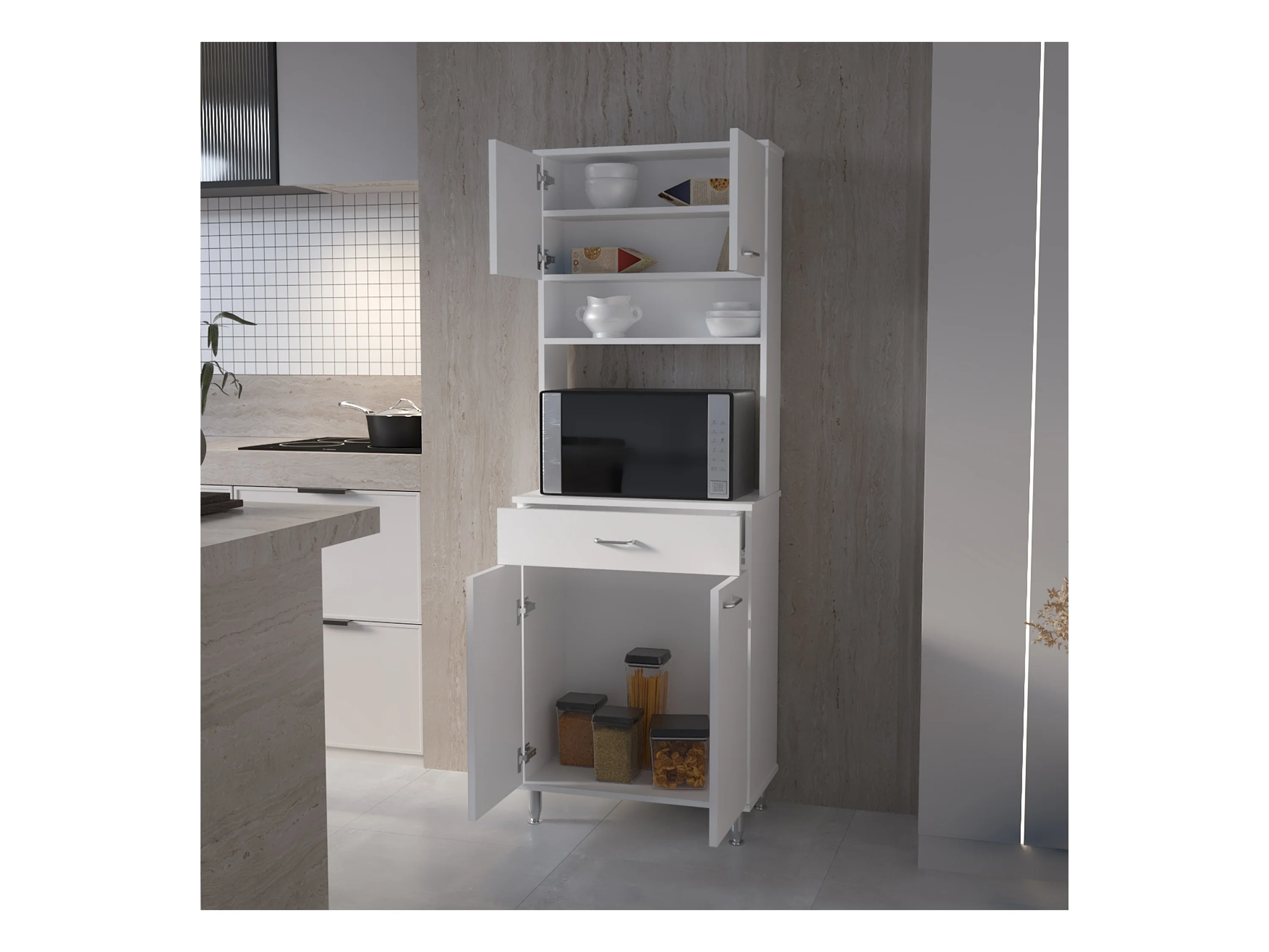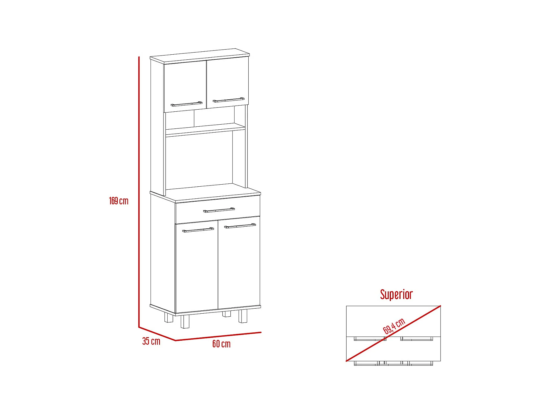 Meuble Della en mélaminé, avec tiroir sur rail métallique, 168.91 cm X 59.94 cm X 35.30 cm , Blanc