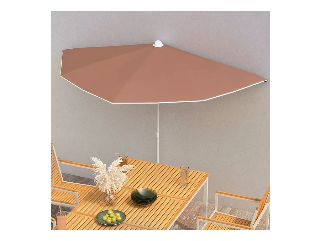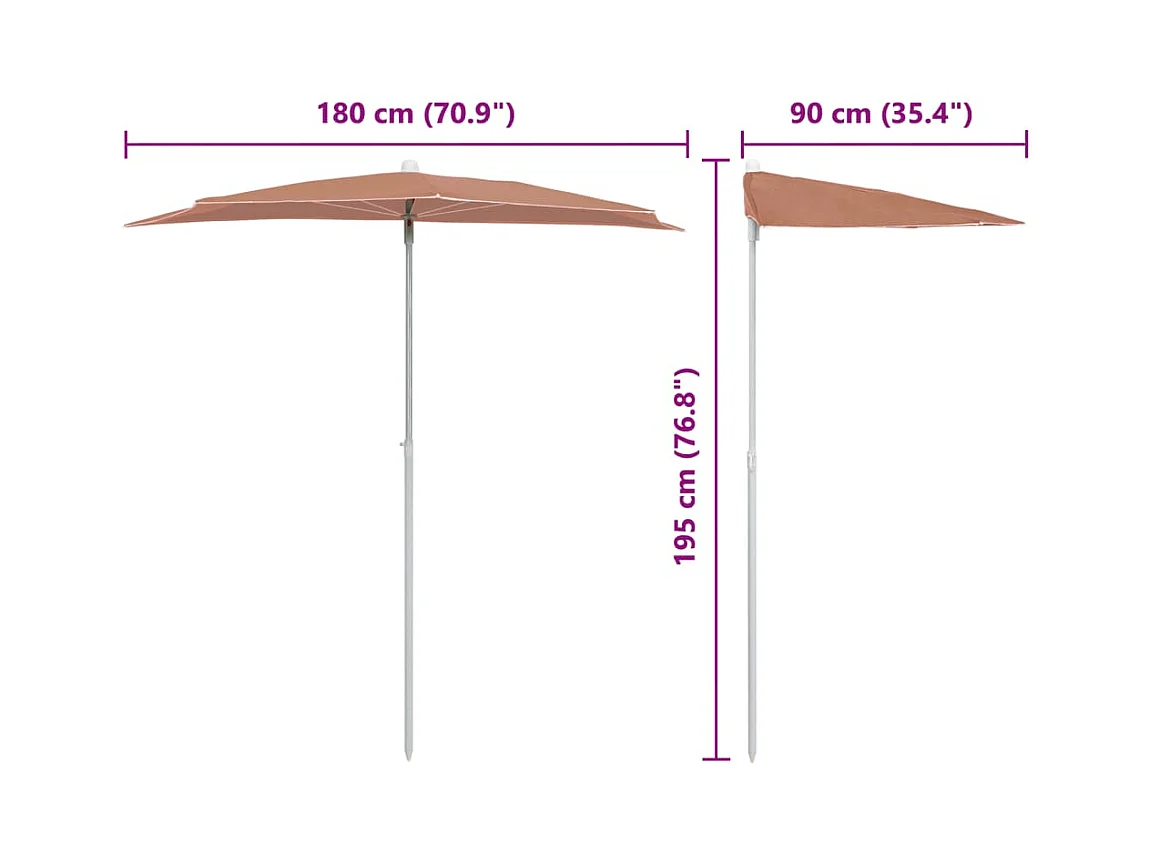 Demi-parasol de jardin avec mât 180x90 cm terre cuite