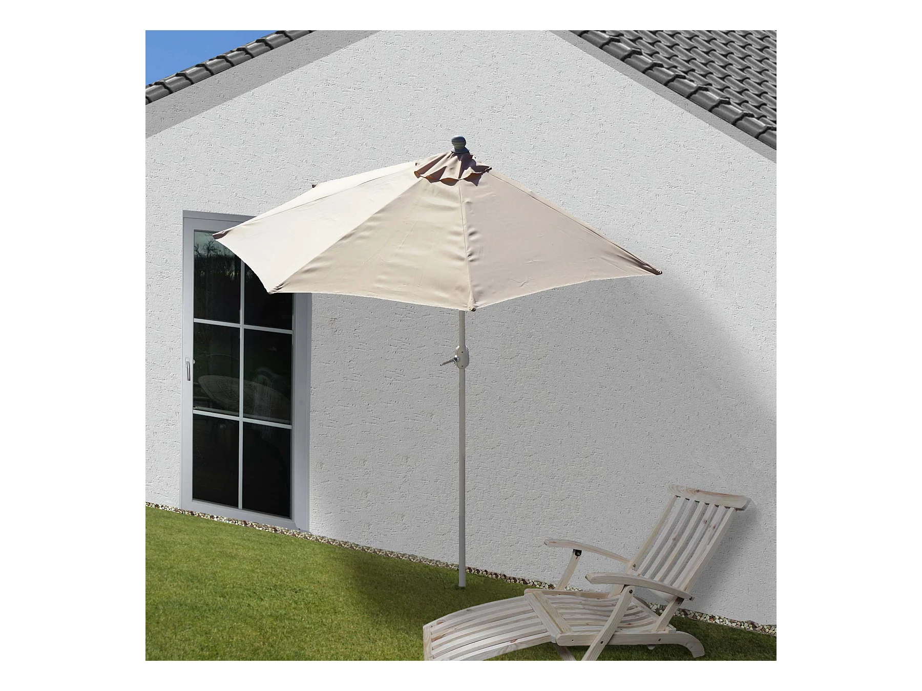 Demi parasol semi-circulaire balcon aluminium crème 260 x 135 x 252 cm 04_0003850