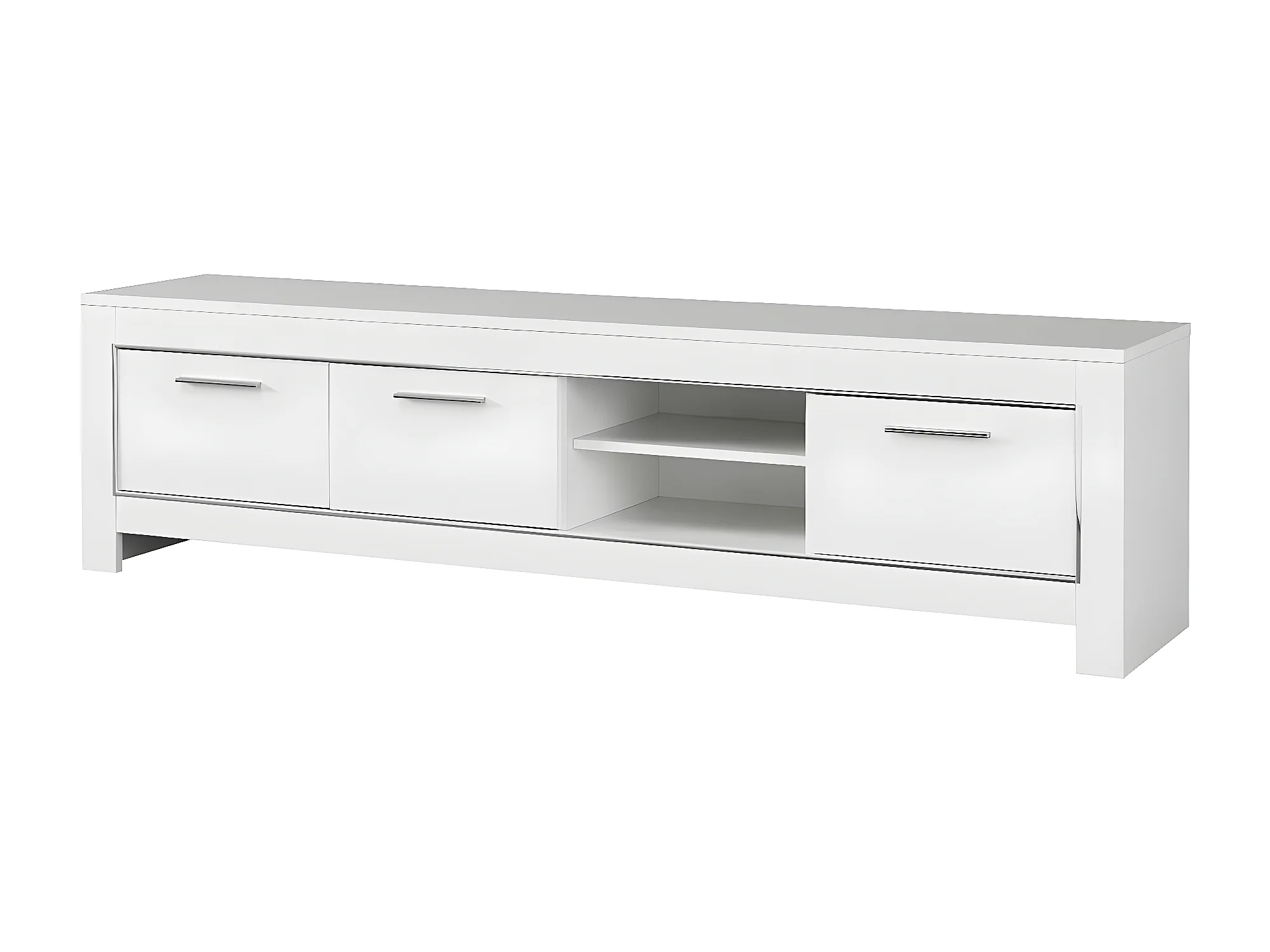 DENAE - Meuble TV 3 Portes L207cm Laqué Blanc Brillant
