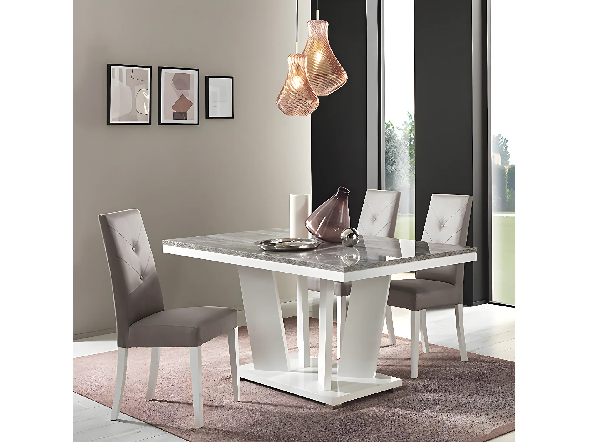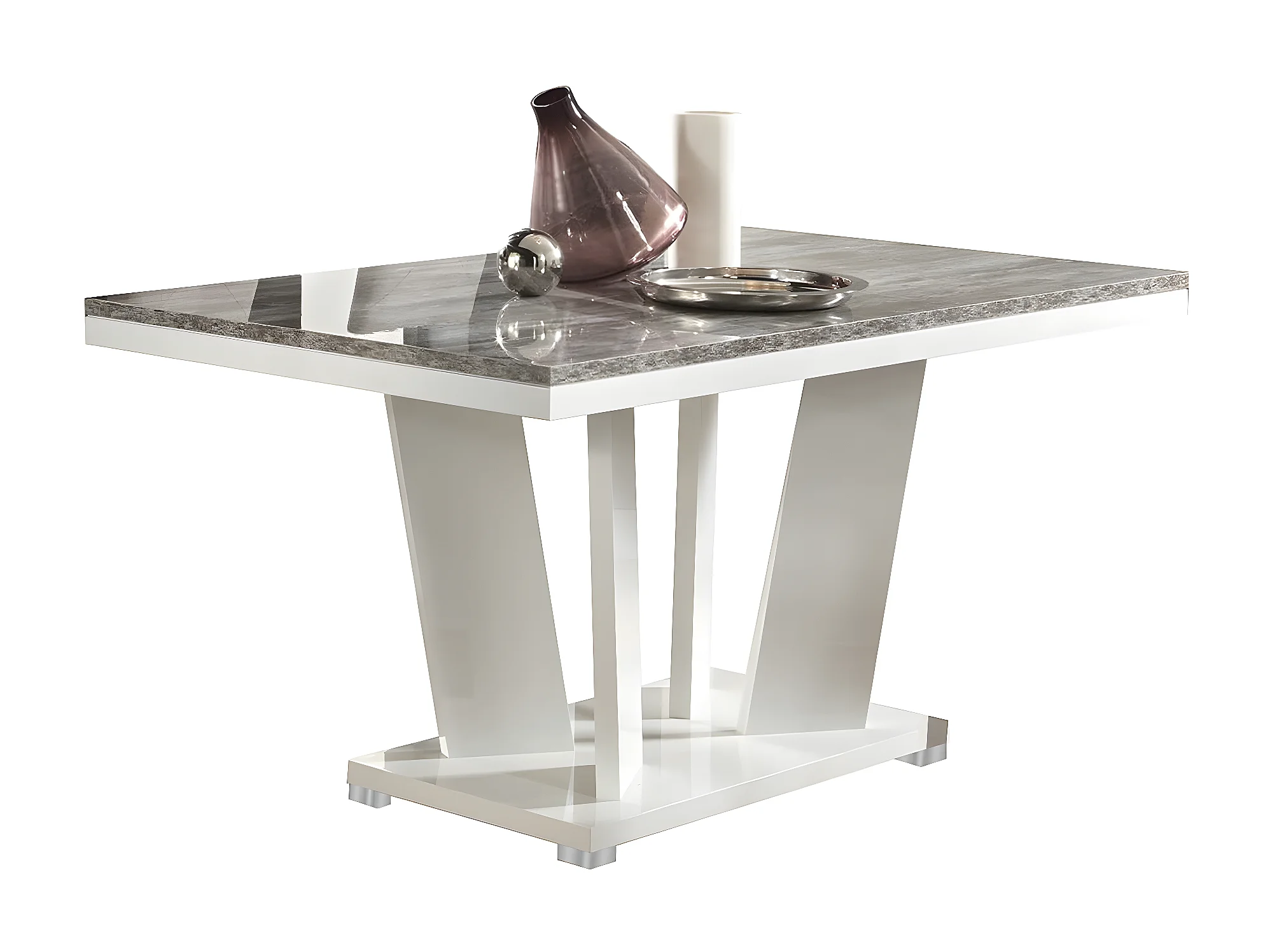 DENYS - Table Repas Rectangulaire Laqué Blanc et Effet Bois Taupe
