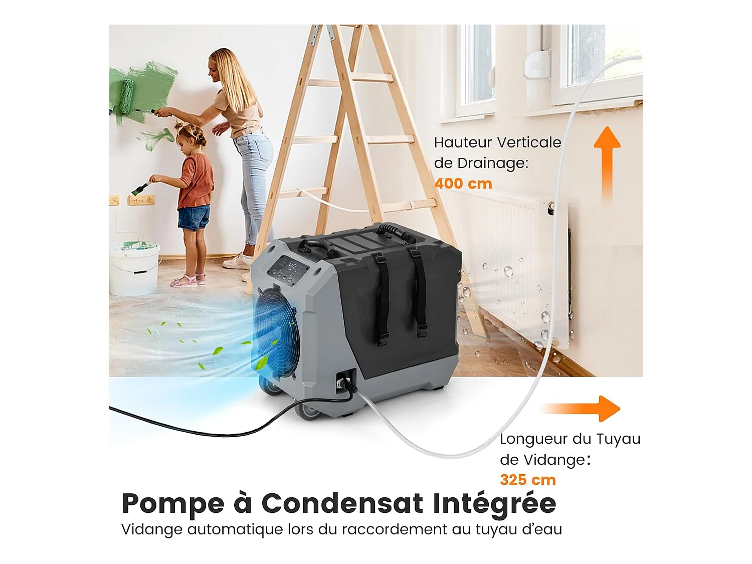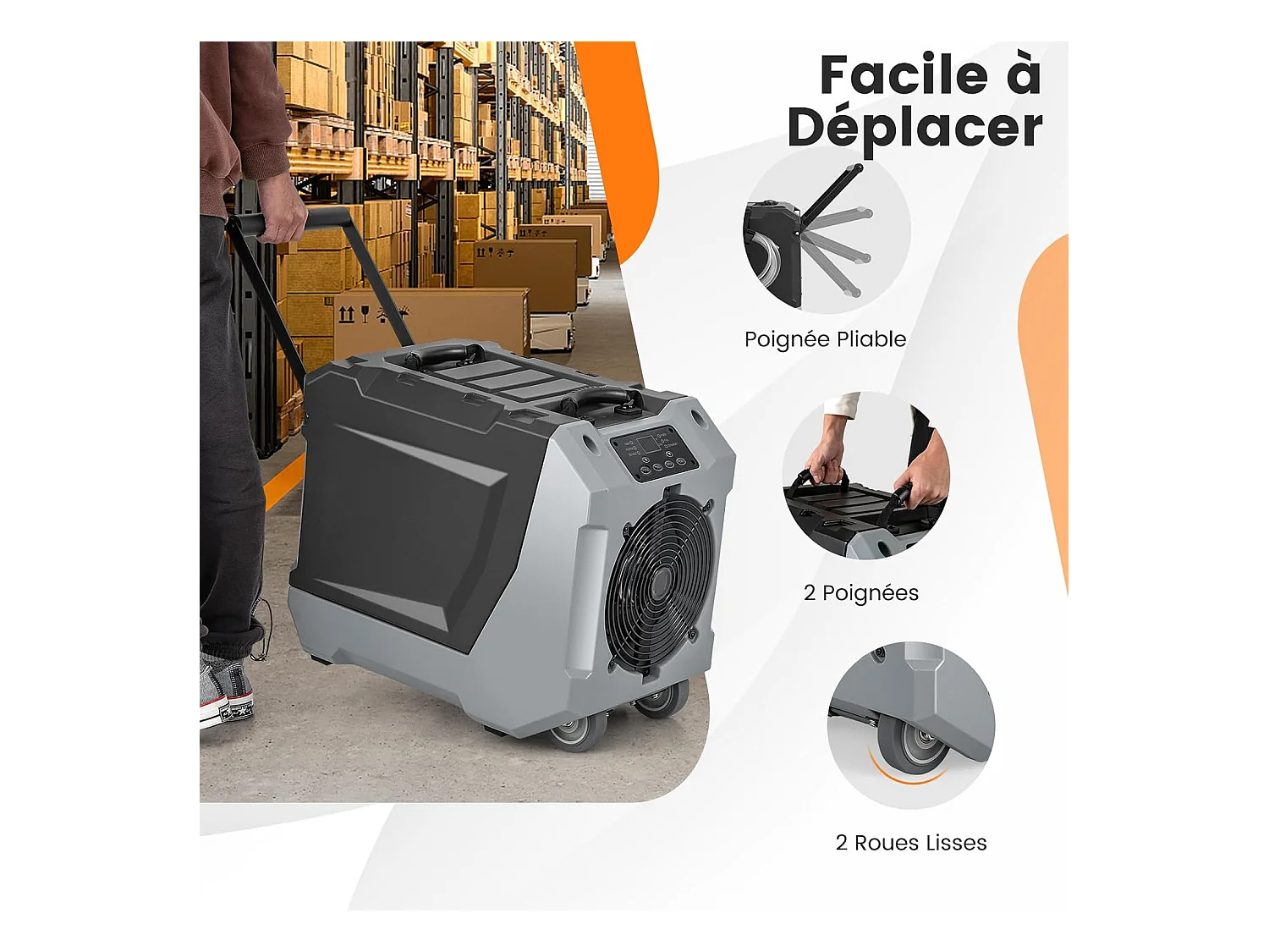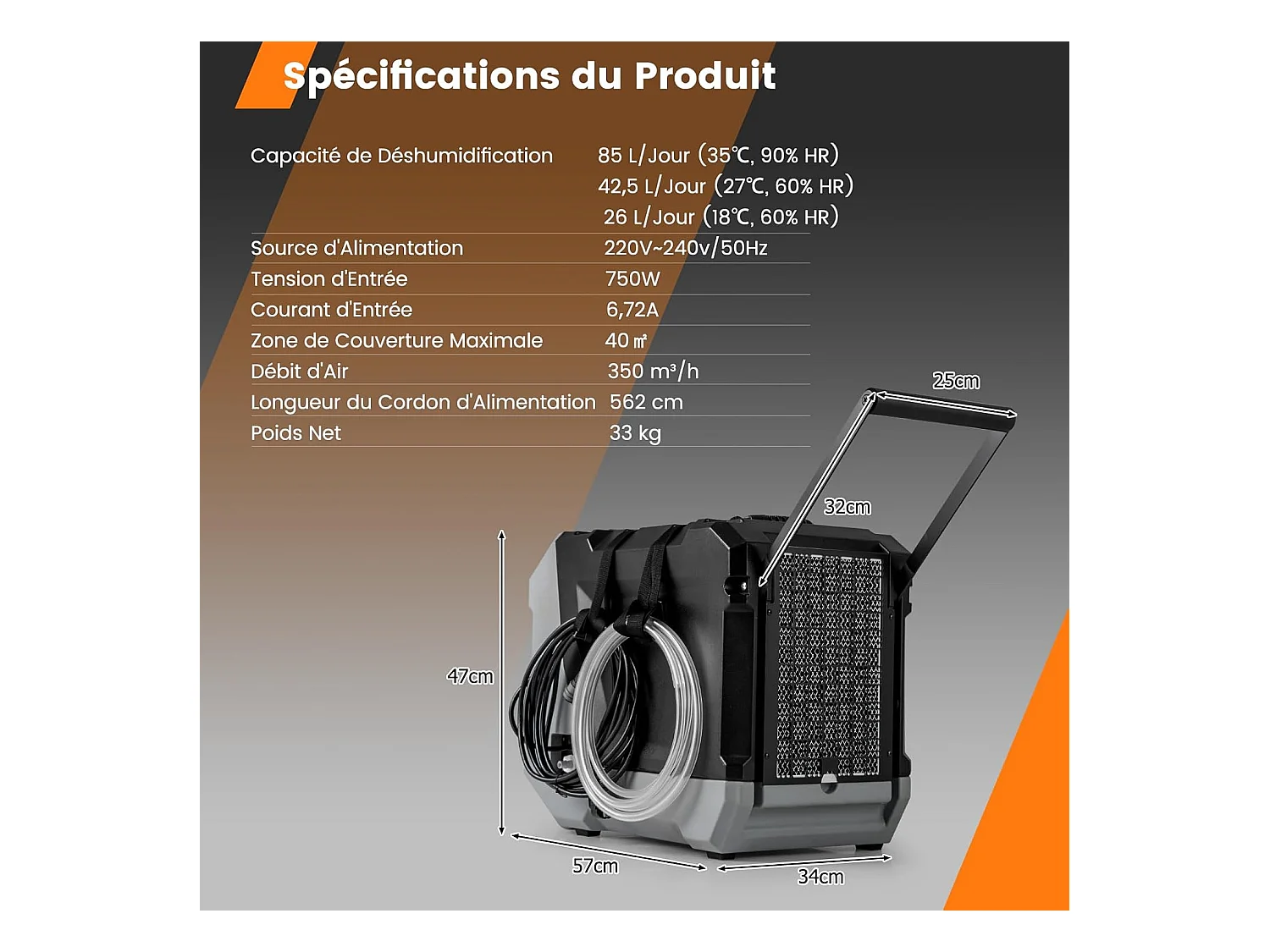 Déshumidificateur Commercial 85L/Jour, Déshumidificateur avec Pompe et Tuyau de Vidange Dégivrage Automatique, 2 Roues et Poignée Rétractable (Noir)
