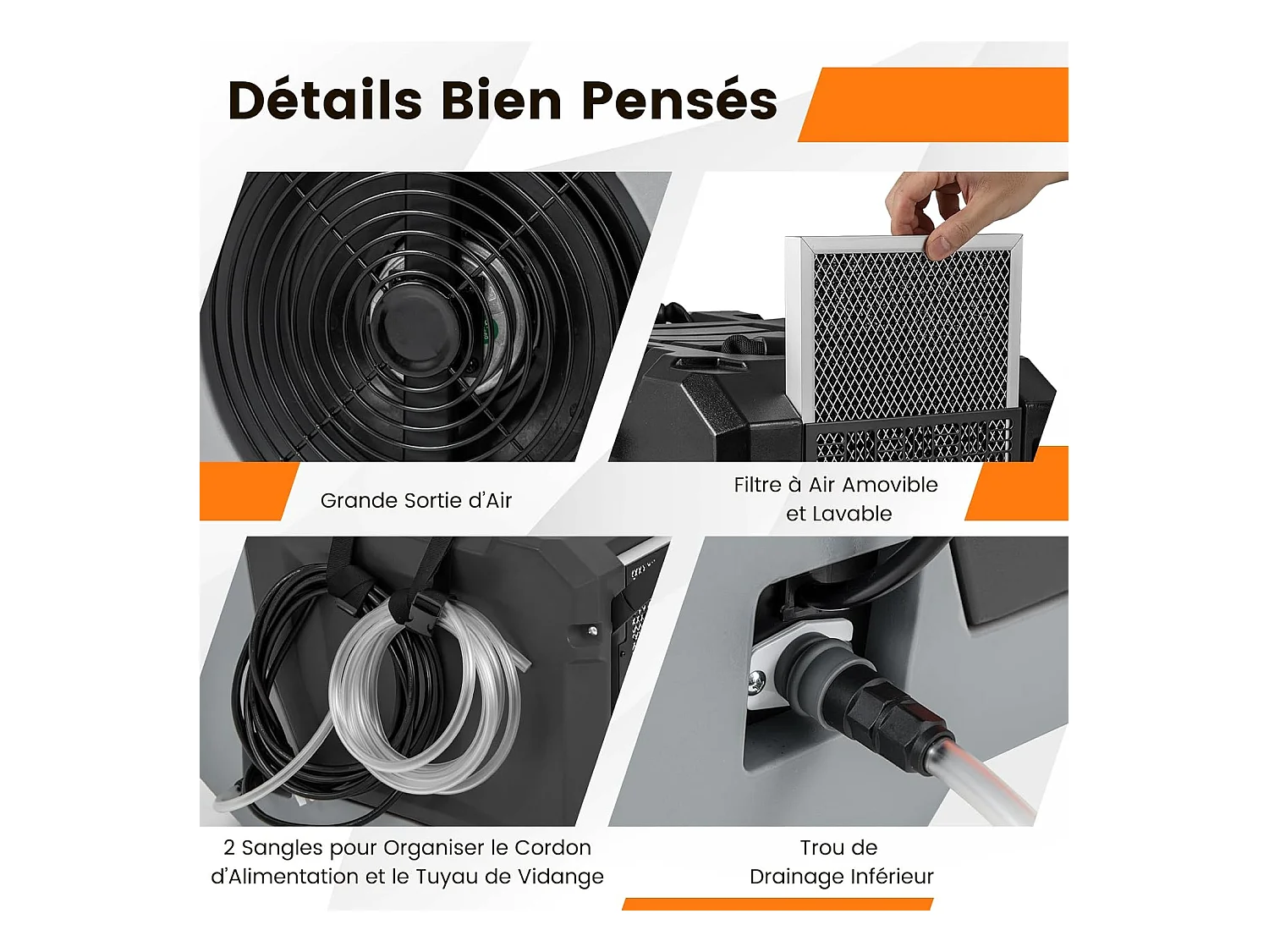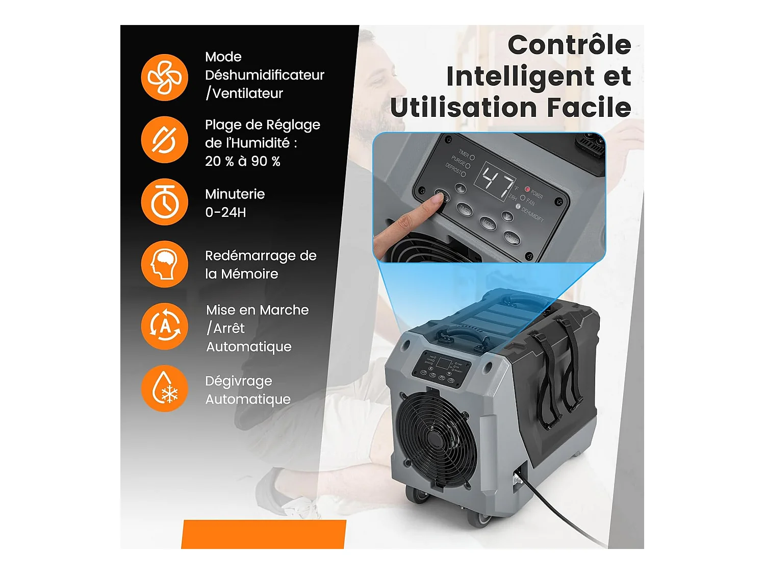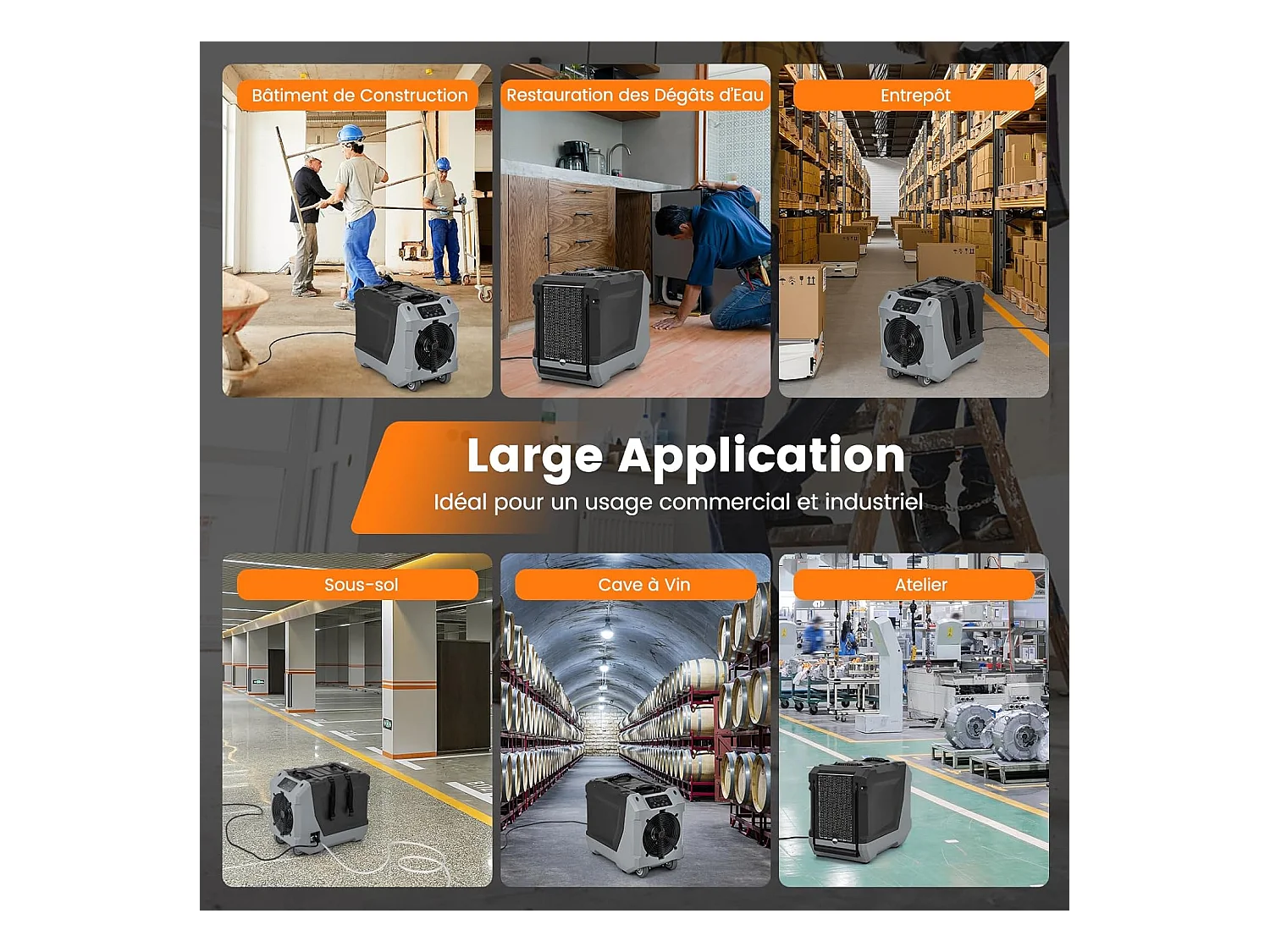 Déshumidificateur Commercial 85L/Jour, Déshumidificateur avec Pompe et Tuyau de Vidange Dégivrage Automatique, 2 Roues et Poignée Rétractable (Noir)