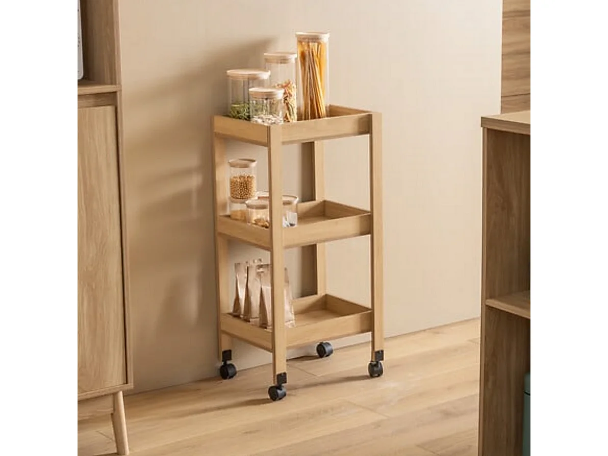 Desserte 3 niveaux coloris effet bois clair - Longueur 39,6 x largeur 30 x Hauteur 85,5 cm