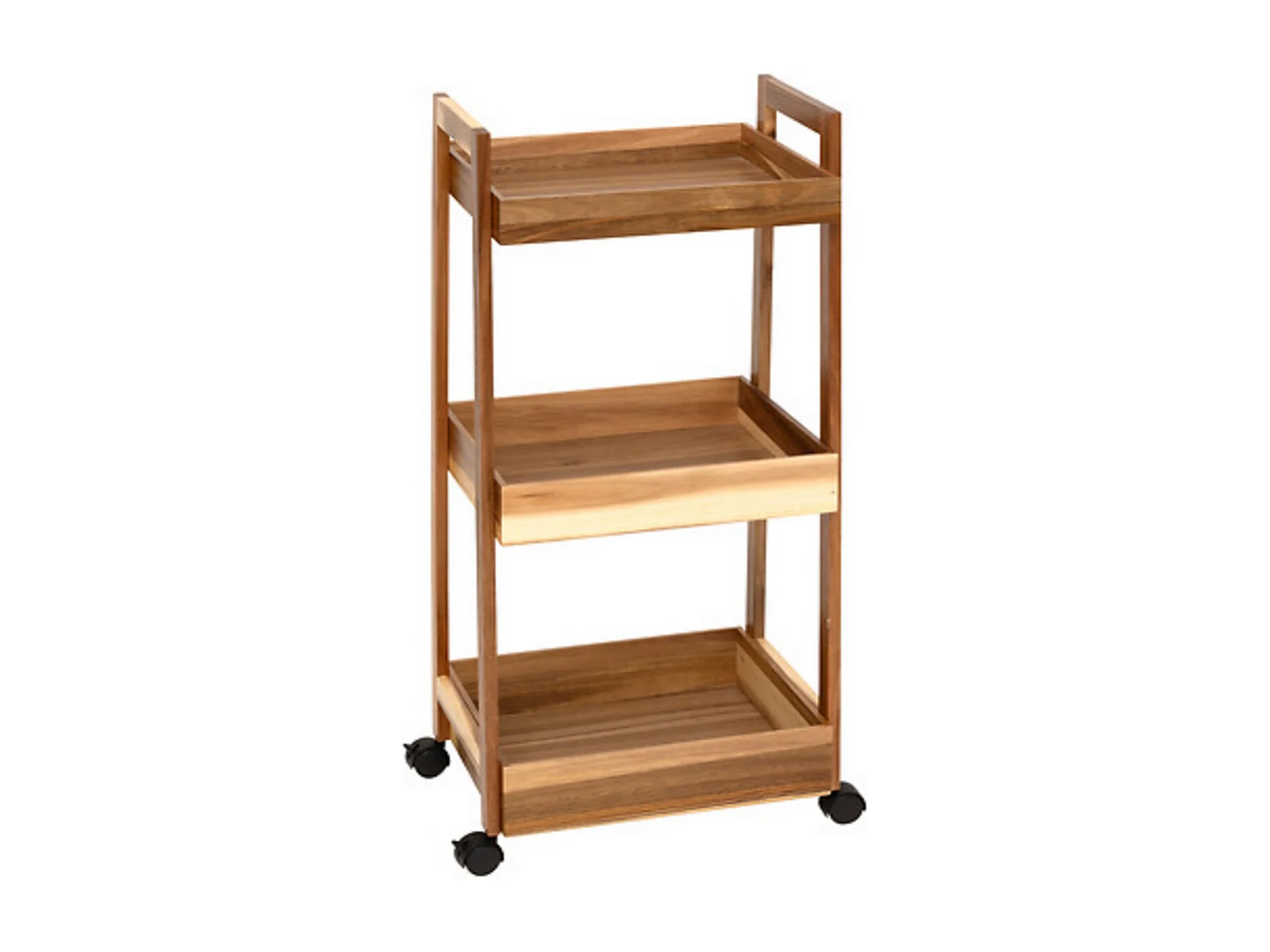 Desserte à roues 3 niveaux en bois d'acacia - Longueur 40 x largeur 30,5 x Hauteur 84,5 cm