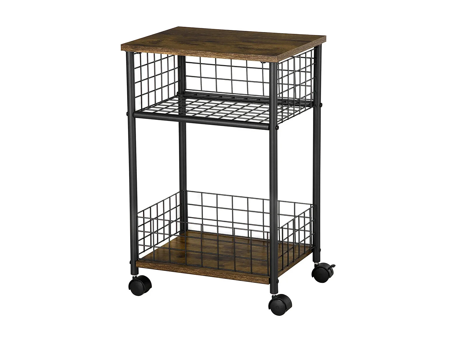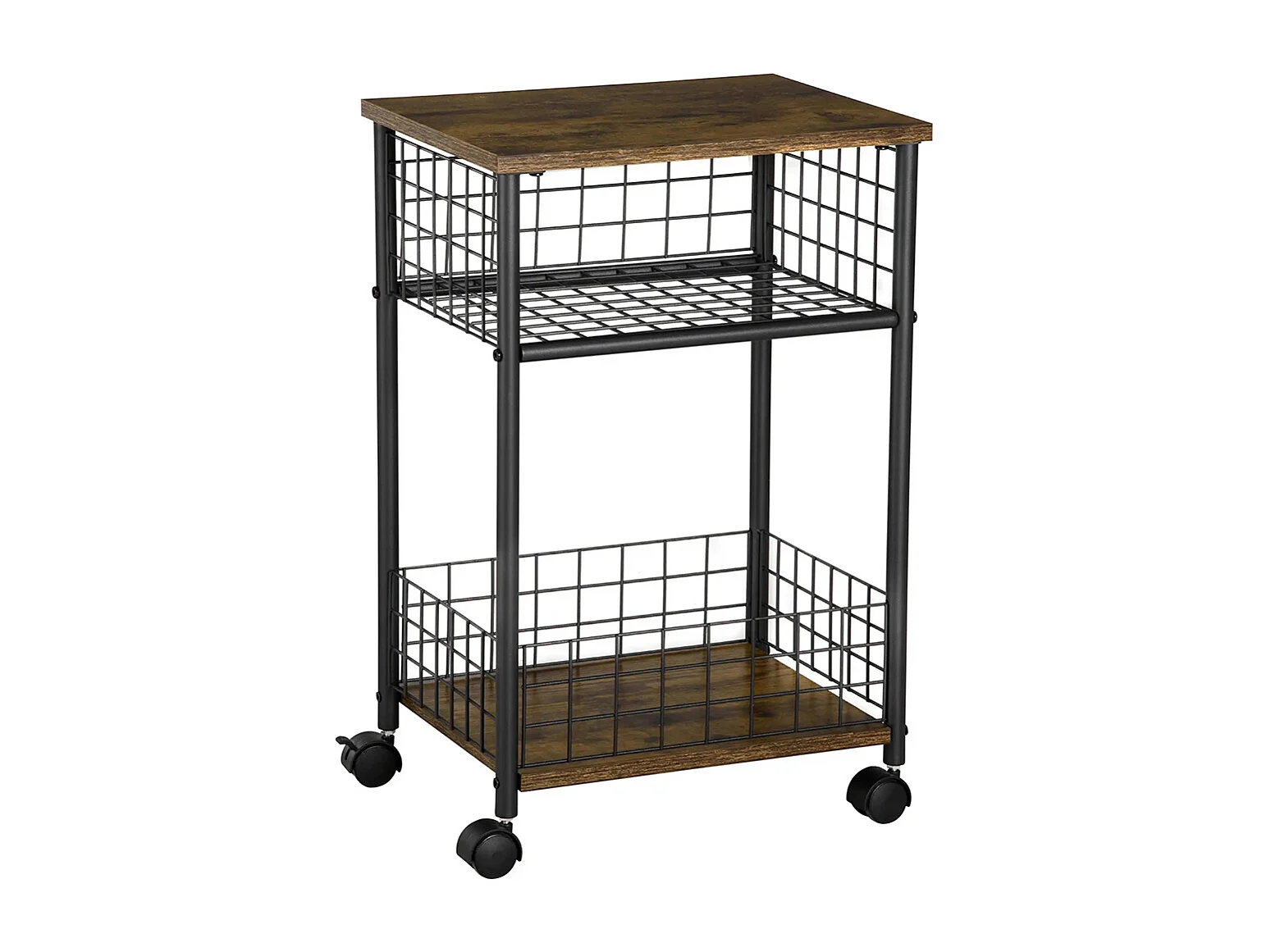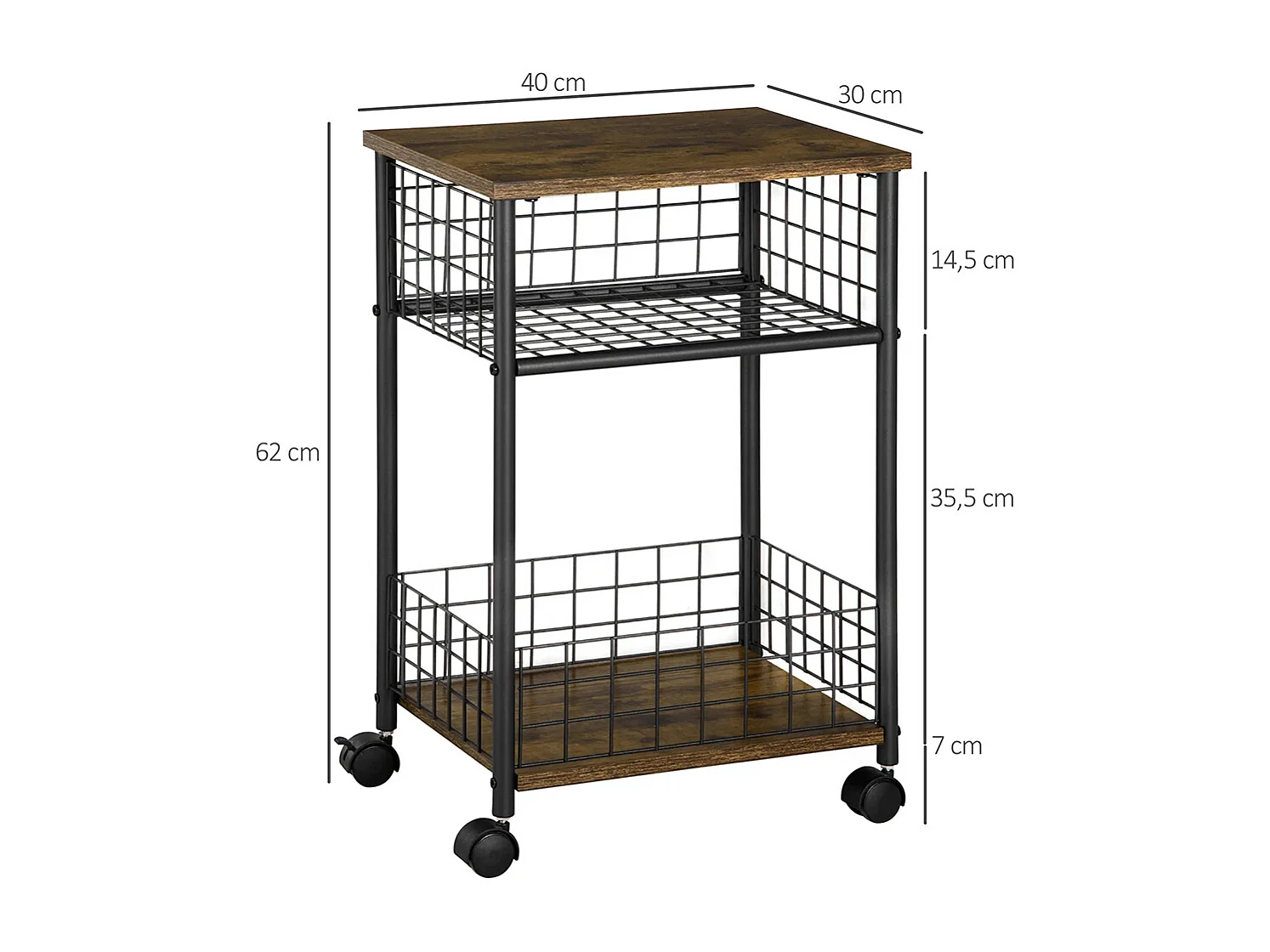 Desserte à roulettes, chariot de service, 2 compartiments ouverts, plan de travail et roulettes, 40 x 30 x 62 cm, marron