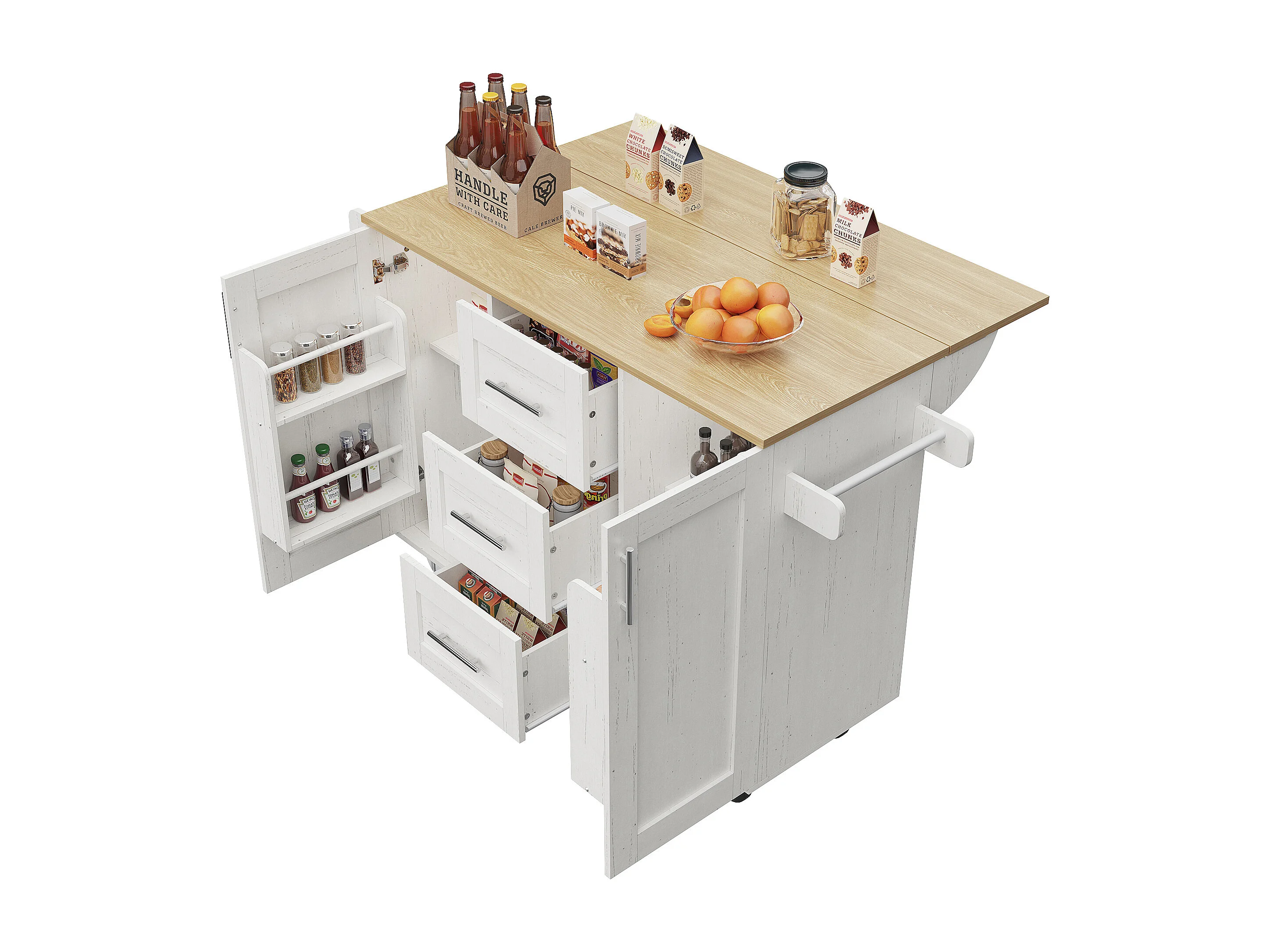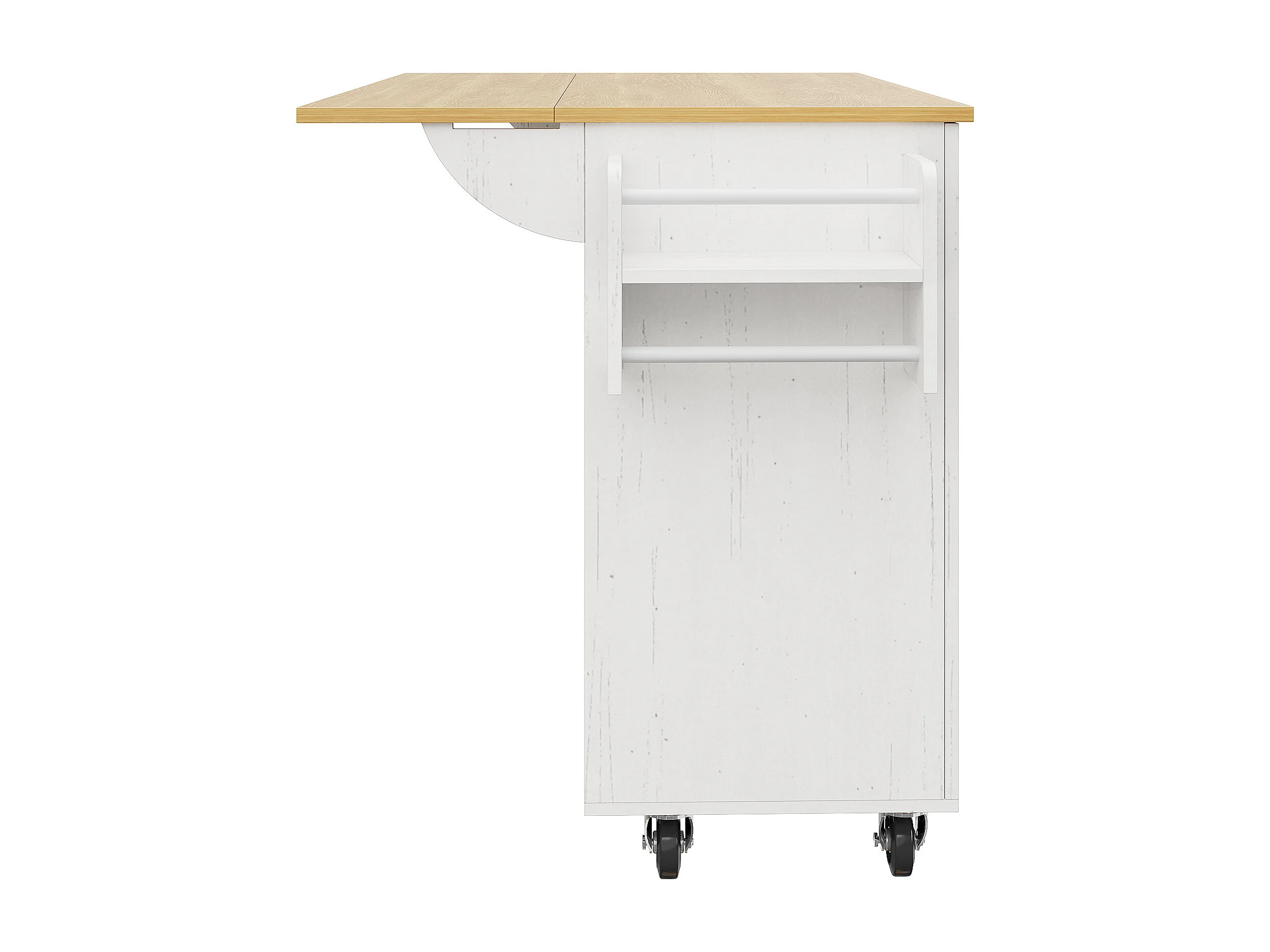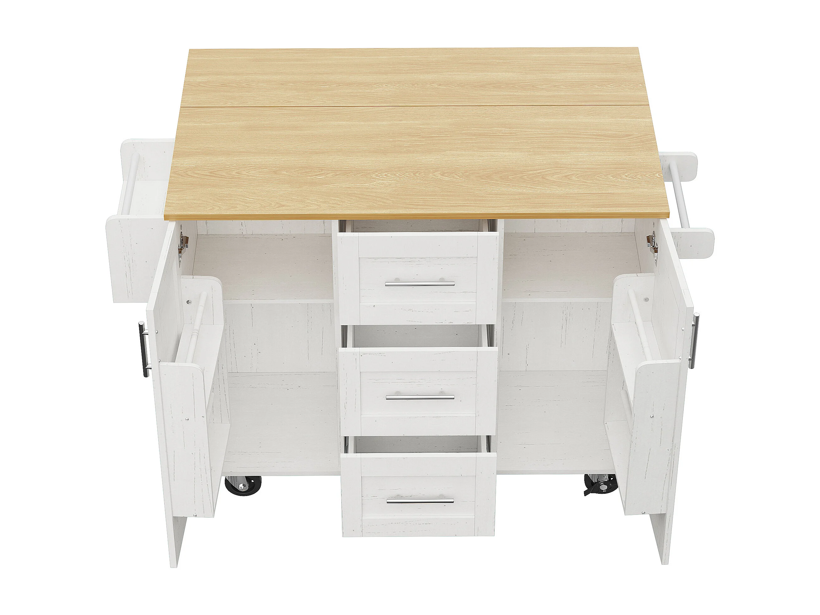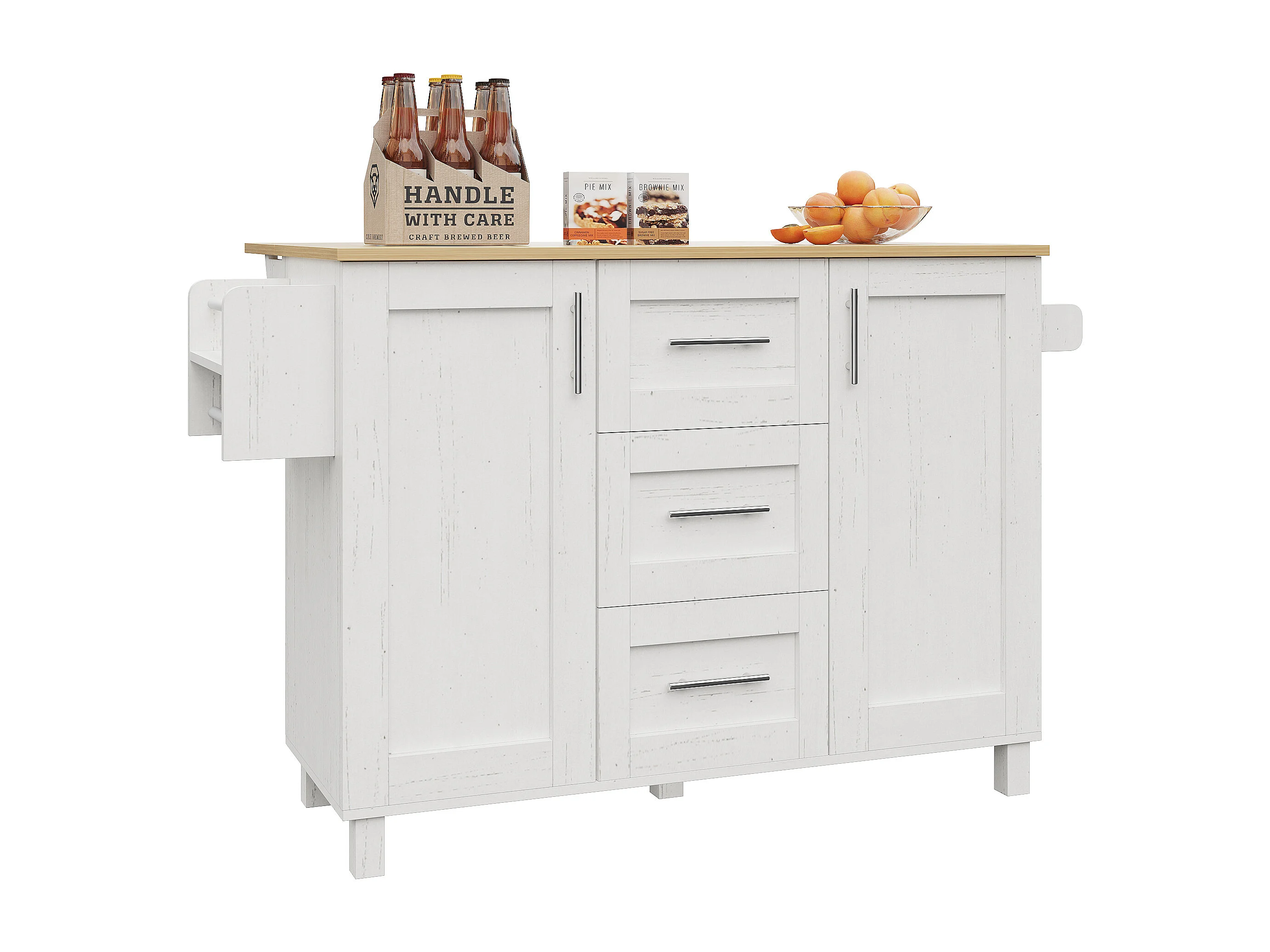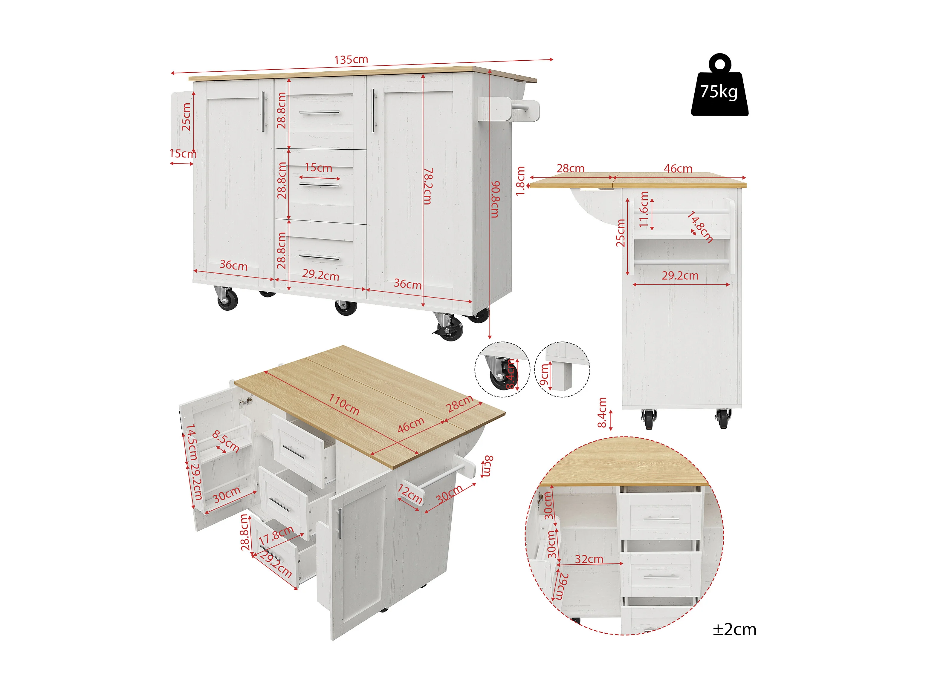 Desserte de cuisine (135x74x90.8cm)multifonction avec plan de travail en bois, rangement et roulette - Blanc