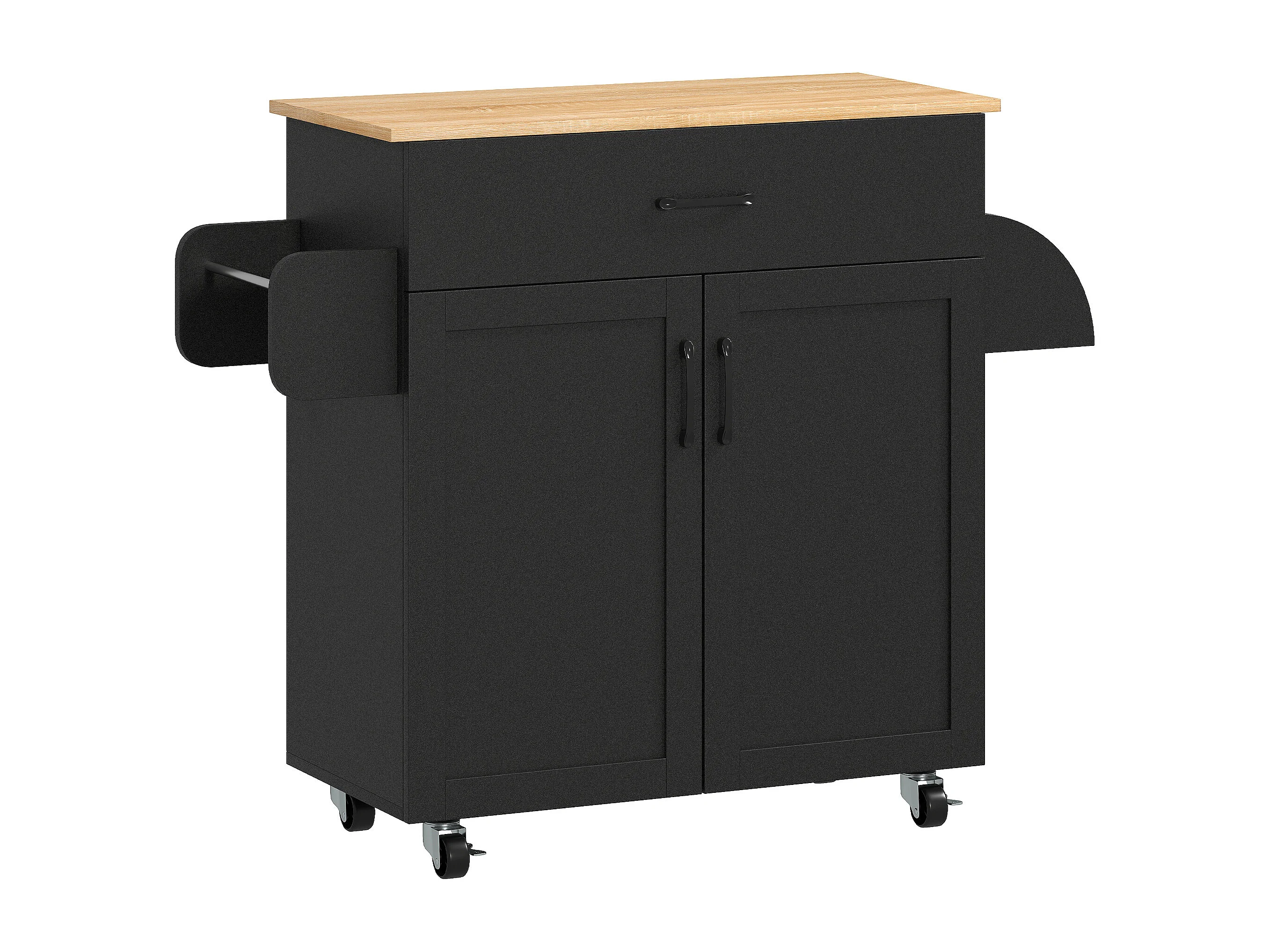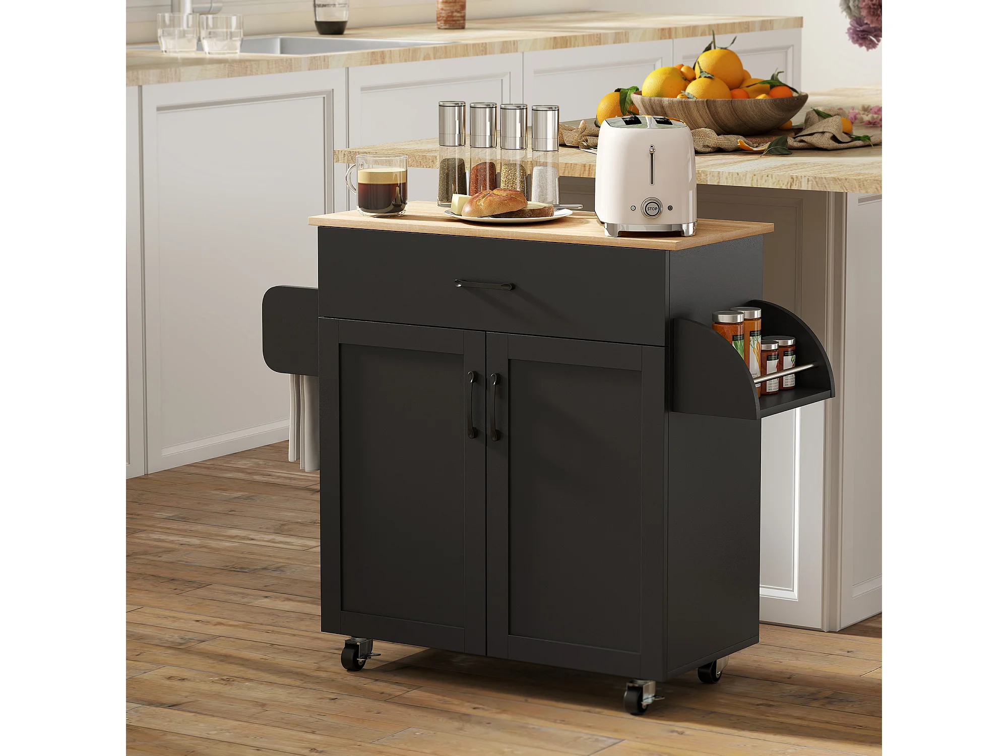 Desserte de cuisine 2 portes avec étagère tiroir coulissant porte-torchons étagère épices noir aspect chêne clair