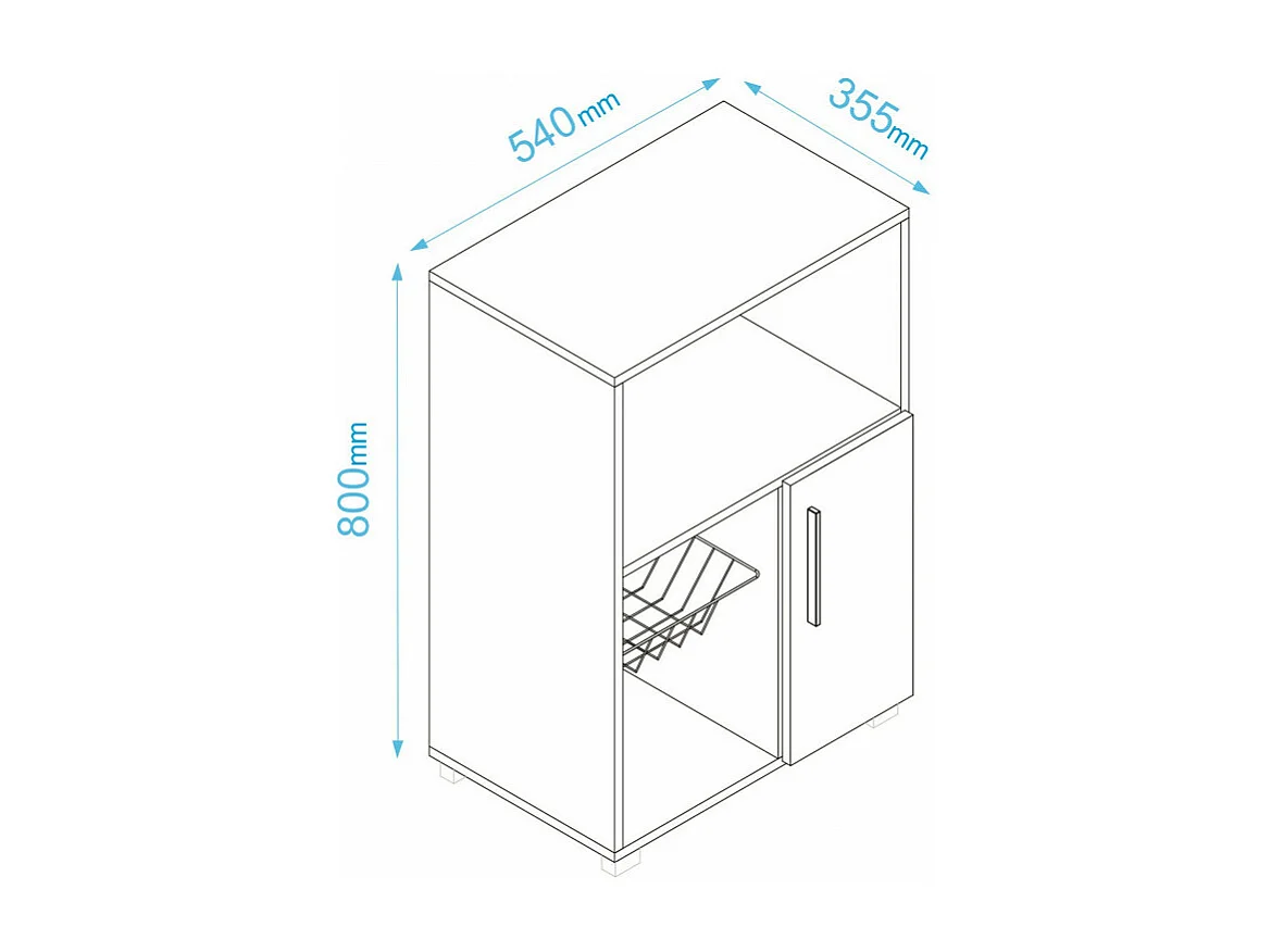 Desserte de Cuisine Micro-Onde Blanche 1 Porte 1 Panier Métal