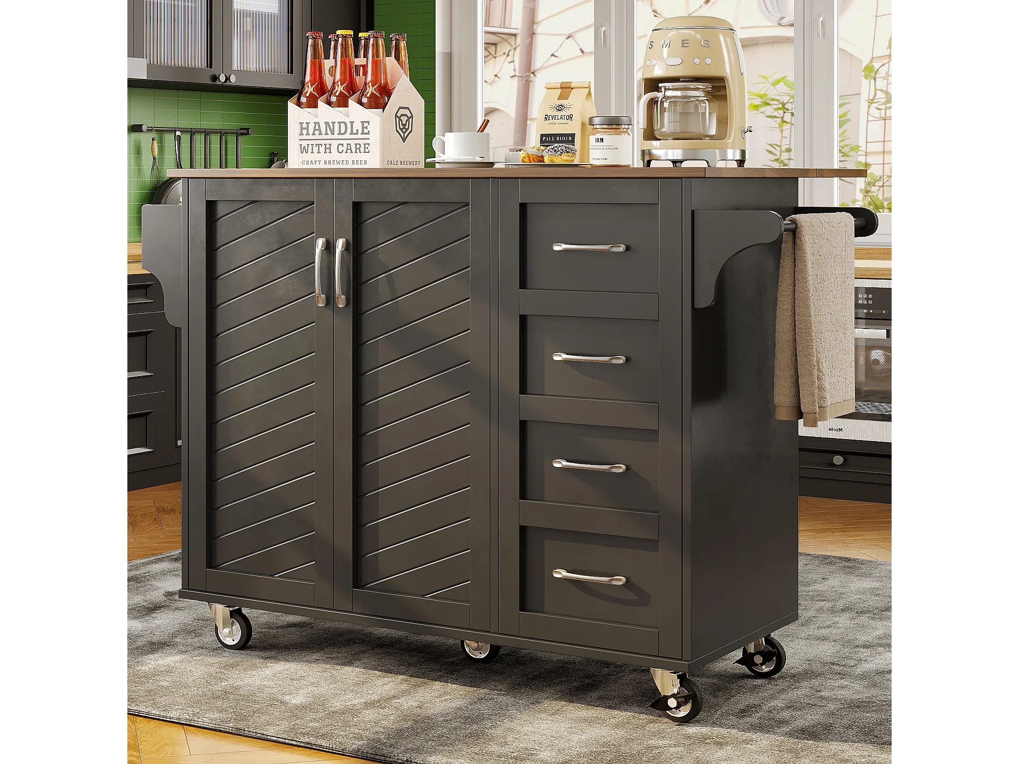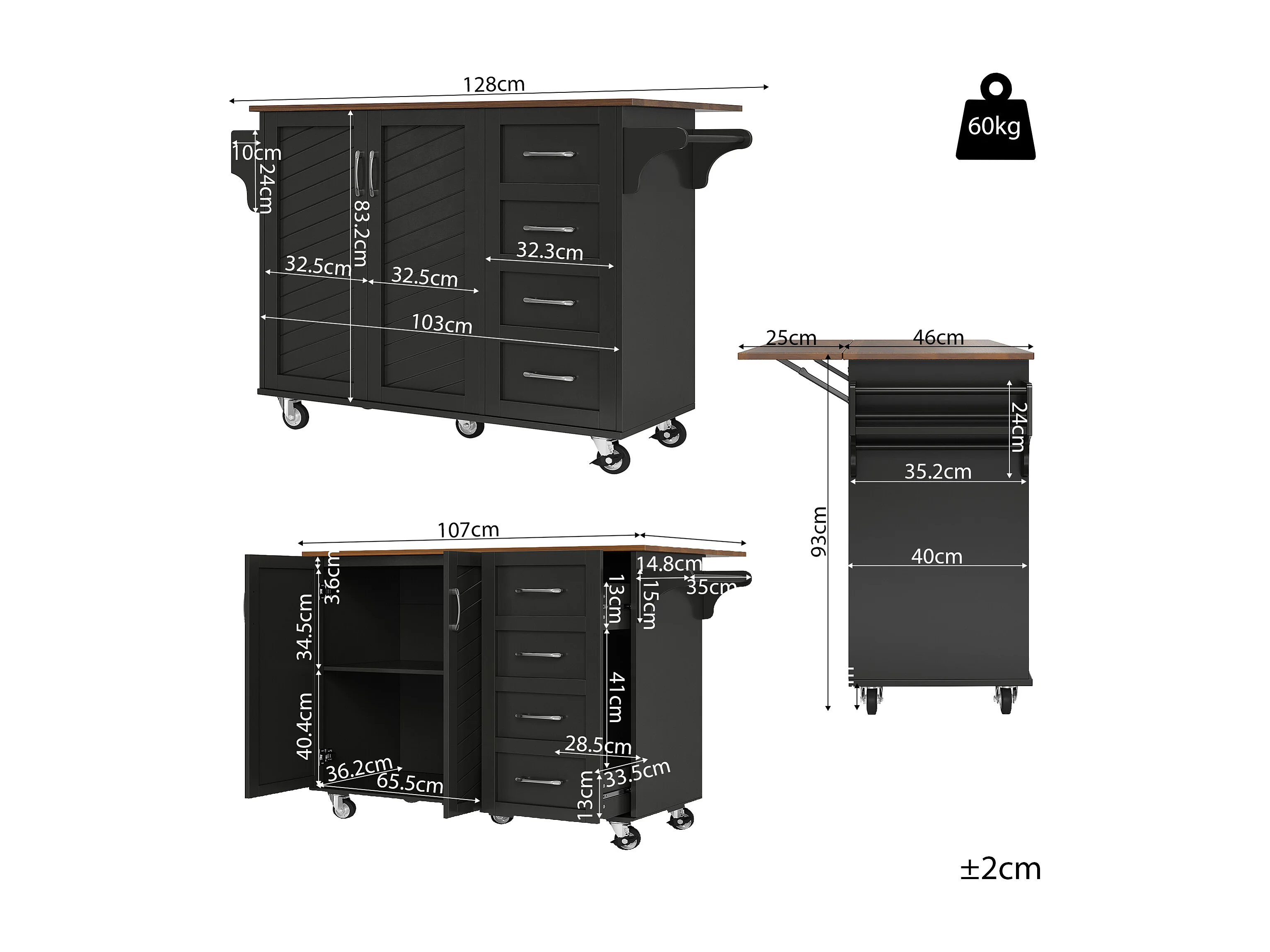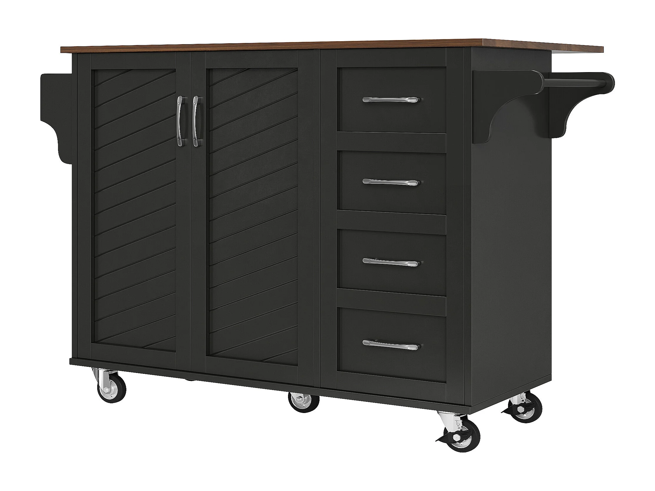 Desserte de cuisine 128x(46-71)x93 cm 2 portes et 2 tiroirs Îlot de cuisine avec plateau extensible - noir