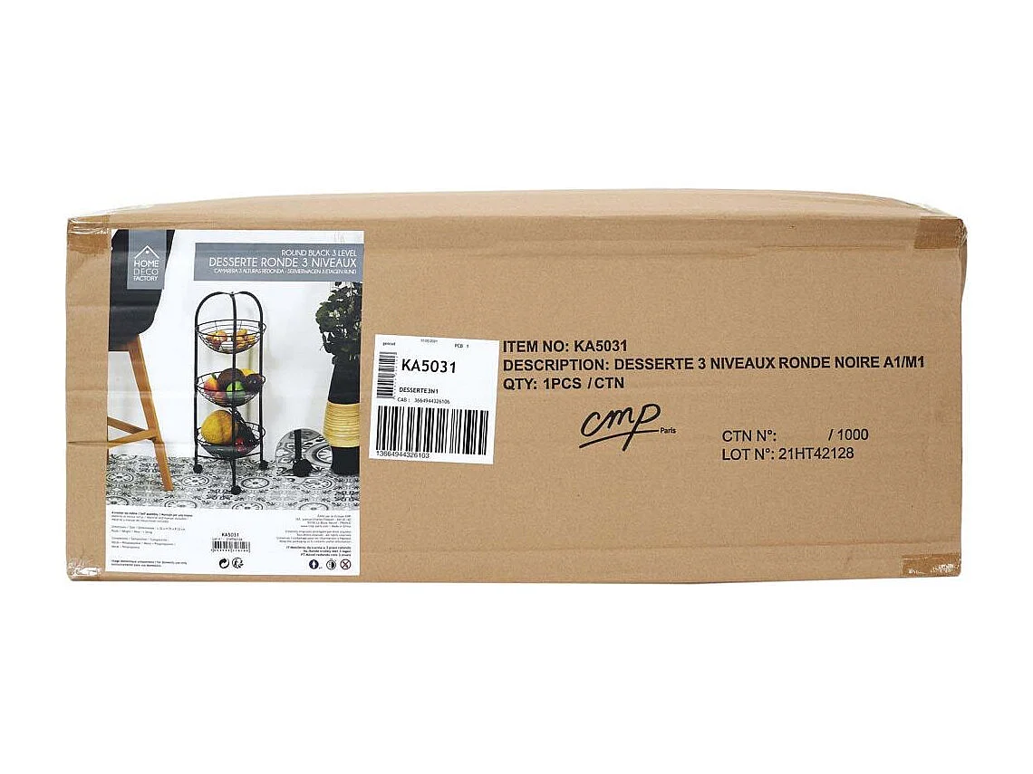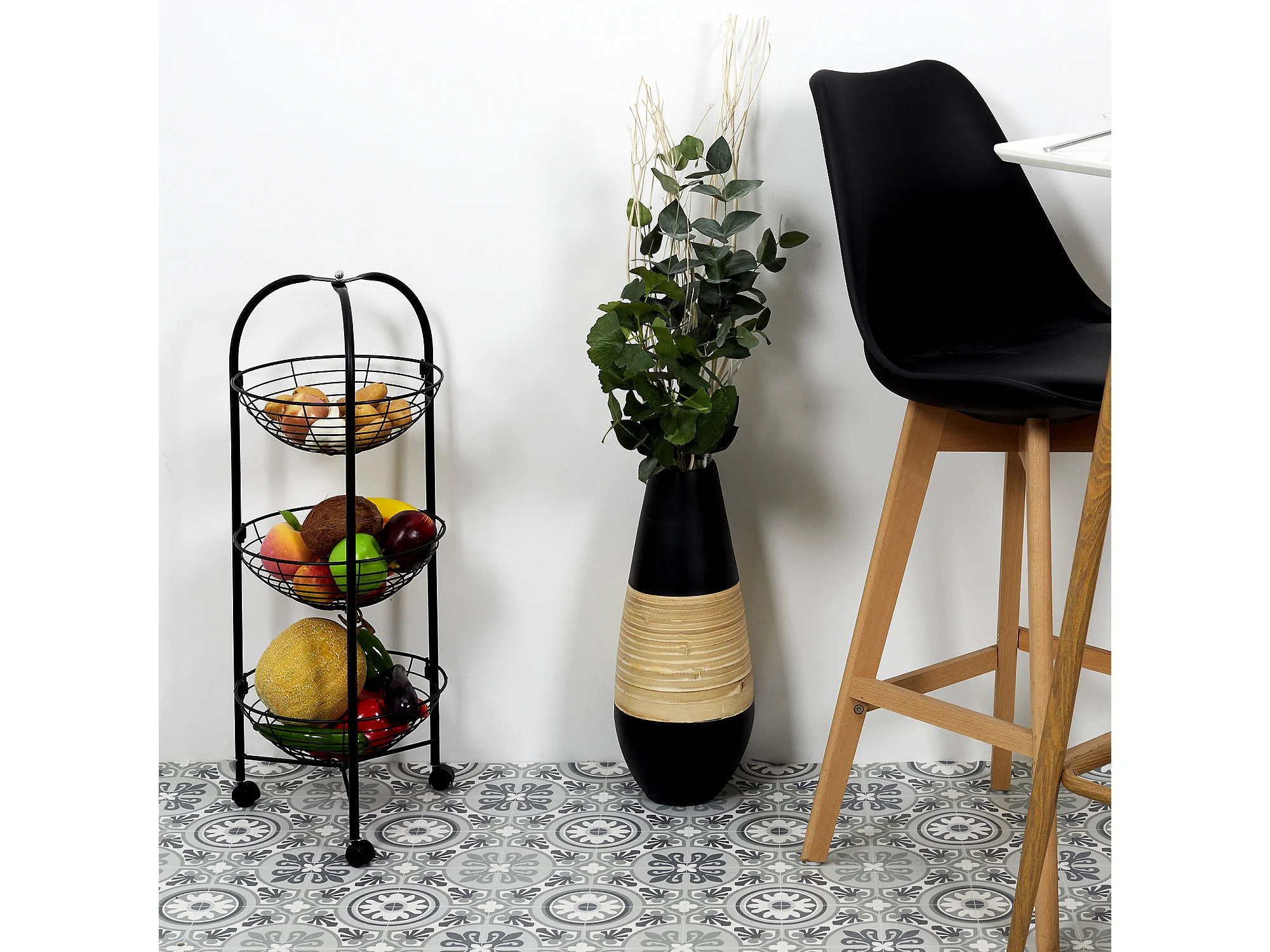 Desserte 3 Niveaux avec Porte-Bouteilles "Eli" 82cm Noir & Or