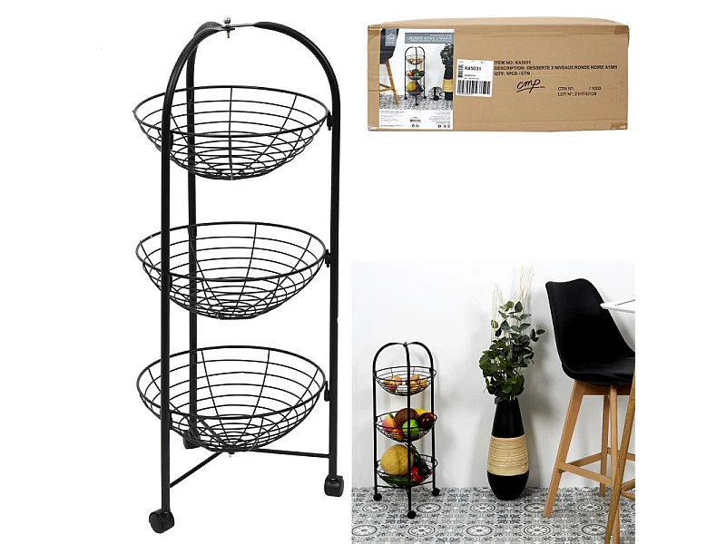 Chariot pliant à roulettes - Structure métallique grise, 2 niveaux en stratifié noir - 72*66*43 cm - BAUHAUS