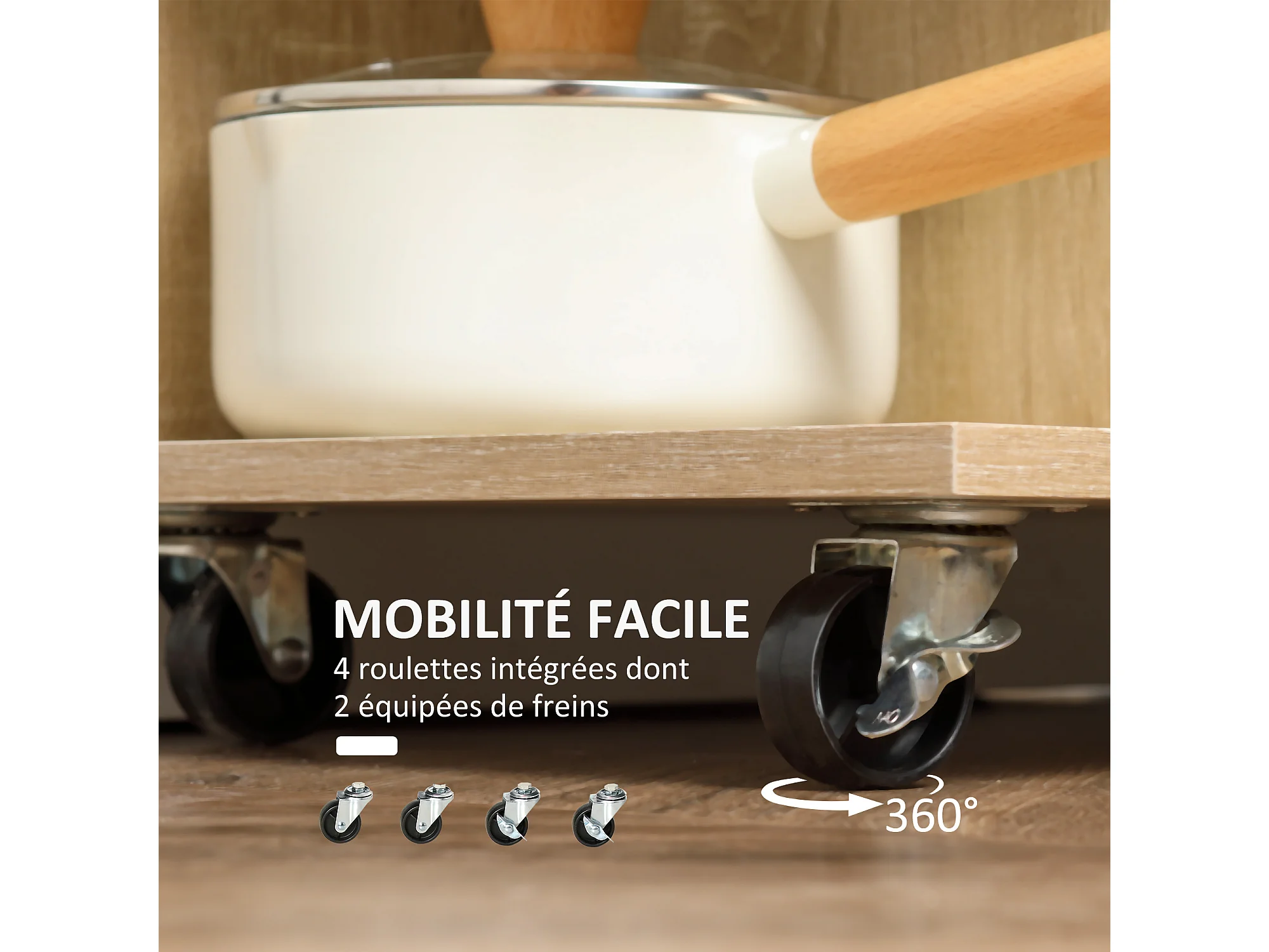 Chariot de service desserte de cuisine à roulettes tiroir placard 2 portes étagère blanc aspect chêne clair