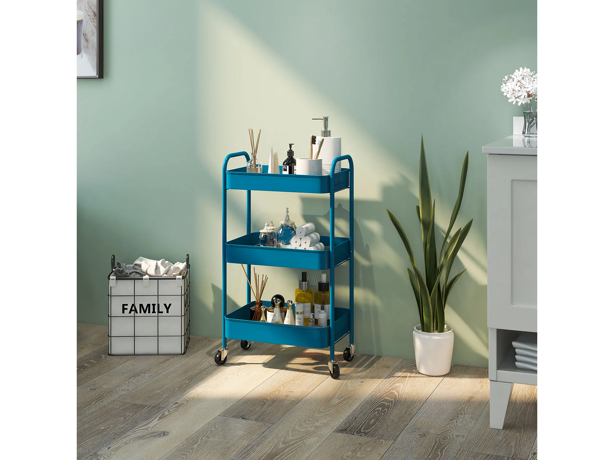 Desserte de cuisine style néo-rétro - 3 étagères - acier bleu foncé