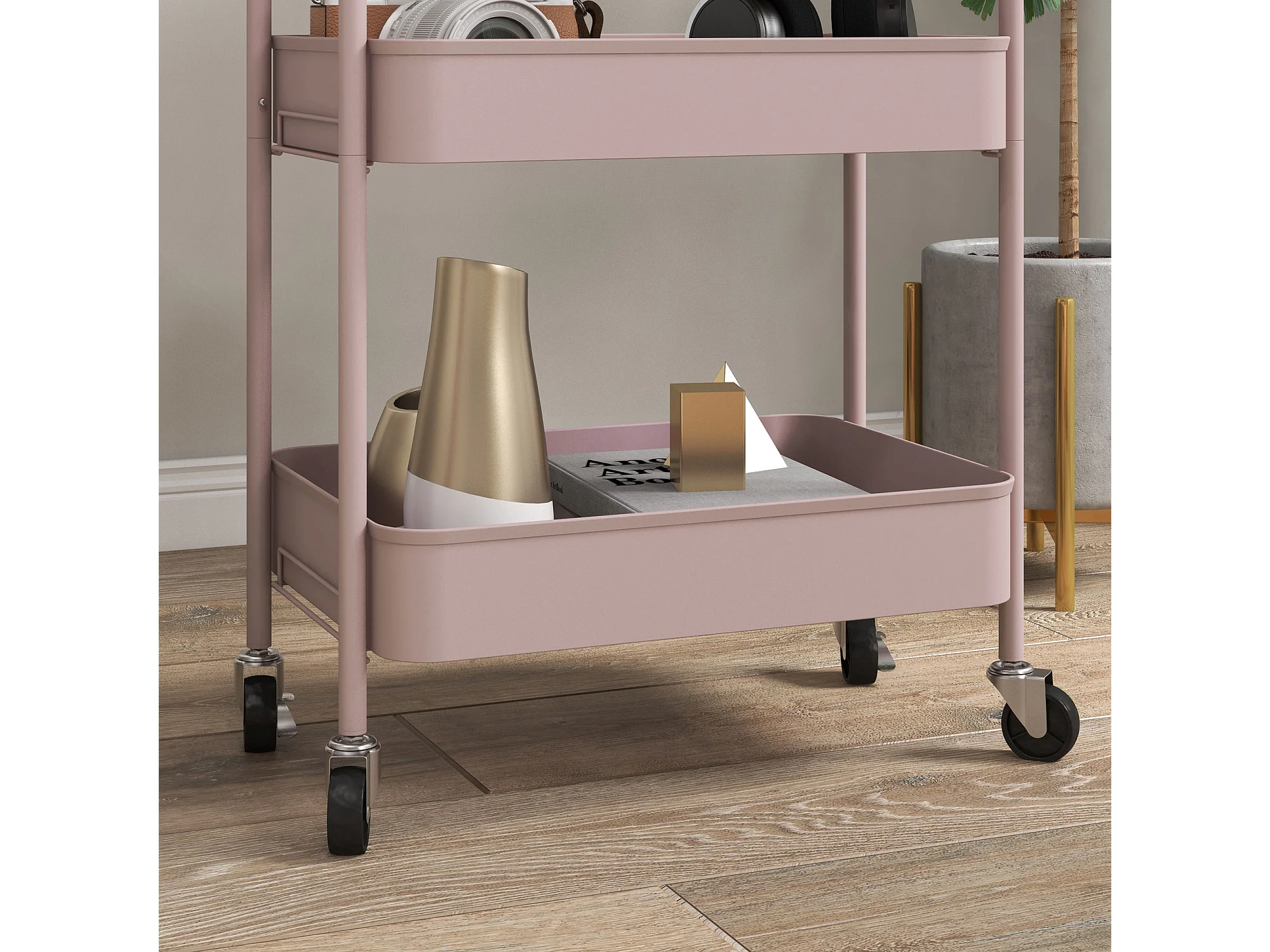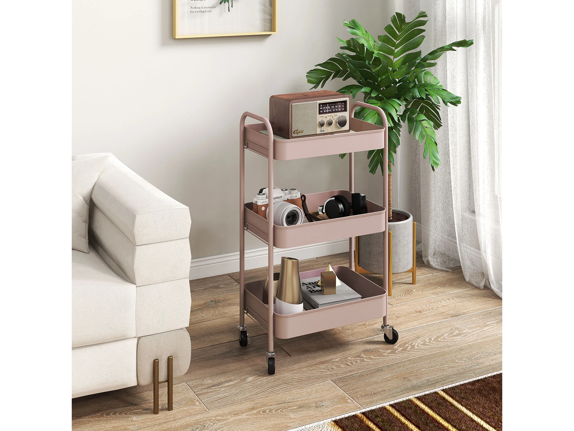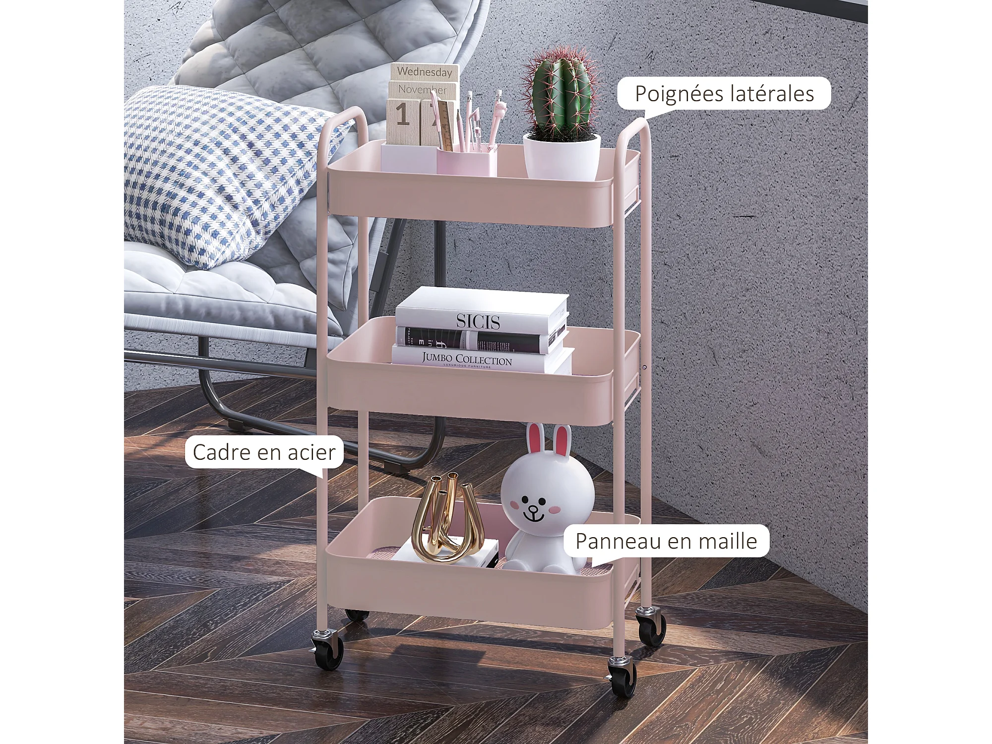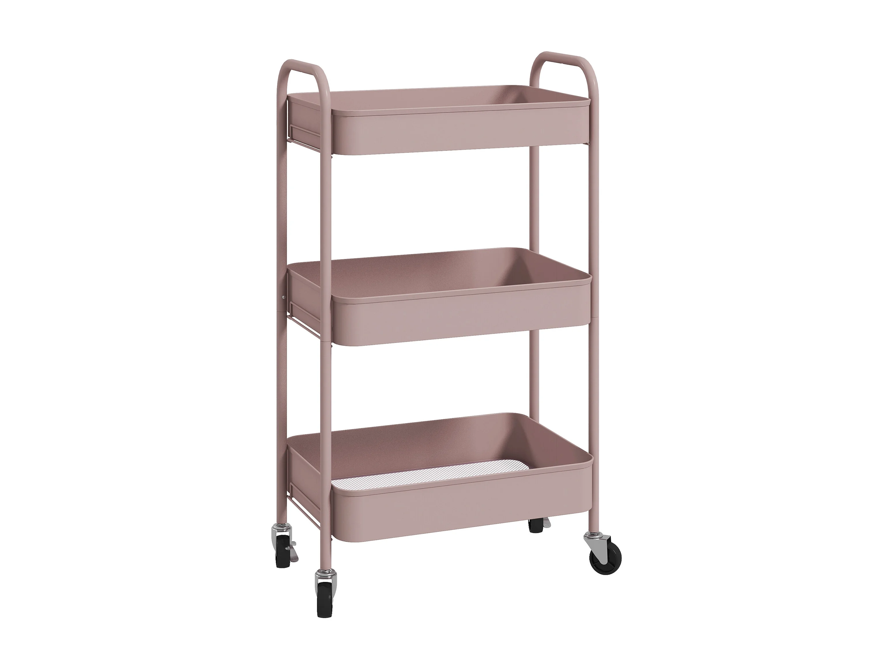 Desserte de cuisine style néo-rétro - 3 étagères - acier vieux rose