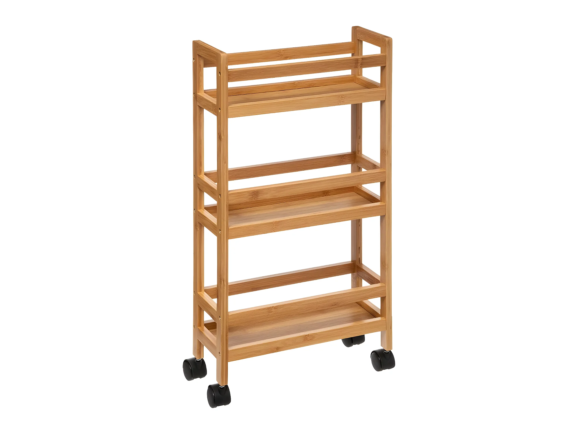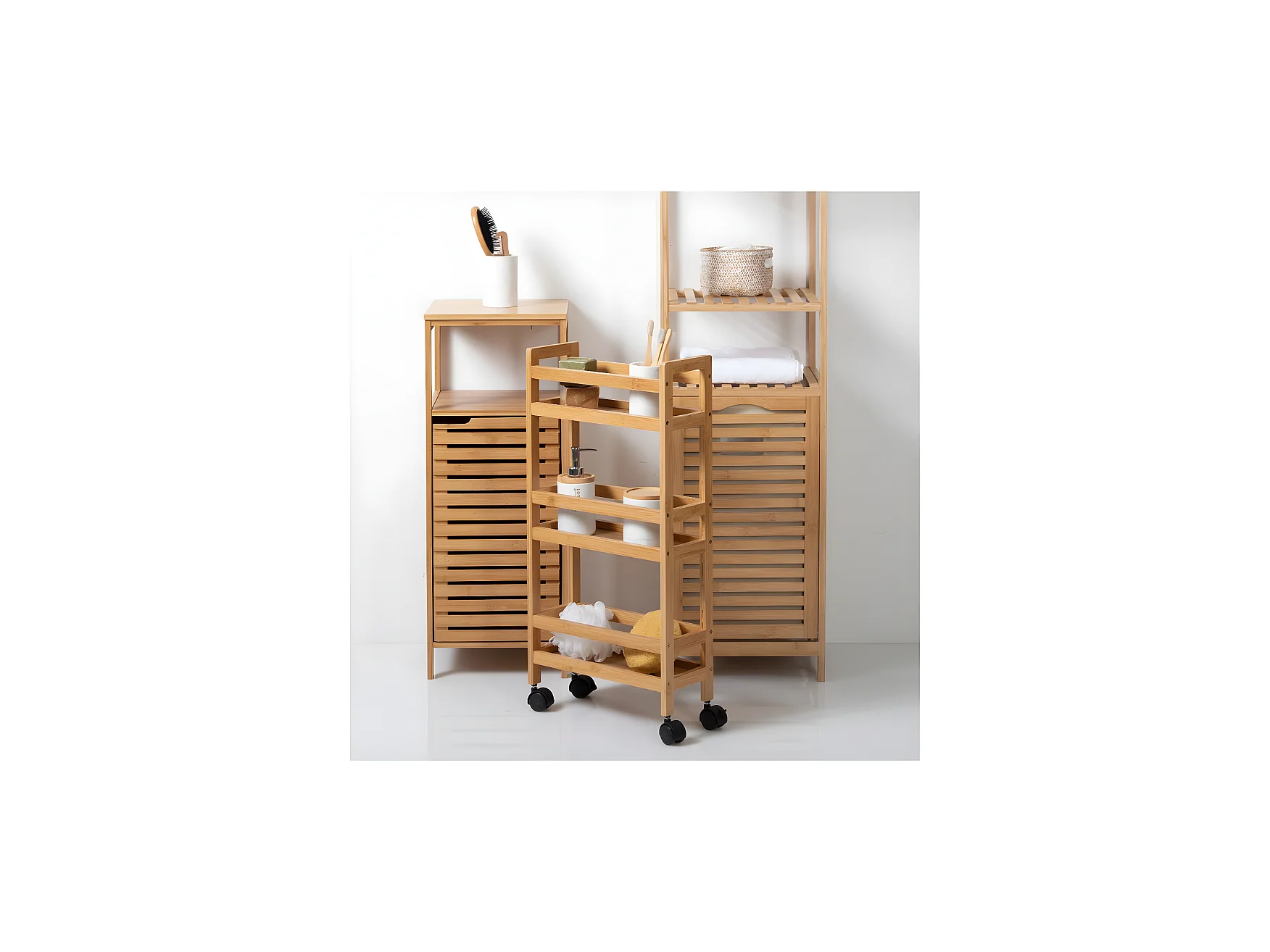 Desserte de Salle de bain sur roues 3 Niveaux en Bambou
