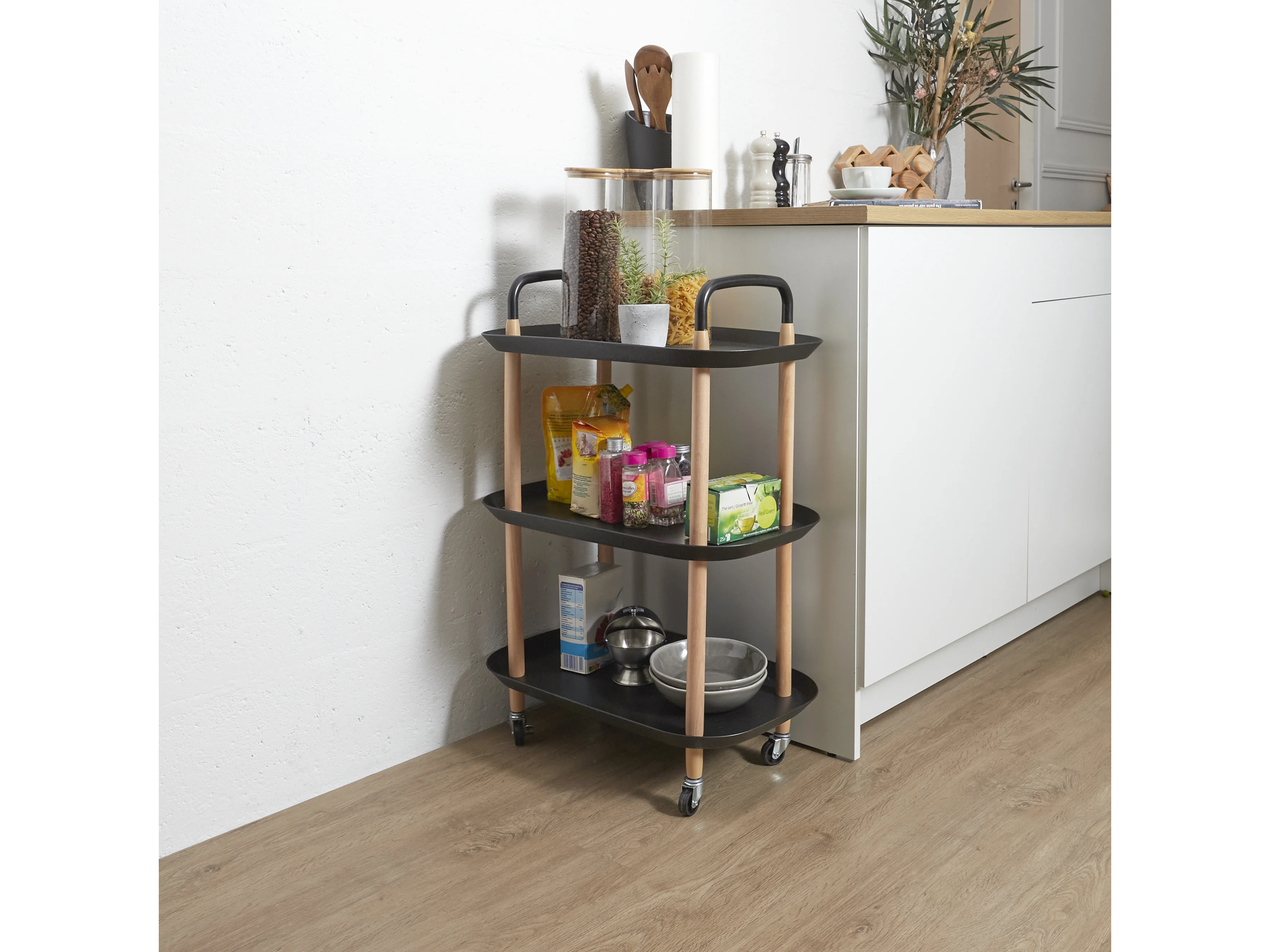 Chariot de cuisine noir 56x43x89,5 bois d'ingénierie