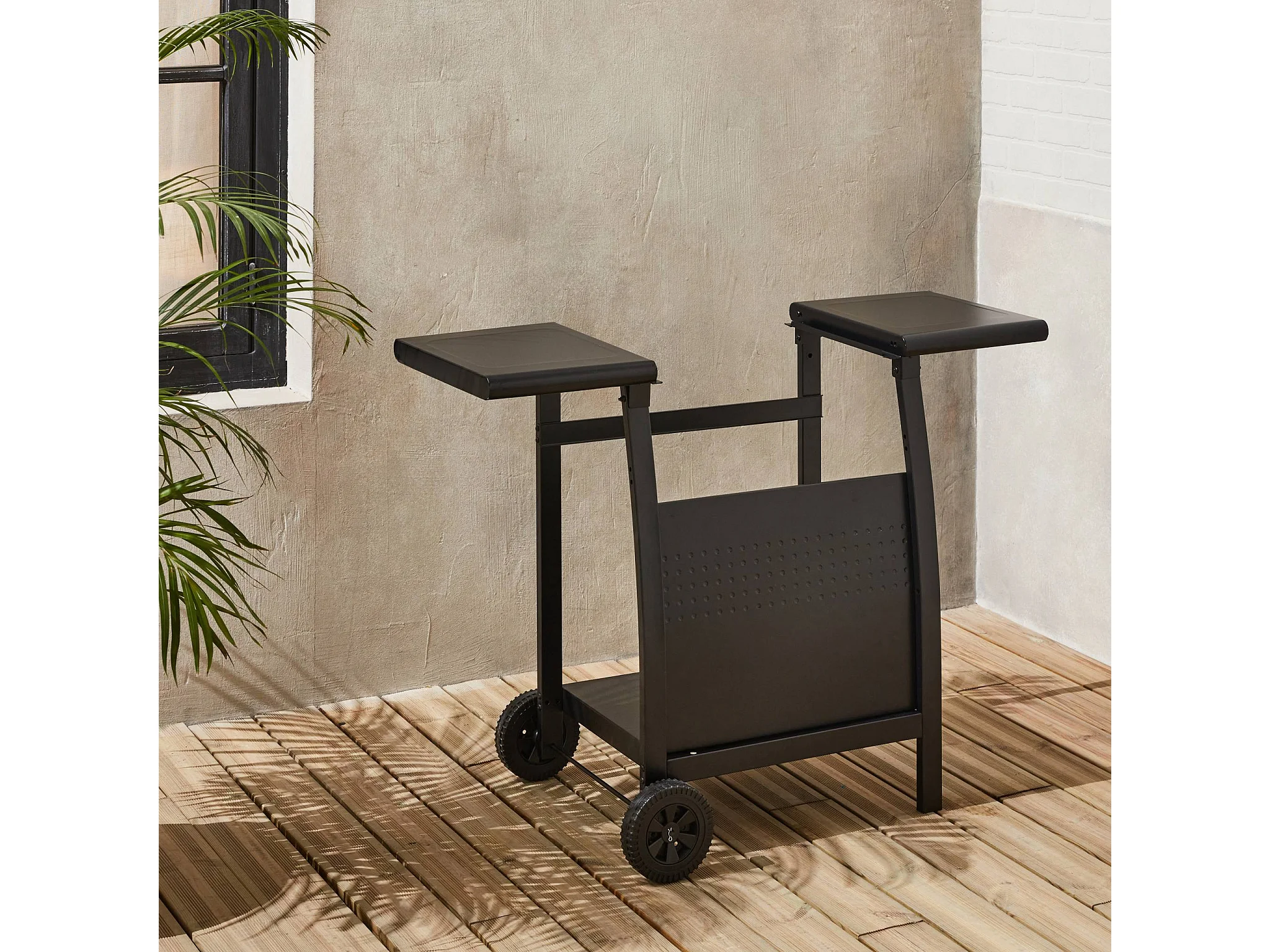 Desserte pour plancha au gaz - Chariot Porthos 2 brûleurs - Chariot barbecue noir. cuisine extérieure. roulettes