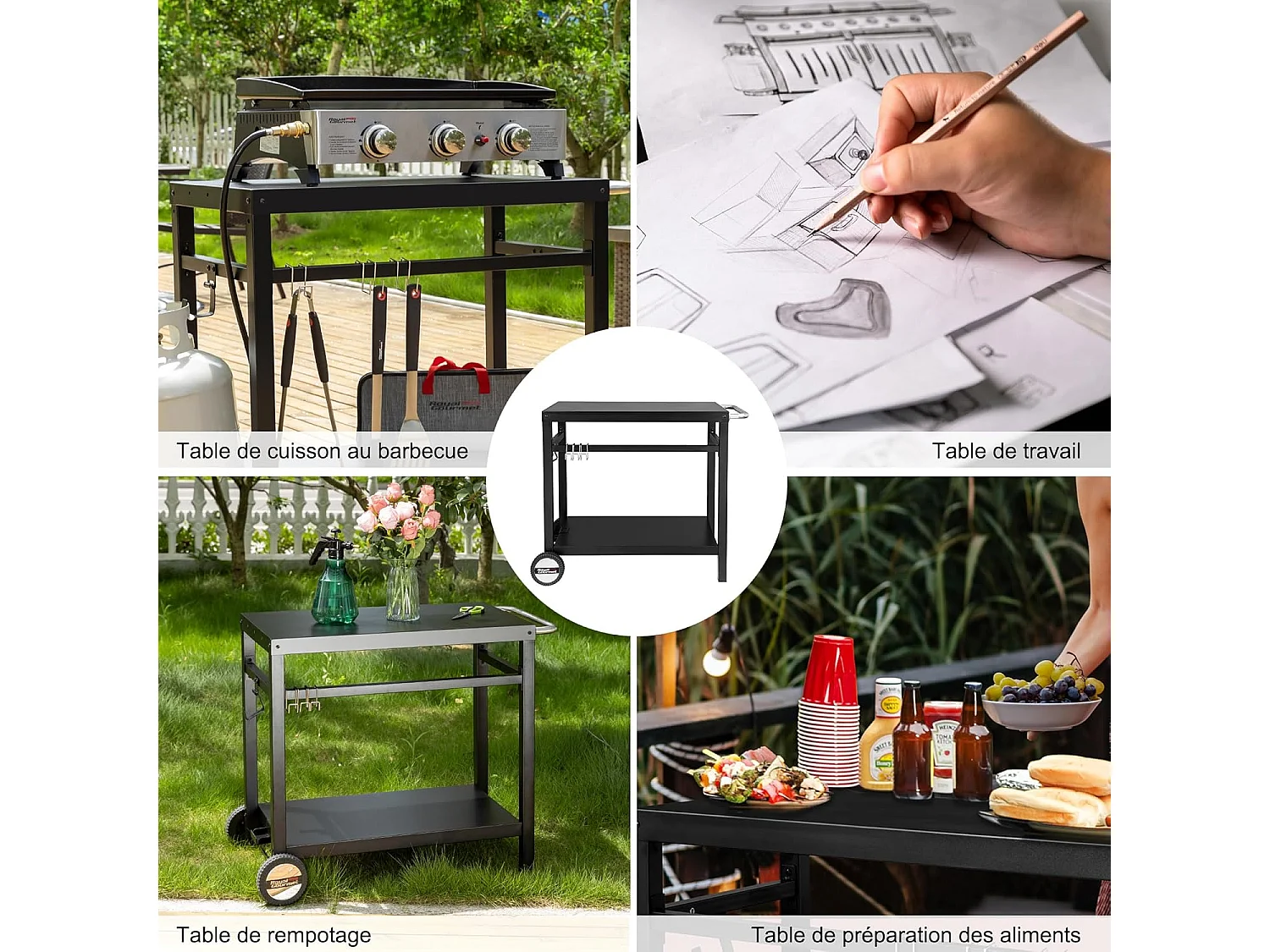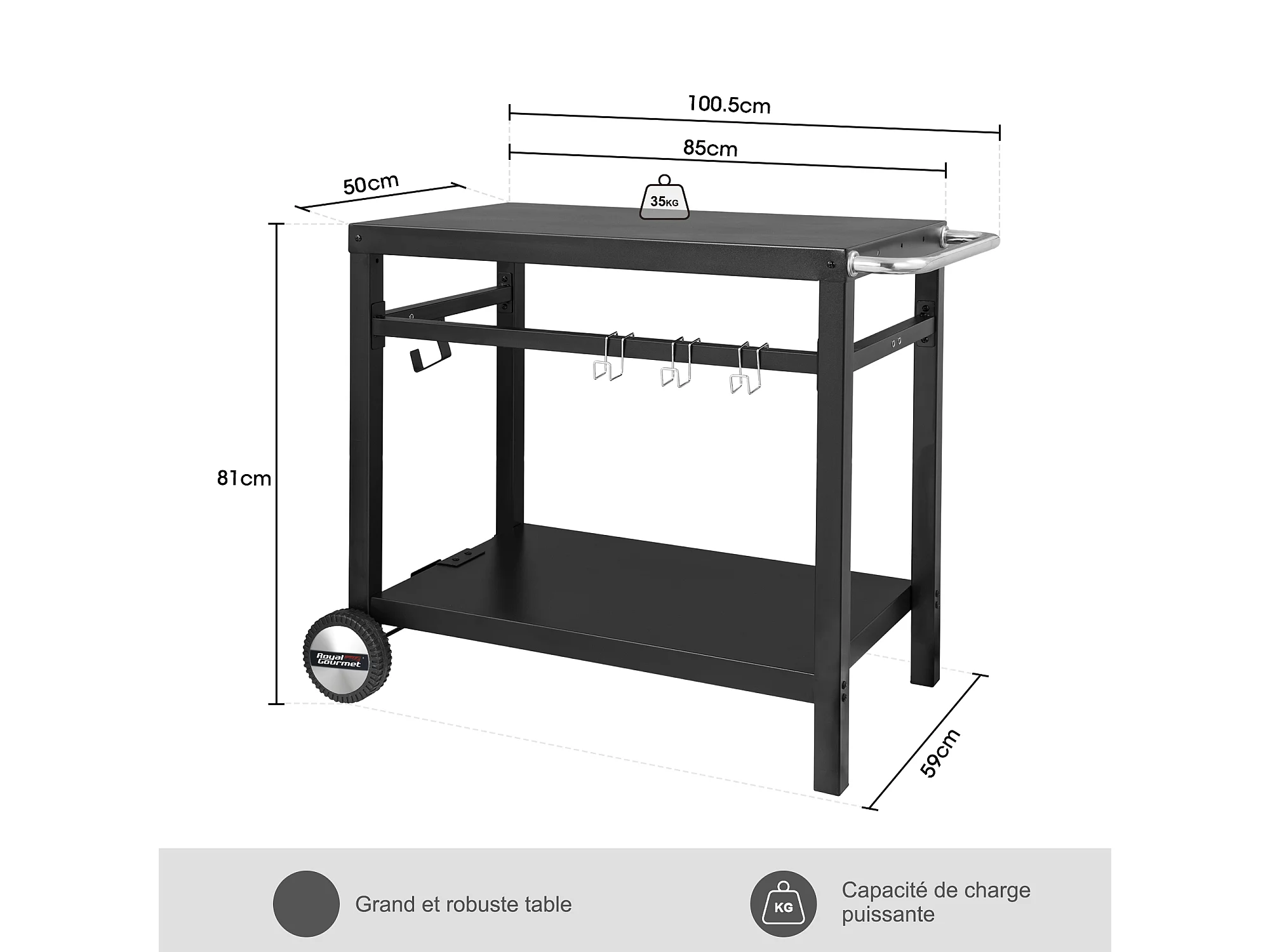 Desserte pour Plancha en Métal Noir - Deux Étagères -100,5 x 59 x 81 cm