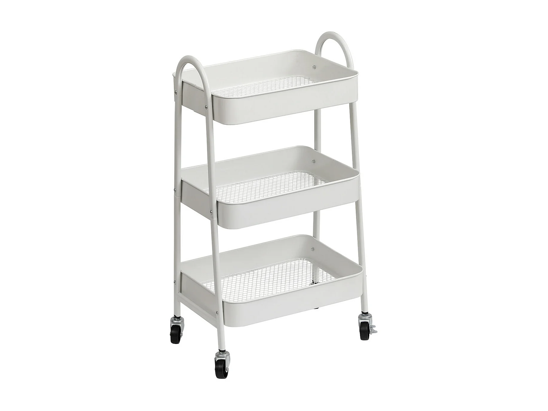 Chariot de service avec 3 étagères, roulettes, métal, blanc (42.4x29.8x74.5 cm)