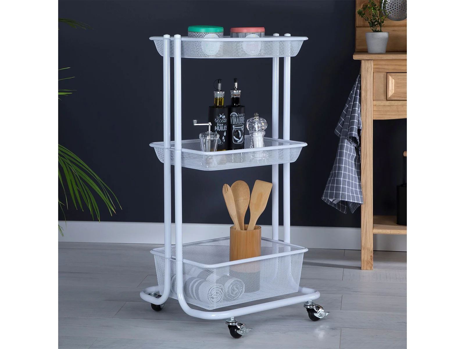 Chariot de cuisine avec 3 paniers Siena Blanc