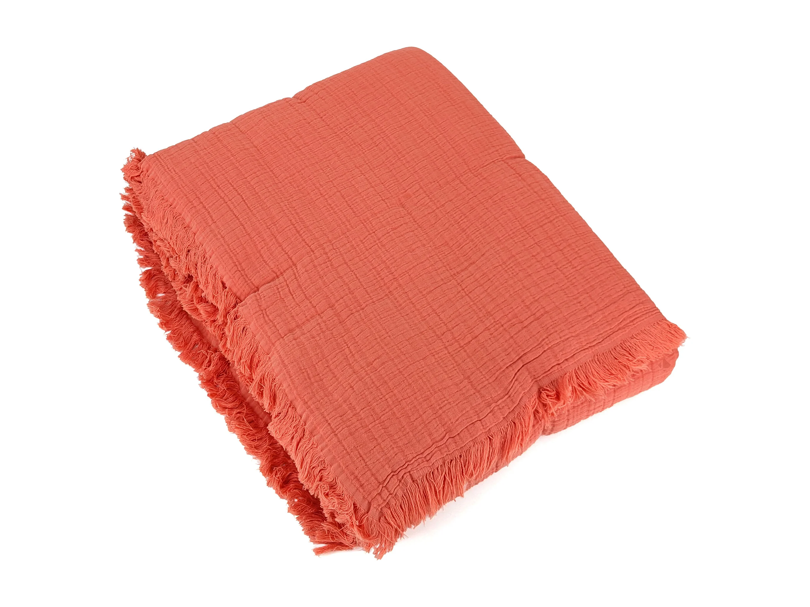 Dessus de lit 180x250 cm BREHAT 100% gaze de coton orange corail