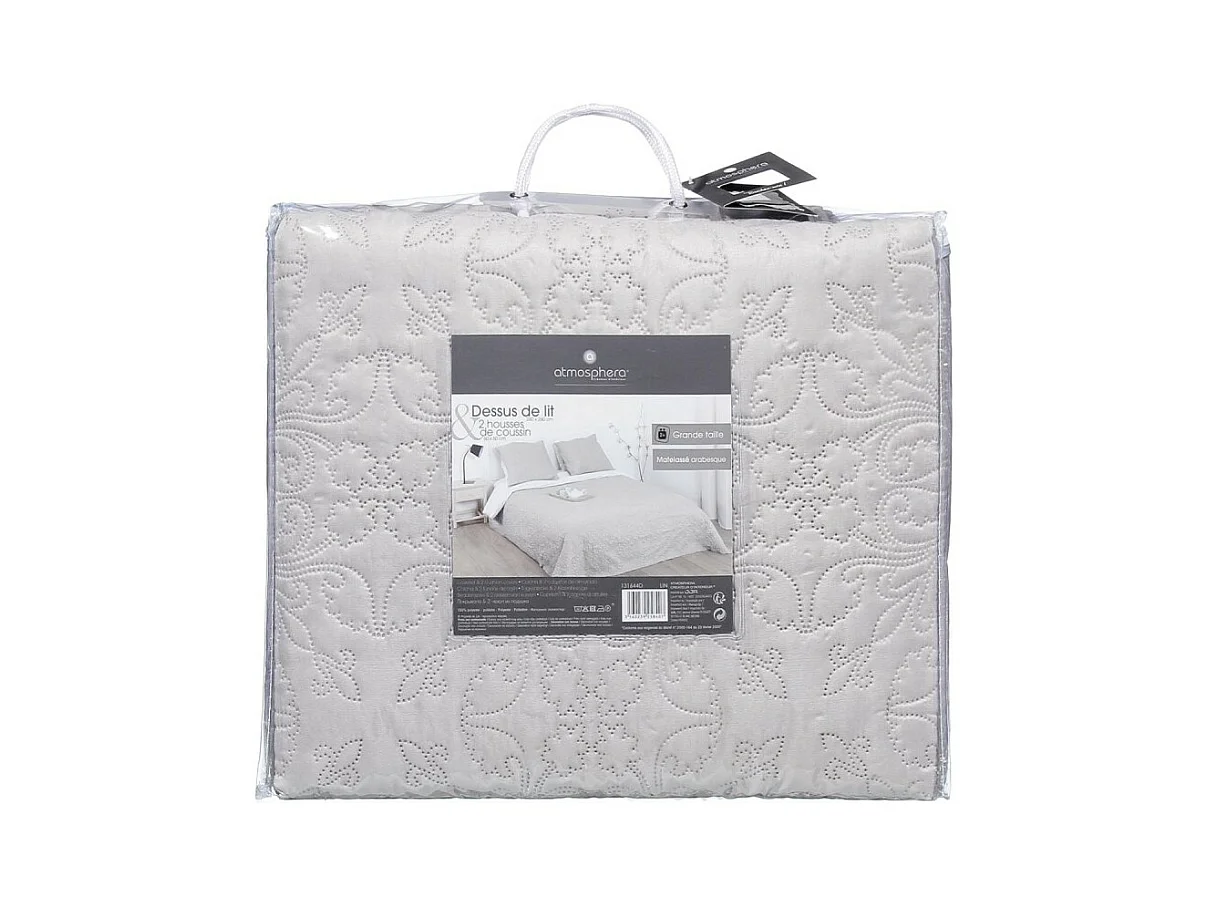 Dessus de lit Beige Lin motif Arabesque 240 x 260 avec 2 Taies