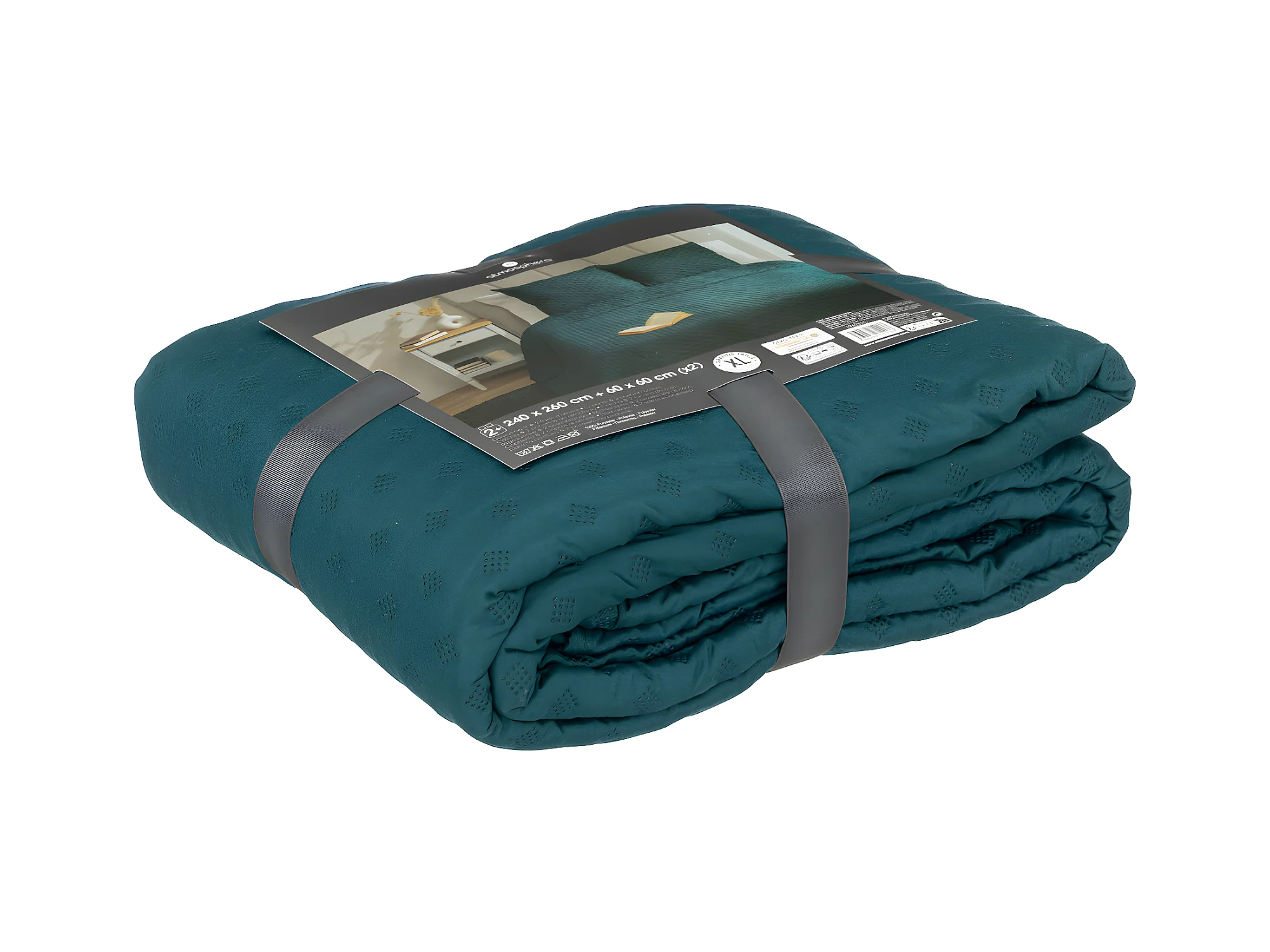 Dessus de lit Bleu égéen 240 x 260 cm avec 2 Taies
