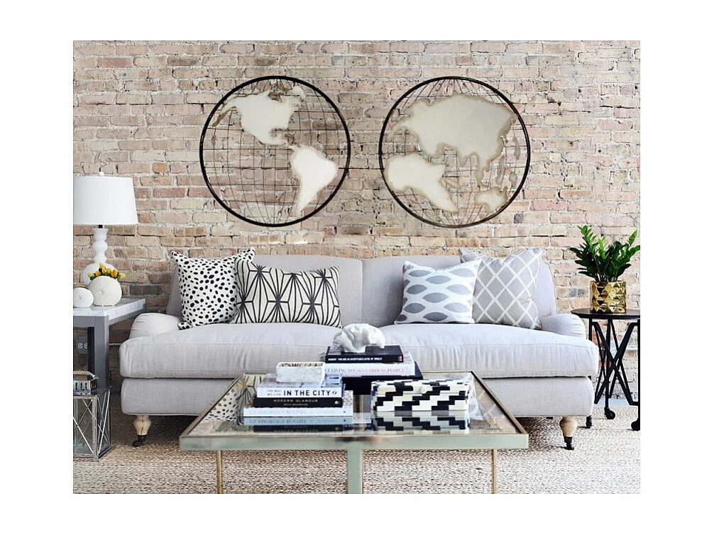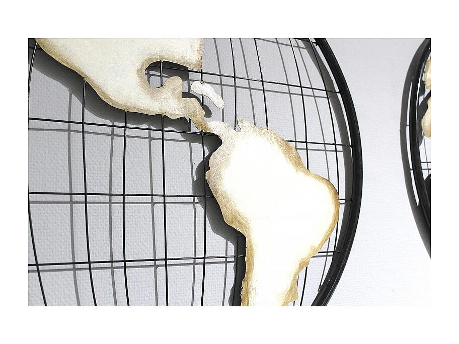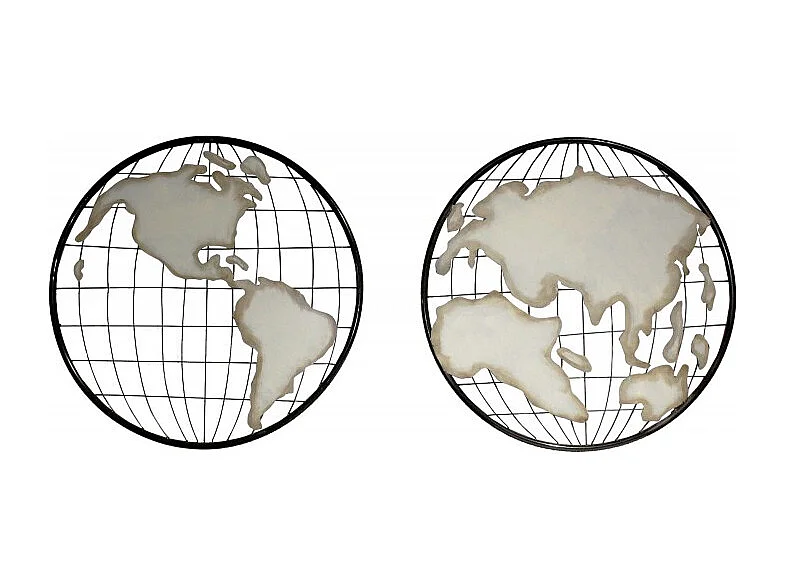 Décoration murale 2 cartes du monde en métal rond - WORLD