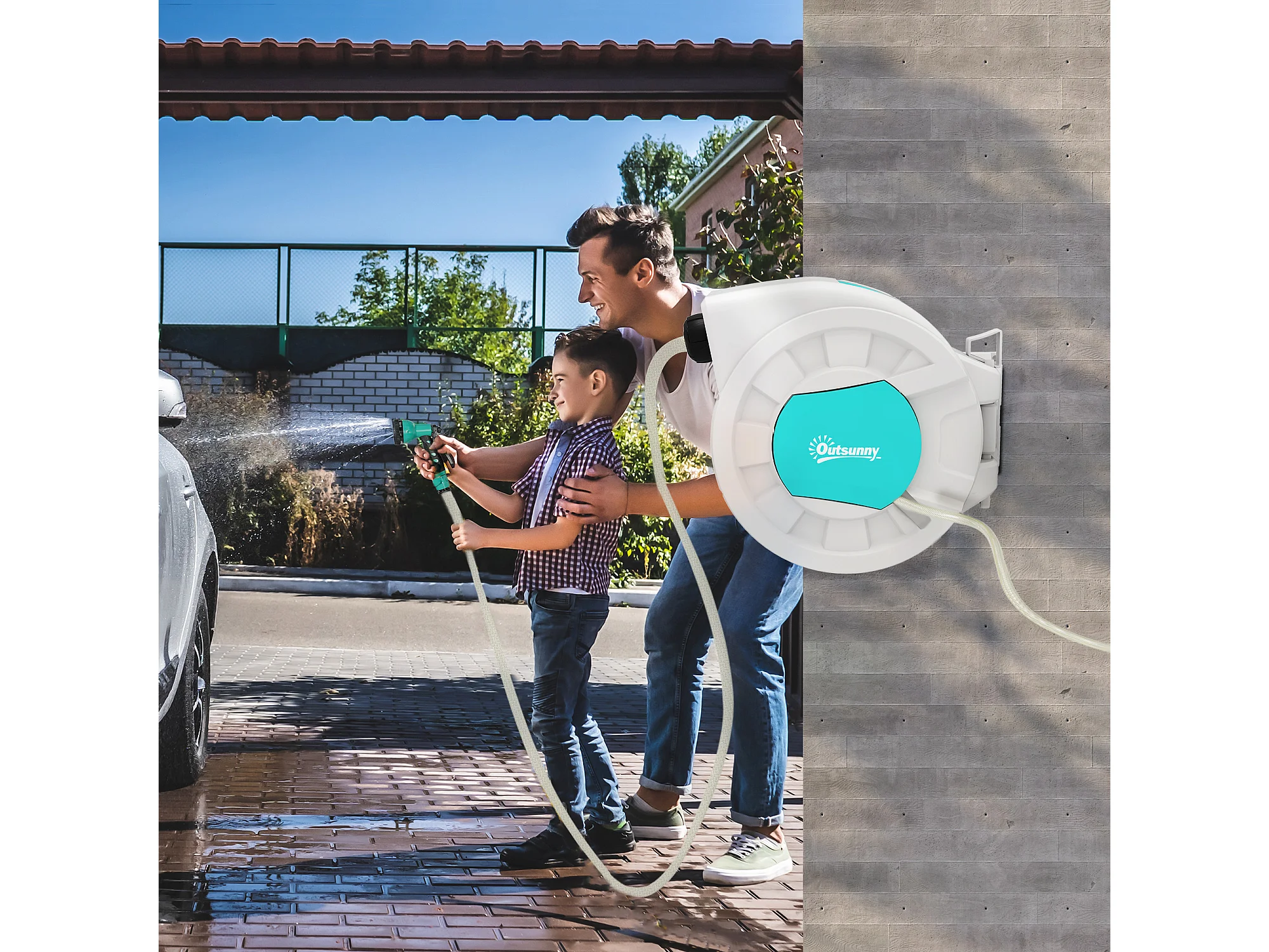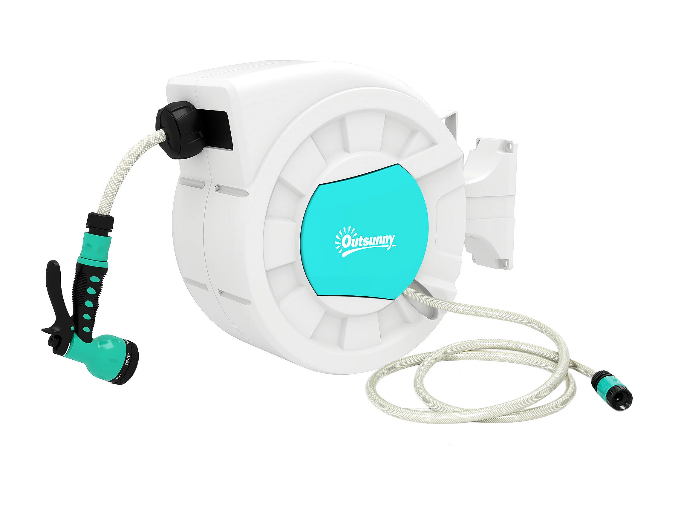 Enrouleur de tuyau d'arrosage mural 15m + 1,5m pivotant à 180° rétraction automatique fonction d'arrêt 9 fonctions de pulvérisation en PVC/plastique