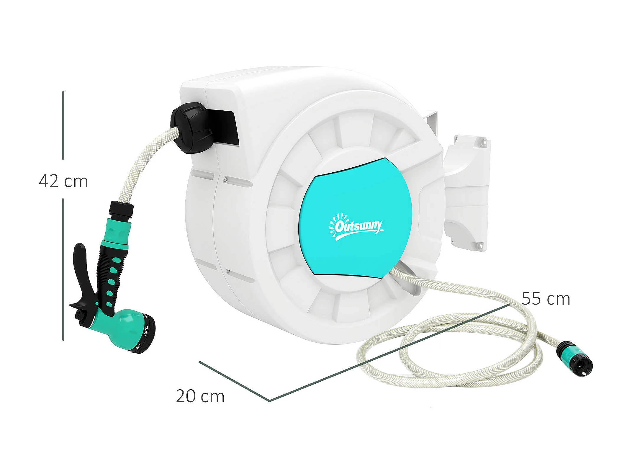 Enrouleur de tuyau d'arrosage mural 20m + 2m pivotant à 180° rétraction automatique fonction d'arrêt 9 fonctions de pulvérisation en PVC/plastique