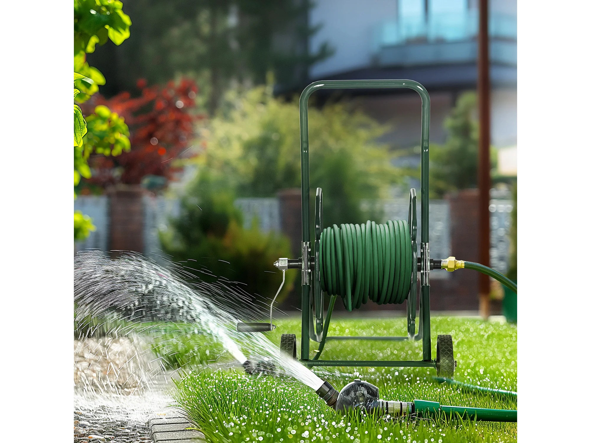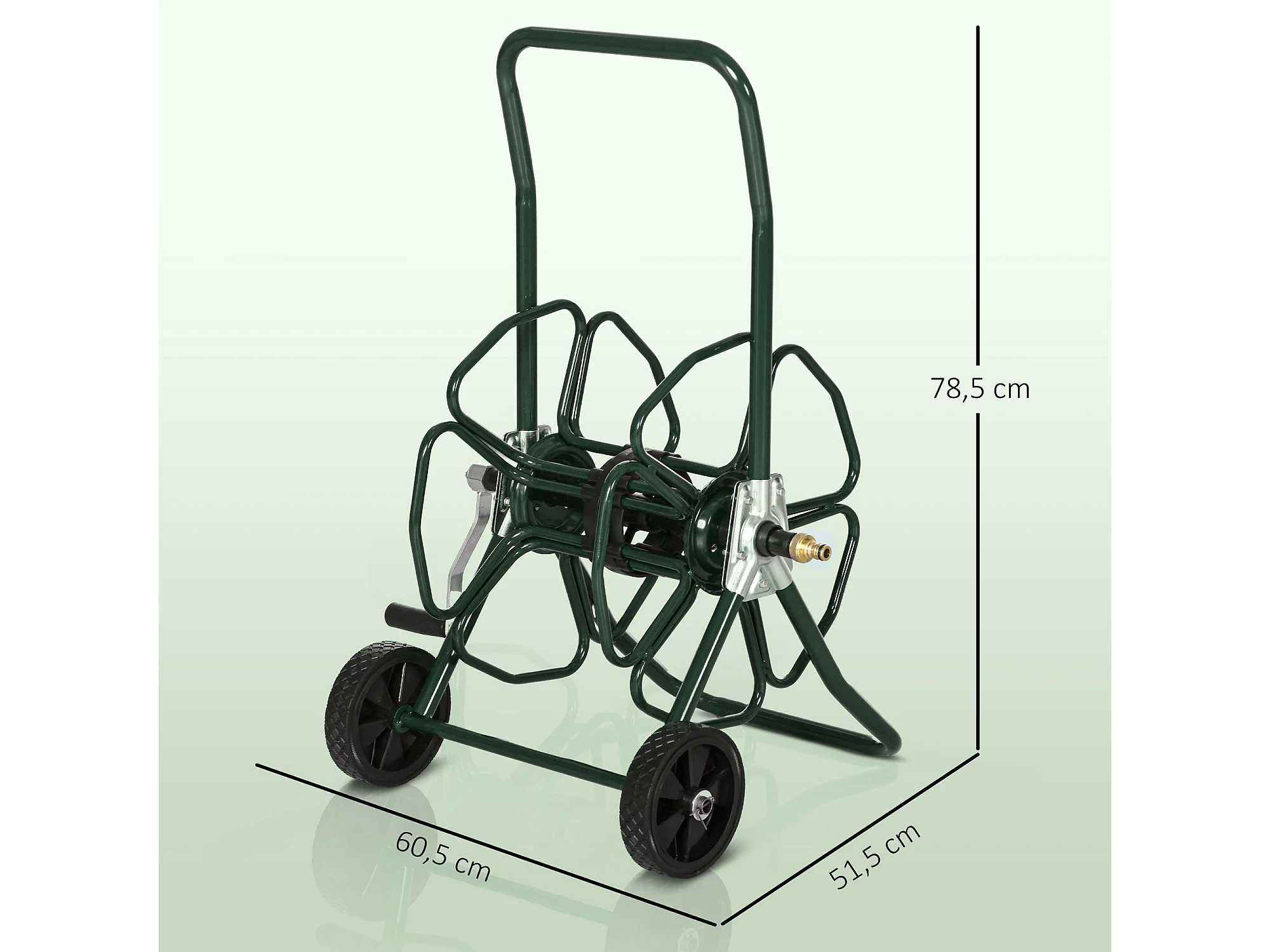 Dévidoir sur 2 roues 30 m - dévidoir métal - dévidoir chariot - enrouleur tuyau d'arrosage - métal vert