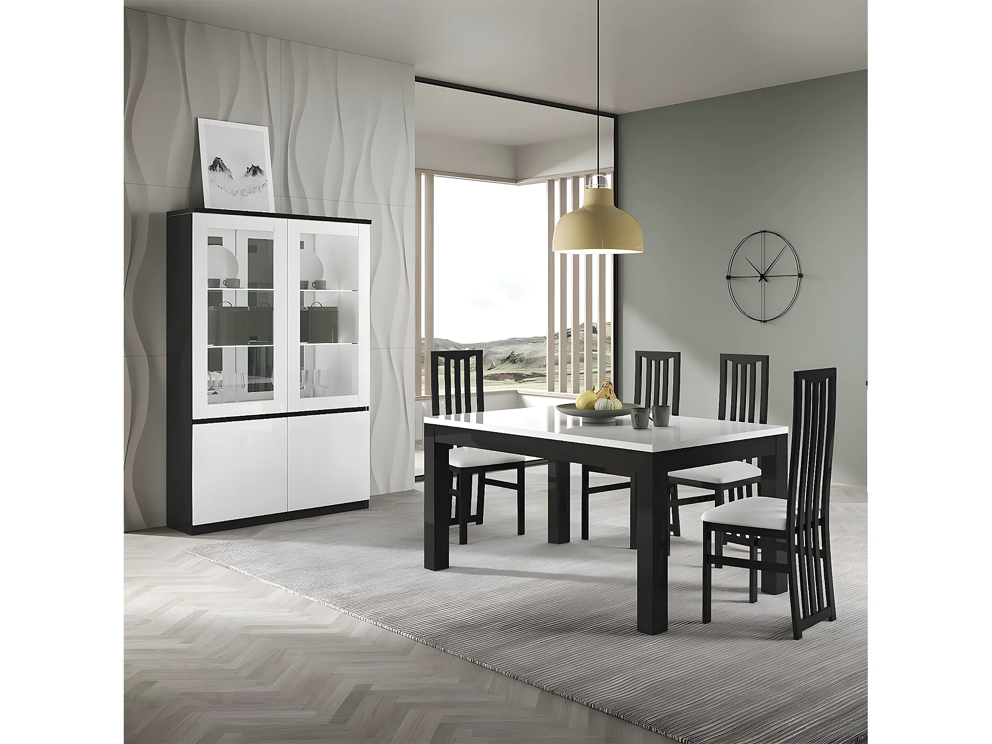 DEYTON - Vitrine 4 Portes Laquée Noir et Blanc Brillant avec Leds