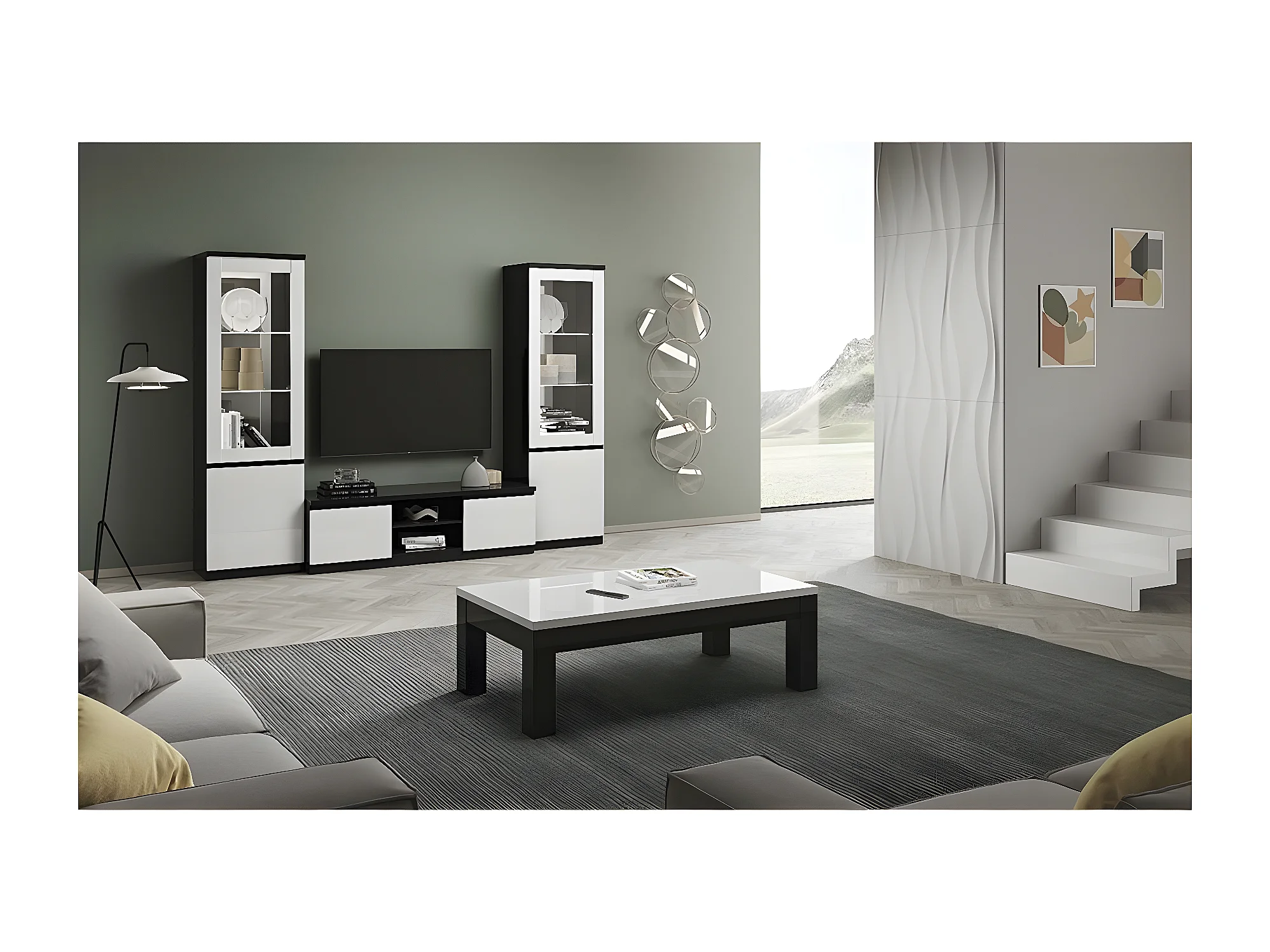 DEYTON - Vitrine Gauche Laquée Noir et Blanc Brillant avec Leds