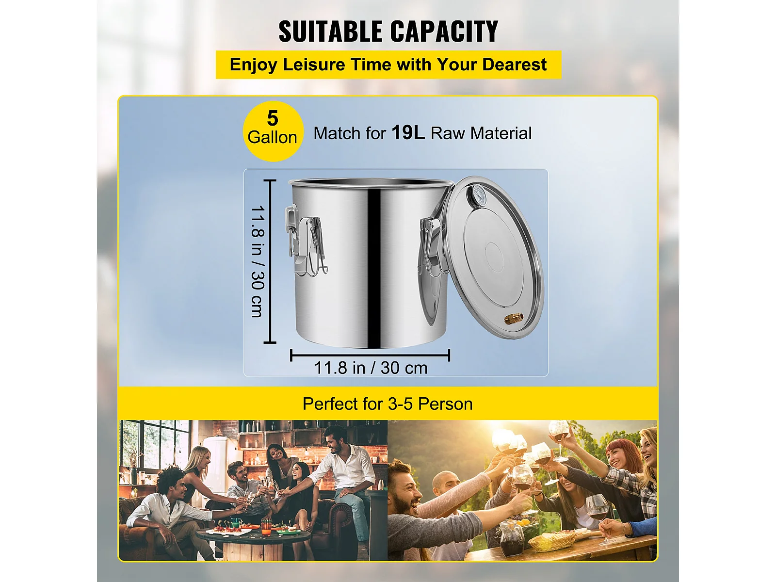 Distillateur d'Alcool SucceBuy 17 L, Moonshine Still en Acier Inoxydable, Kit de Brassage Maison pour Whisky, Vin, Brandy