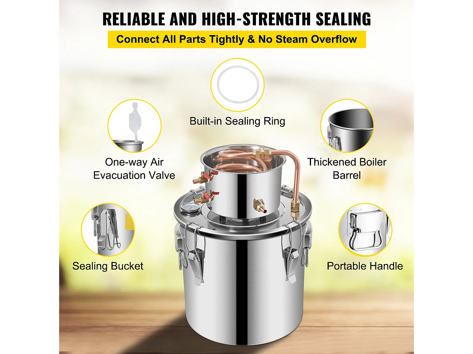 Distillateur d'Alcool SucceBuy, Alambic à Alcool, 11.4 L, Kit de Brassage en Acier Inoxydable, avec Serpentin en Cuivre