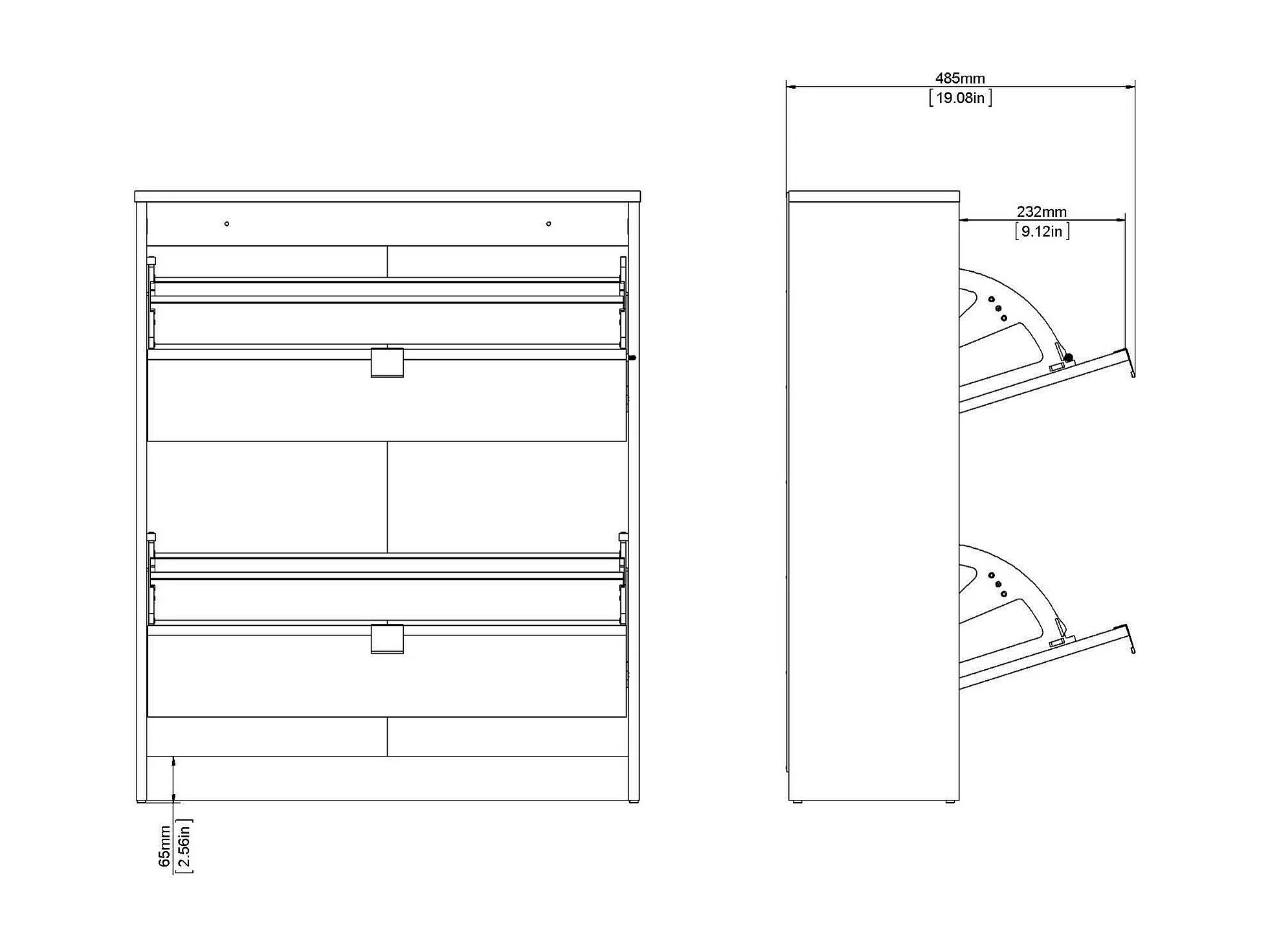 Meuble à chaussures 2 tiroirs rabattables 2 étagères tiroir blanc