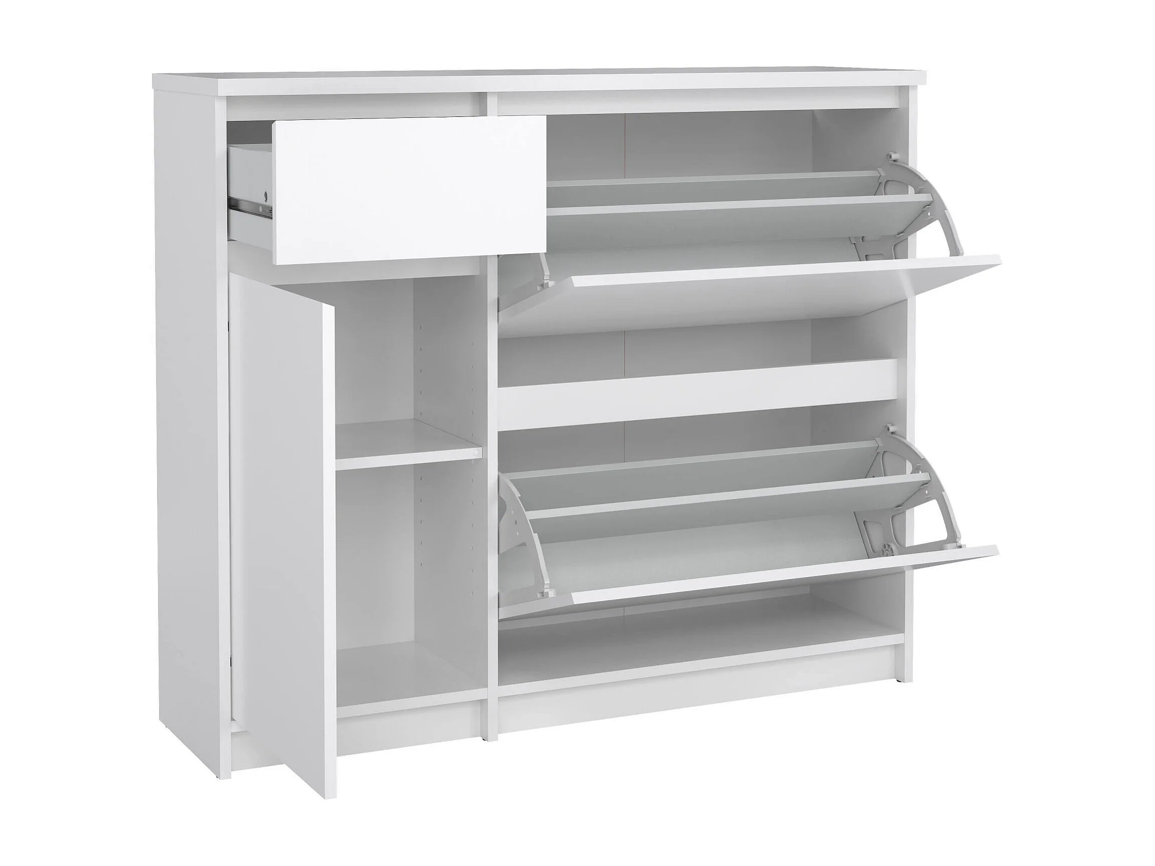 Meuble à chaussures Todd, un tiroir, 31,5x108,9x92,9h cm Blanc Brillant, Rangement chaussures