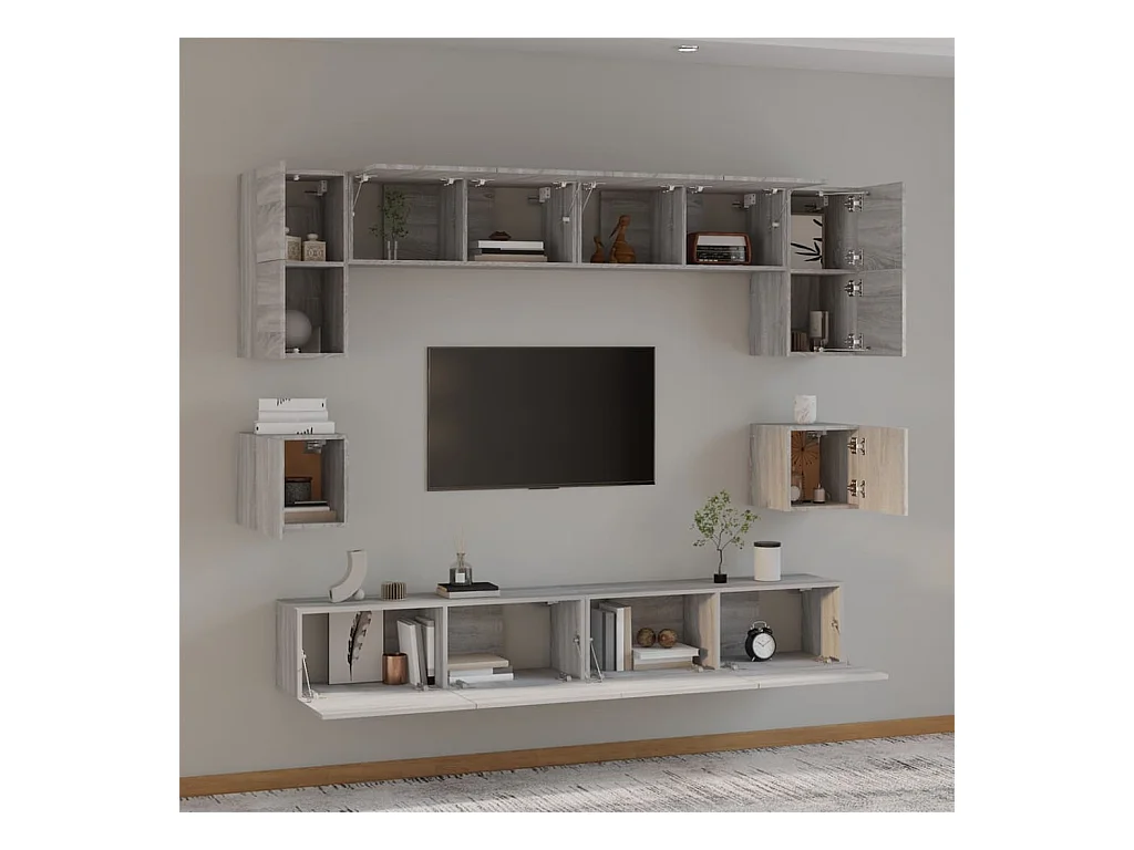 Doolin Ensemble de meubles TV 8 pcs Sonoma gris Bois d'ingénierie