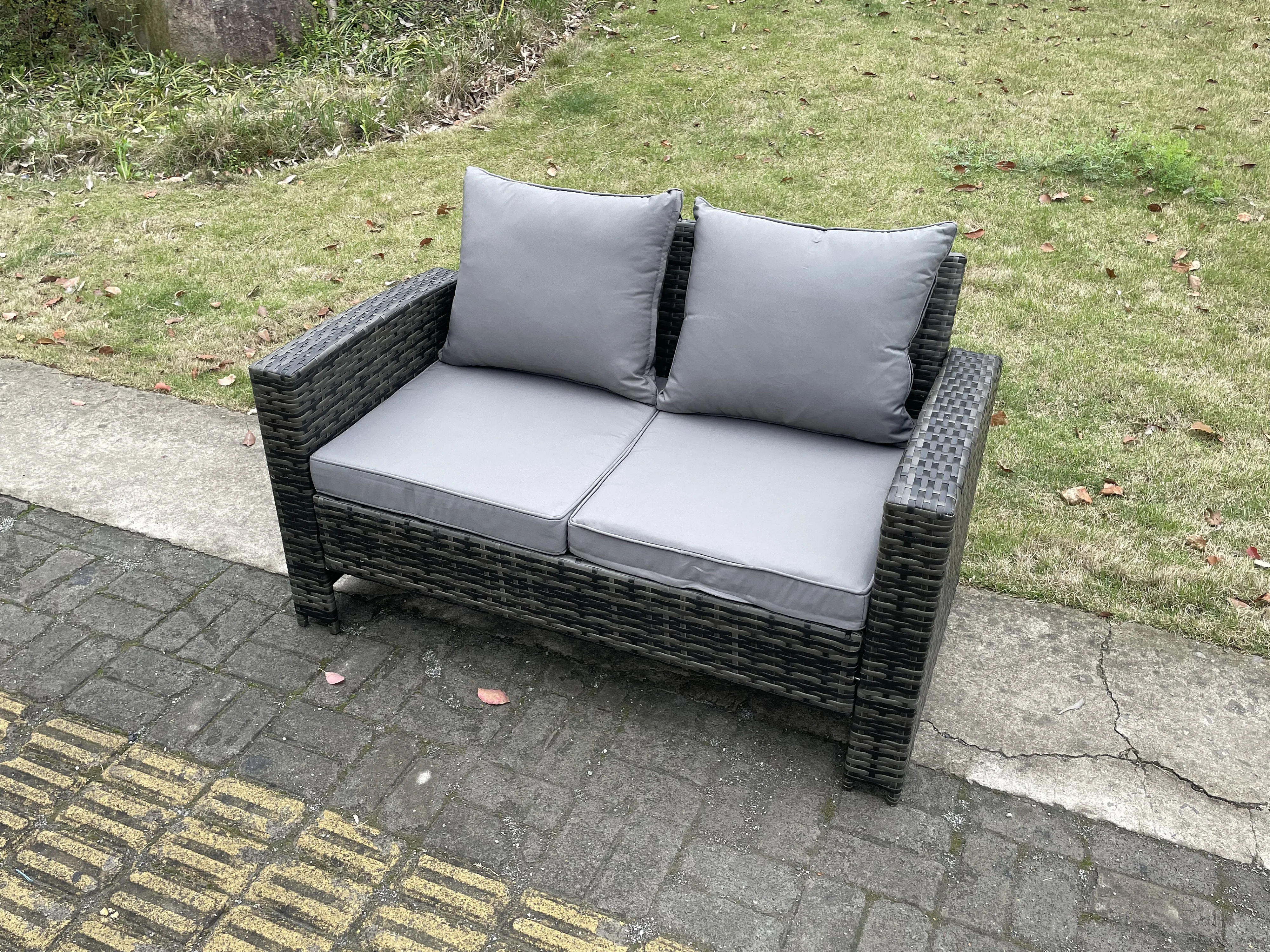 Dossier haut Rattan Canapé 2 places Double siège Canapé d'amour Mobilier de jardin extérieur