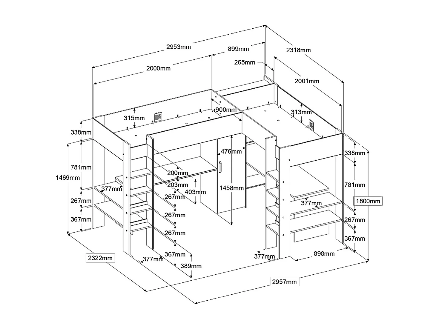 • Armoire et bureaux intégrés