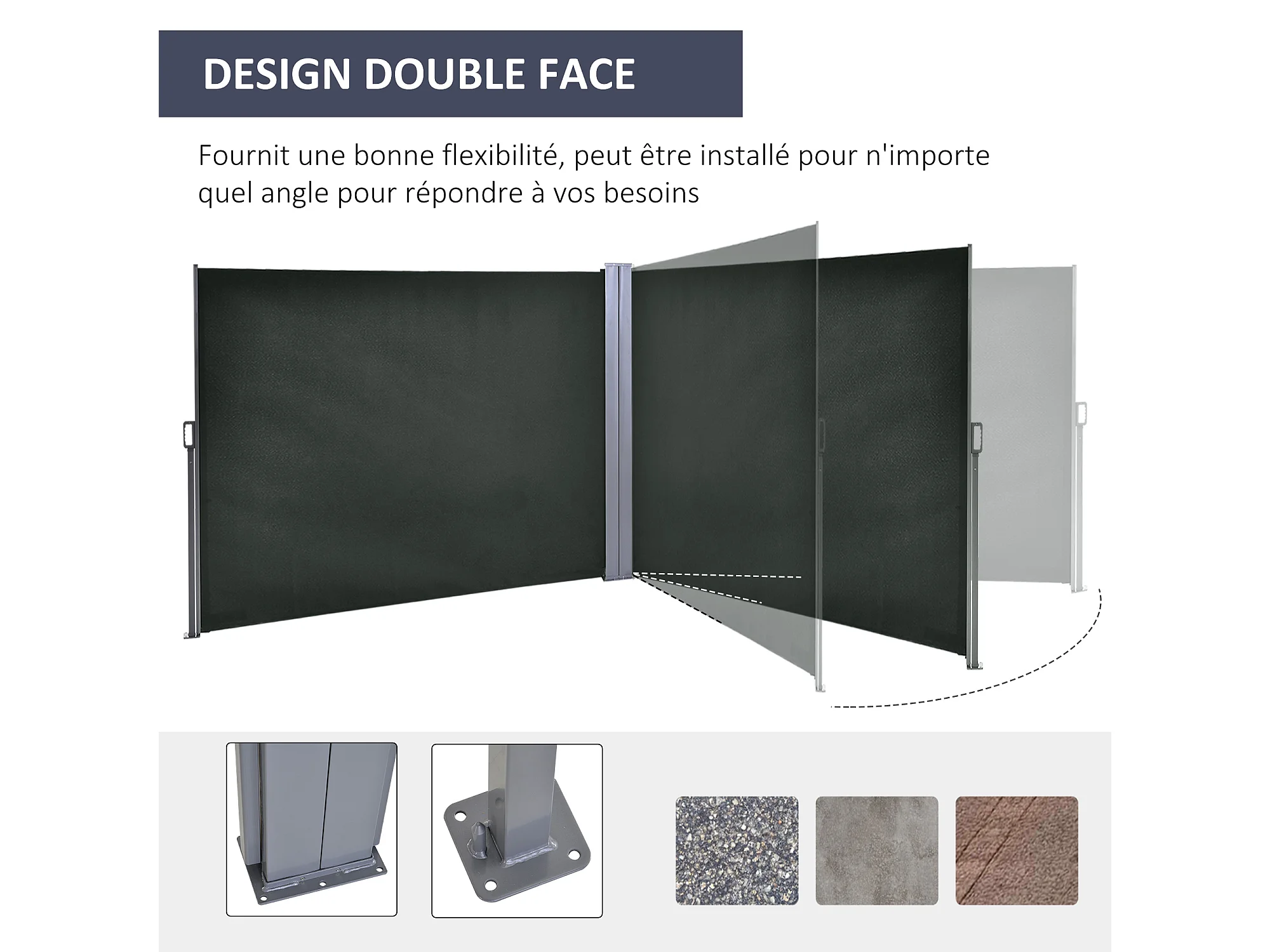 Double store latéral brise-vue paravent rétractable dim. 6L x 1,60H m polyester anti-UV haute densité gris