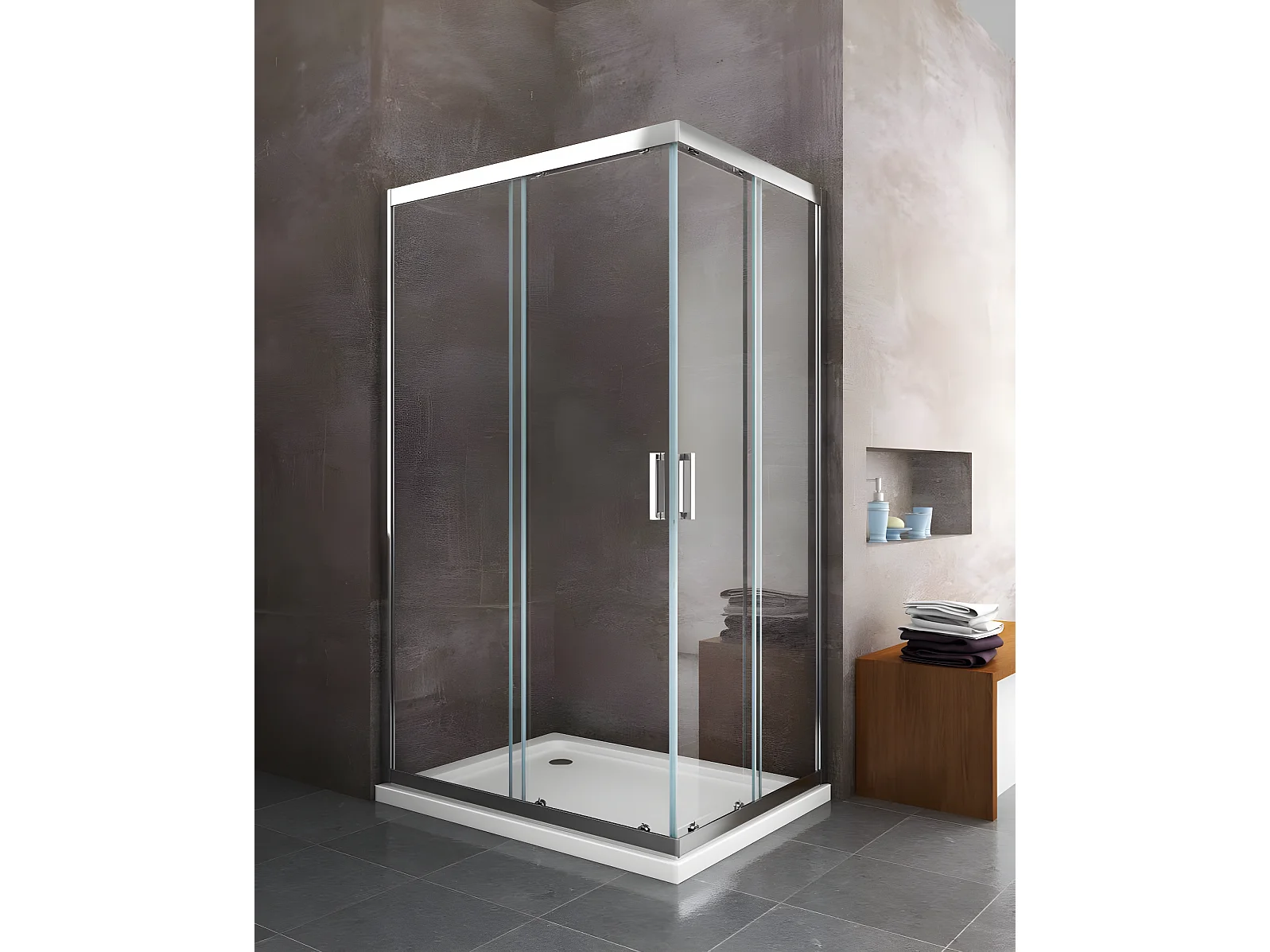 Douche de 6 mm angulaire rectangulaire avec profil chromé (receveur non inclu) - 70 x 75