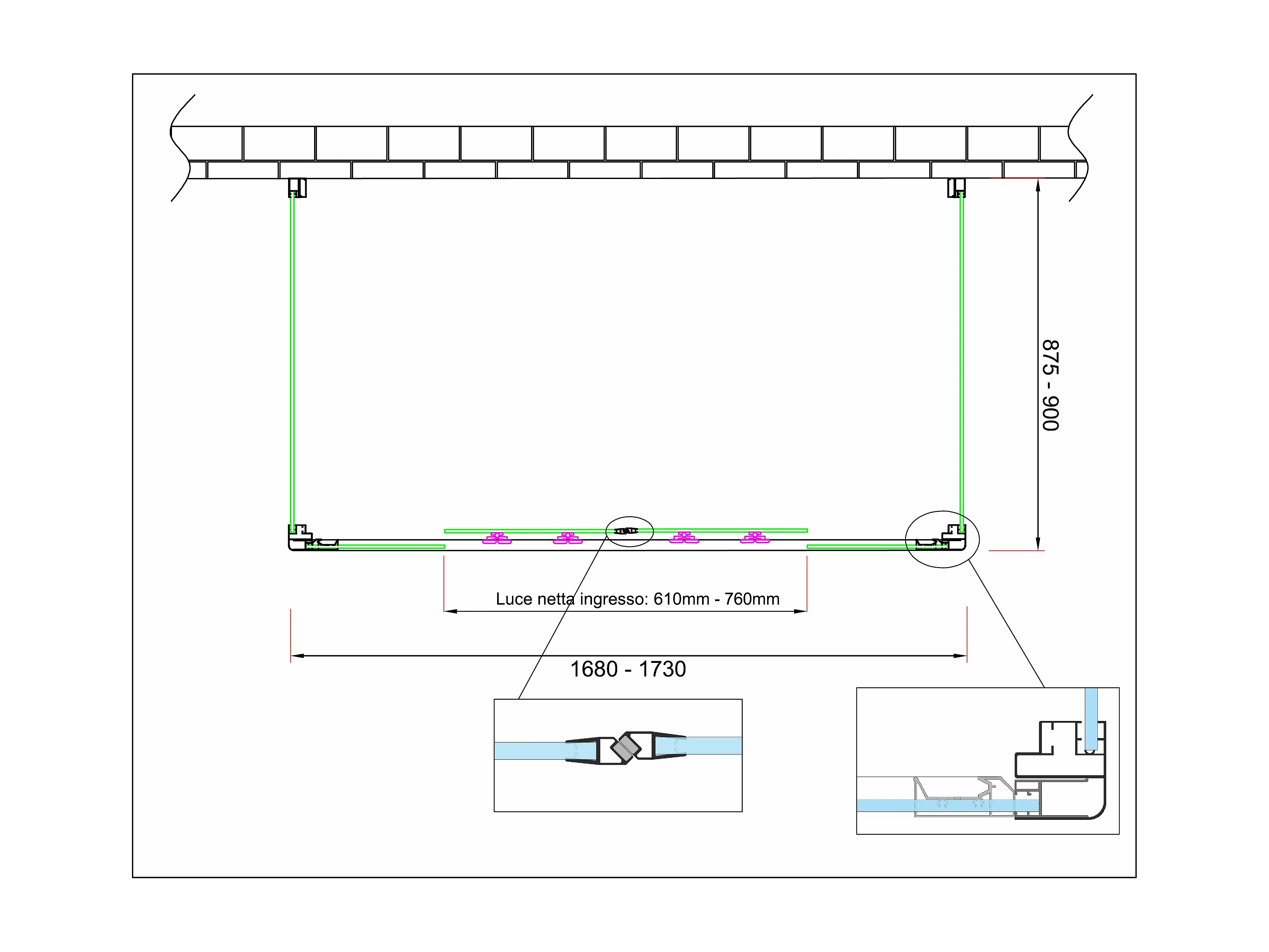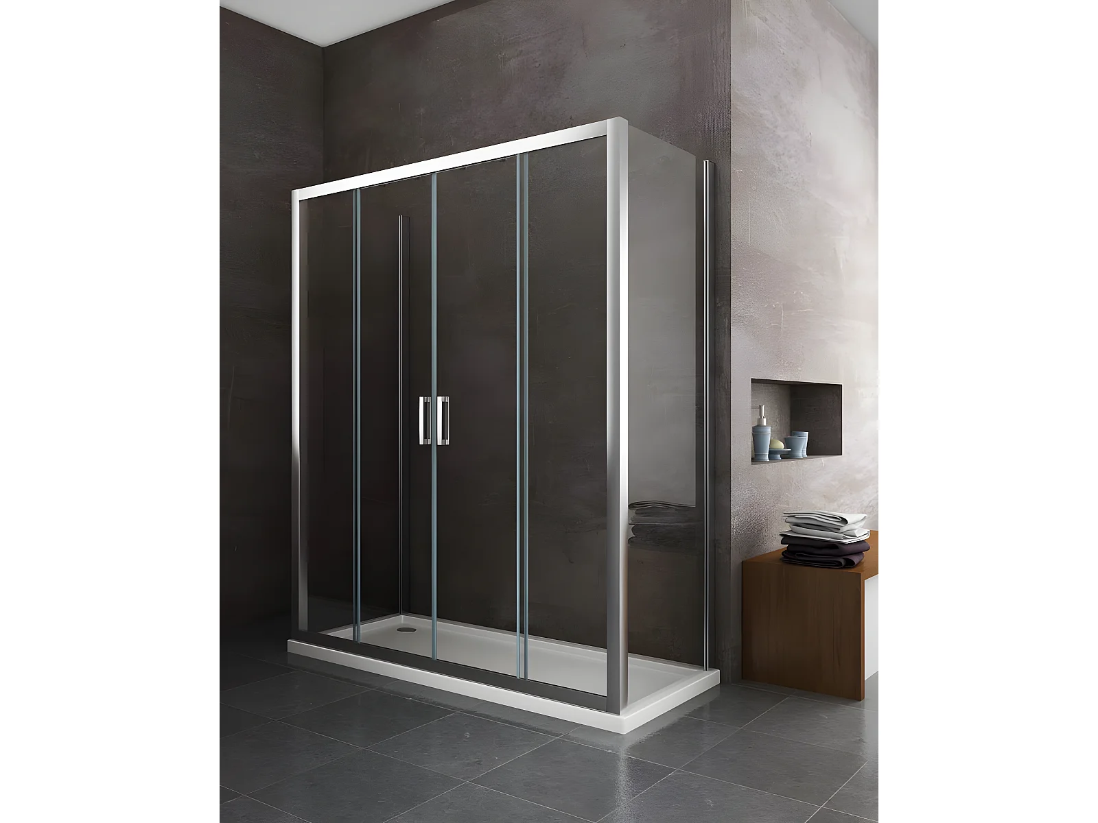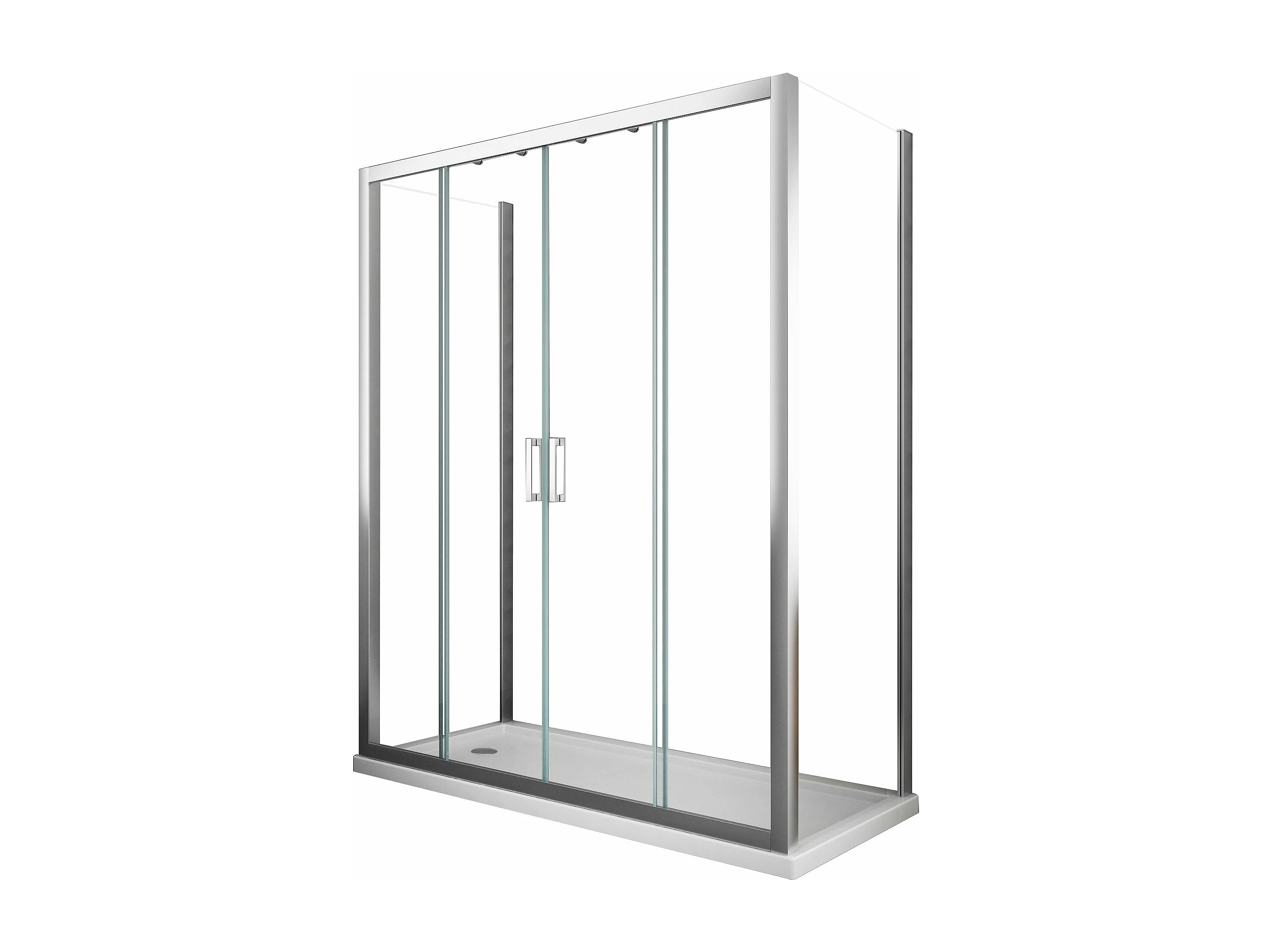 Douche de 6 mm avec deux parois fixes et une overture coulissante H.190 (receveur de douche non inclu) – 87,5-90 fixes x 168-173 overture centrale