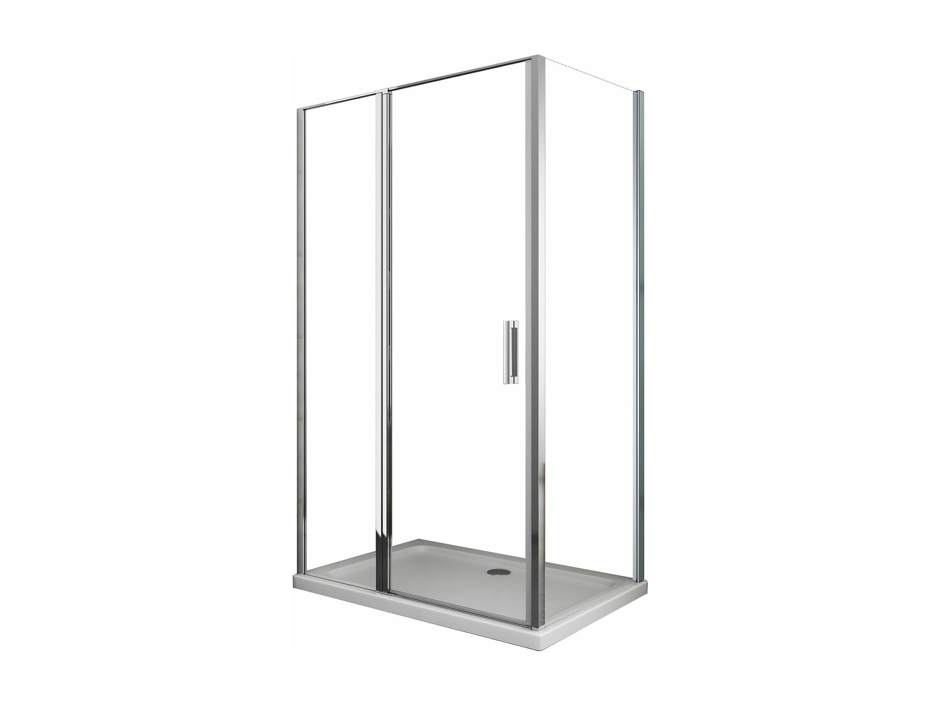 Douche de 6 mm avec paroi fixe laterale et face frontale avec porte battante (receveur non inclu) – 64-67 fixe x 97-100 petite mur+vantail (35+65)