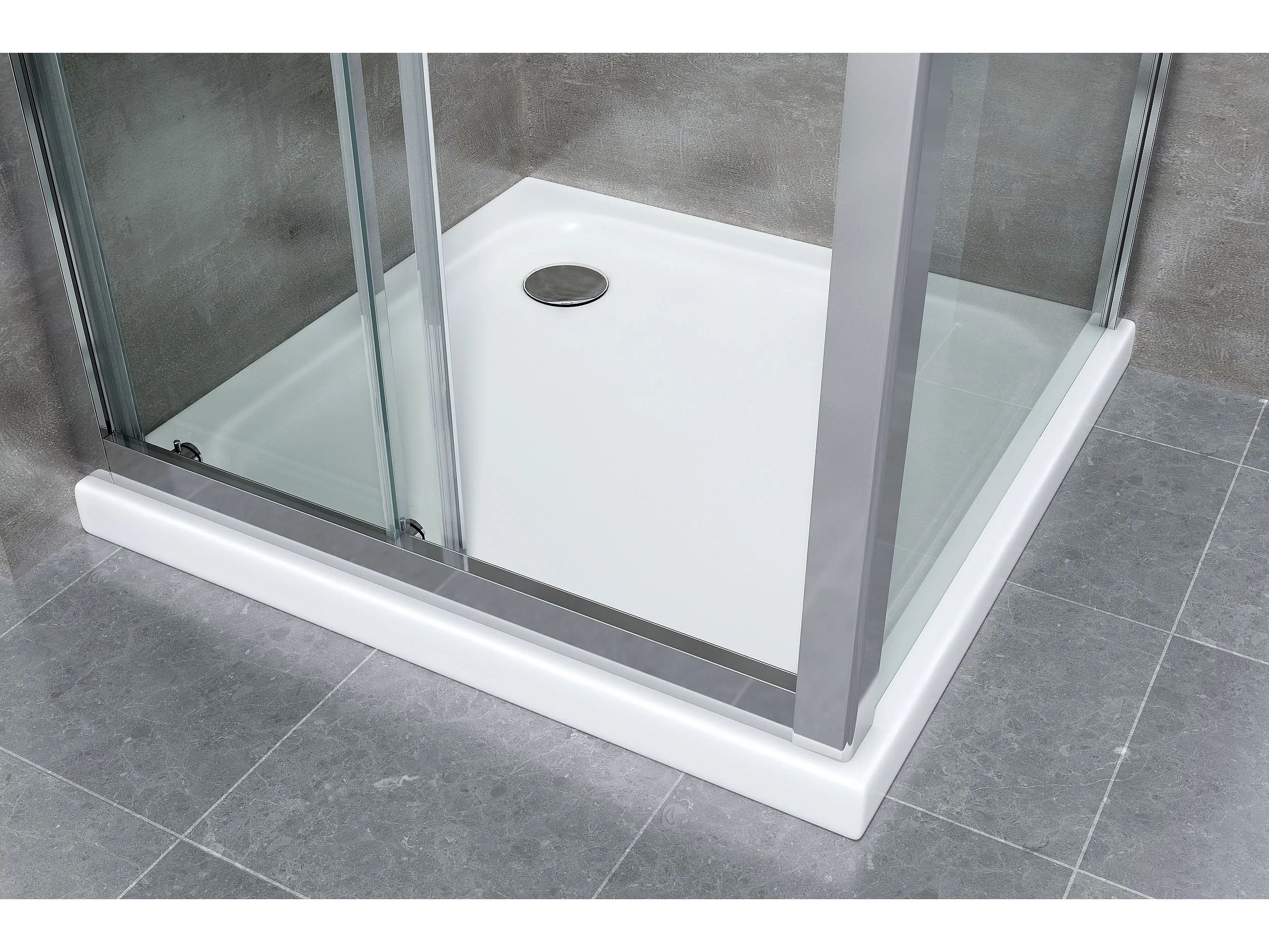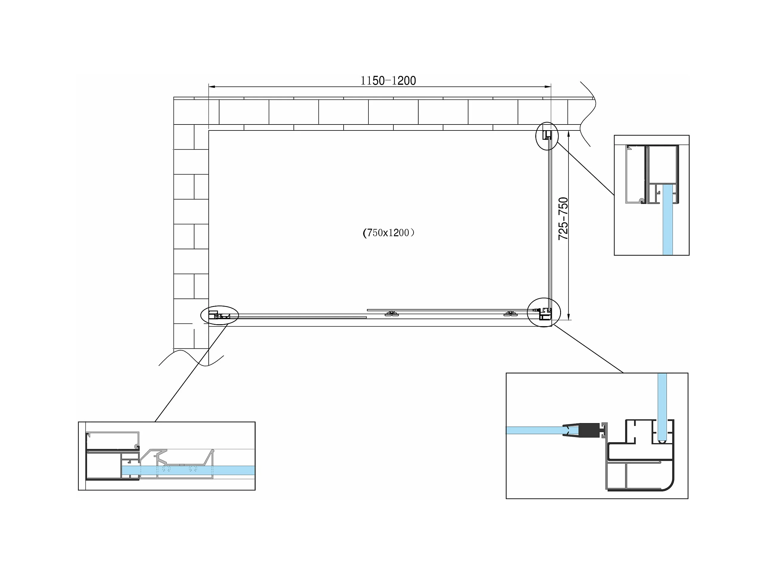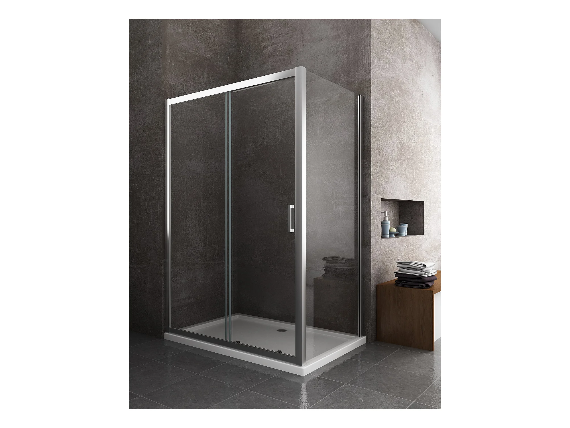 Douche de 6 mm avec un paroi fixe laterale et une porte coulissante (receveur non inclu) – 72,5-75 fixe x 115-120 coulissante